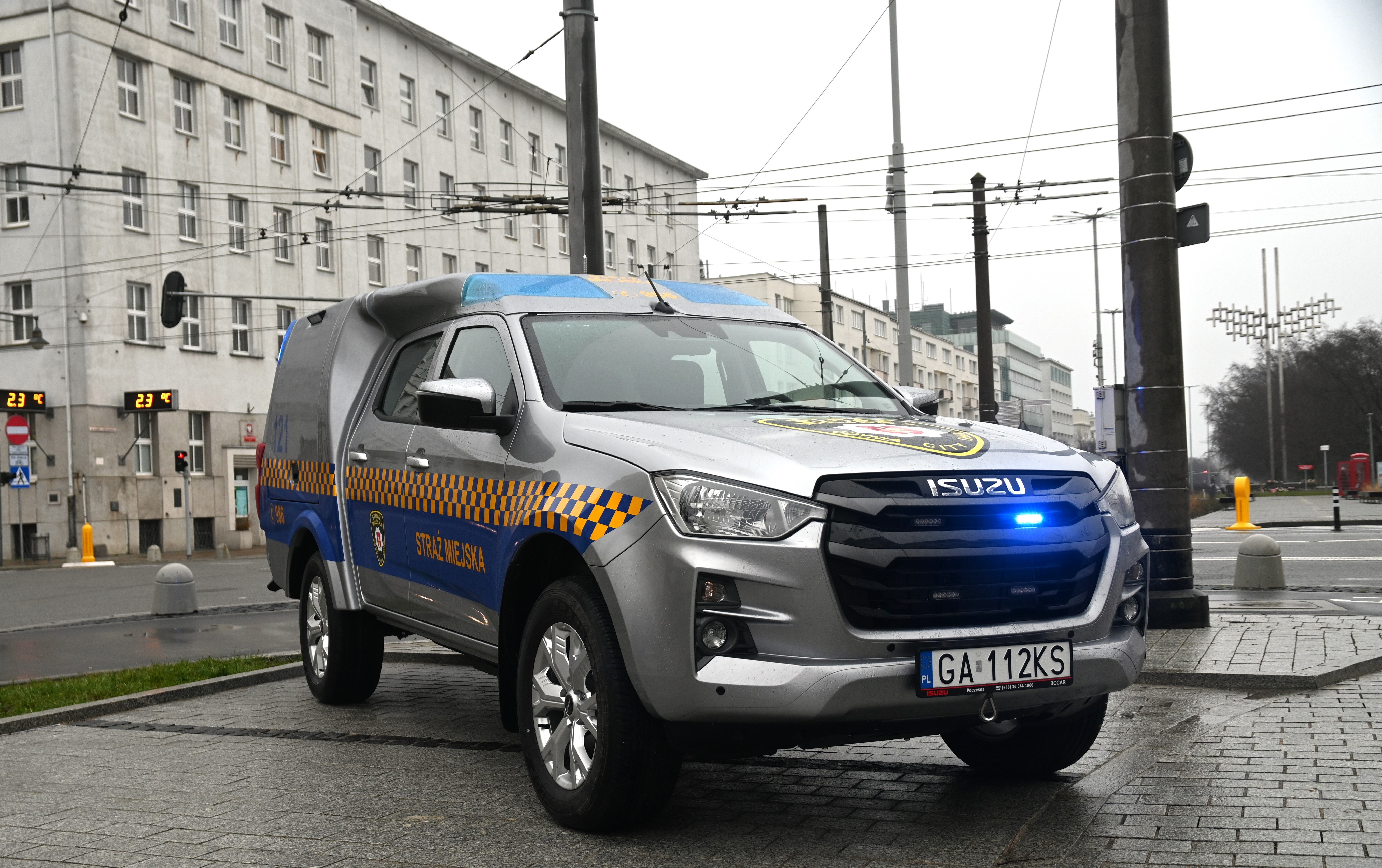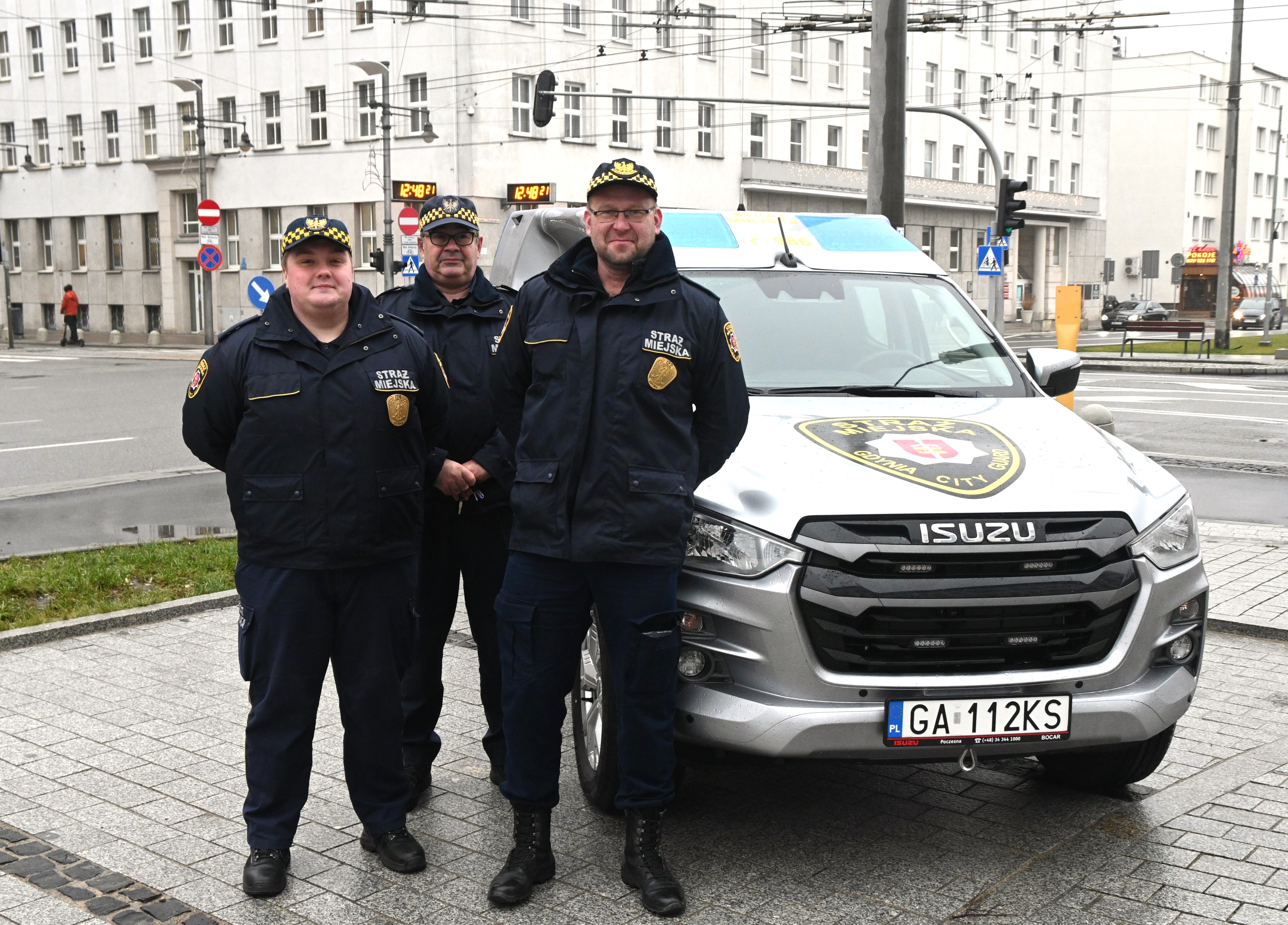W nowy rok gdyńska Straż Miejska wjedzie nowym radiowozem. 2 stycznia prezydent Gdyni Wojciech Szczurek przekazał kluczyki funkcjonariuszom Referatu Ochrony Środowiska i Profilaktyki Społecznej. Pojazd terenowy będzie służył w codziennej pracy EkoPatrolu. Uroczystość przekazania nowego radiowozu gdyńskim strażnikom miejskim odbyła się we wtorkowe popołudnie przed Urzędem Miasta Gdyni przy alei Marszałka Józefa Piłsudskiego. - Gdyńska Straż Miejska rozwija się dynamicznie, co niezwykle cieszy, ponieważ oznacza to przede wszystkim wzrost poziomu bezpieczeństwa mieszkańców – mówi Wojciech Szczurek, prezydent Gdyni. I dodaje: - Służba w Straży Miejskiej niesie ze sobą wiele wyzwań. Jest wymagająca i odpowiedzialna, ale też niezwykle satysfakcjonująca. To praca na rzecz miasta i jego mieszkańców, która oczywiście nie byłaby możliwa bez specjalistycznego sprzętu, w tym pojazdów. Dlatego z wielką radością przekazuję dziś gdyńskim funkcjonariuszkom i funkcjonariuszom nowy, specjalistyczny radiowóz, który wspomoże EkoPatrol. Nowy radiowóz to terenowy ISUZU D-max z napędem na cztery koła // fot. Magdalena Śliżewska – Dzięki nowemu pojazdowi EkoPatrol jeszcze efektywniej będzie mógł służyć mieszkańcom Gdyni. Zapewni on również większe możliwości dotarcia do terenów trudno dostępnych. A właśnie po takich terenach często poruszać muszą się strażnicy zajmujący się ochroną środowiska. Do ich pracy należy między innymi podejmowanie interwencji wobec zwierząt, odkrywanie dzikich wysypisk śmieci czy patrolowanie obszarów leśnych – zaznacza Andrzej Bień, komendant Straży Miejskiej w Gdyni. Nowy radiowóz to terenowy ISUZU D-max z napędem na cztery koła, o pojemności silnika 1,9 l i mocy 120 kW. Specjalistyczny pojazd posiada zabudowę przystosowaną do potrzeb EkoPatrolu. Jest również wyposażony w wyciągarkę i hak holowniczy. Koszt radiowozu to ponad 344 000 zł. Dostawcą pojazdu jest firma Bocar z Częstochowy. - W tym roku planujemy wymianę najstarszych, ponad 15-letnich pojazdów. W pierwszym półroczu powinniśmy pozyskać dwa nowe radiowozy patrolowe, a już na przełomie stycznia i lutego ogłosimy przetarg na zakup kolejnych pojazdów – zapowiada Rafał Klajnert, sekretarz miasta i dyrektor Urzędu Miasta Gdyni. W 2023 roku szeregi gdyńskiej Straży Miejskiej zasiliło sześcioro nowych funkcjonariuszek i funkcjonariuszy. Nieustannie poszukiwane są osoby chętne do podjęcia służby. Pracownicy Referatu Ochrony Środowiska i Profilaktyki Społecznej Straży Miejskiej // fot. Magdalena Śliżewska Pracę w Straży Miejskiej rozpoczyna się od szkolenia i praktyki na stanowisku aplikanta. Aplikanci spędzają 332 godzin na kursie i 160 godzin na praktykach podczas patroli ulicznych, na monitoringu i w poszczególnych referatach Straży Miejskiej. W programie są m.in. zajęcia teoretyczne, ćwiczenia, taktyka technik interwencji, wiedza z pierwszej pomocy, zagadnienia prawne i wszystkie podstawy funkcjonowania Straży Miejskiej. Po kursie przygotowawczym i pomyślnym zdaniu egzaminu przychodzi czas na awans i mianowanie na stopień młodszego strażnika. - Oprócz kursu zewnętrznego przygotowujemy się w Gdyni do kursów wewnętrznych. W naszych szkoleniach chcielibyśmy poświęcić więcej miejsca zagadnieniom z psychologii i ochrony środowiska. To bardzo ważne wyzwania – mówi komendant Andrzej Bień. I dodaje: - Stale poszukujemy osób chętnych do pracy we wszystkich komórkach, zwłaszcza do działań patrolowo-interwencyjnych, związanych z ochroną środowiska oraz prowadzenia postępowań w sprawach o wykroczenia. Praca jest niezwykle ciekawa i stanowi służbę na rzecz mieszkańców. Robimy wszystko, co w naszej mocy, by dzięki Straży Miejskiej życie w Gdyni było wygodniejsze, przyjemniejsze i przede wszystkim bezpieczniejsze. Zapewniamy stabilne warunki zatrudnienia, dobre warunki socjalne i brak nudy. Obecnie w gdyńskiej Straży Miejskiej pracuje 105 osób, z czego strażniczek i strażników jest 81. Ścieżka kariery zawodowej jest bardzo przejrzysta – awans odbywa się co trzy lata, ale może być szybszy, co uzależnione jest wyłącznie od zaangażowania i indywidualnych wyników pracy. Galeria zdjęć Pobierz galerię Prezydent Gdyni Wojciech Szczurek podczas uroczystości przekazania kluczyków do nowego radiowozu gdyńskiego EkoPatrolu Straży Miejskiej / fot. Magdalena Śliżewska Pobierz zdjęcie Komendant Andrzej Bień podczas uroczystości przekazania kluczyków do nowego radiowozu gdyńskiego EkoPatrolu Straży Miejskiej / fot. Magdalena Śliżewska Pobierz zdjęcie Prezydent Gdyni Wojciech Szczurek we wnętrzu nowego radiowozu EkoPatrolu / fot. Magdalena Śliżewska Pobierz zdjęcie Funkcjonariusze gdyńskiego EkoPatrolu Straży Miejskiej wraz z nowym radiowozem / fot. Magdalena Śliżewska Pobierz zdjęcie Warunki pobierania Wszelkie prawa do zdjęć lub grafik prezentowanych w ramach portalu, należą do Prowadzącego portal lub do podmiotów z nim współpracujących i podlegają ochronie prawnej. Prowadzący portal zezwala na kopiowanie i przedstawianie utworów jedynie w celach niekomercyjnych oraz pod warunkiem zachowania go w oryginalnej postaci i zachowaniem kontekstu tematu, do którego zostało wykorzystaneprzez redakcję gdynia.pl. Opublikowane materiały powinny zawsze zawierać źródło, czyli adres strony www.gdynia.pl. Na publikowanie utworów w innych celach wymagana jest zgoda właściciela strony czyli Prowadzącego portal. Opublikowano: 02.01.2024 15:15 Autor: Paweł Marszałkowski (pawel.marszalkowski@gdyniasport.pl) Zmodyfikowano: 02.01.2024 20:00 Zmodyfikował: Paweł Marszałkowski