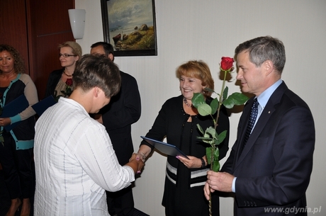 Monika Pawlicka z Zespołu Szkół Rzemiosła i Handlu im. Bandery Polskiej została „Nauczycielem roku miasta Gdyni". Wyniki dwunastej edycji konkursu organizowanego przez Klub Rotary Gdynia zostały ogłoszone 1 lipca 2013 r. Wyróżnienia w konkursie otrzymali Adam Dzedzej z III LO z Oddziałami Dwujęzycznymi im. Marynarki Wojennej RP i Stefania Rąpała z Przedszkola nr 48.Nauczyciele byli nominowani przez gdyńskie placówki oświatowe i opiekuńcze. Ich osiągnięcia pedagogiczne oraz pracę społeczną oceniała kapituła konkursu, składająca się z członków klubu oraz wiceprezydent Gdyni Ewy Łowkiel. Do finału zakwalifikowano trzy osoby, z którymi przeprowadzono rozmowy kwalifikacyjne. Trójka finalistów otrzymała nagrody pieniężne, a zwycięzca dodatkowo statuetkę, której projekt wykonali uczniowie Liceum Plastycznego w Gdyni. Klub Rotary Gdynia realizuje cztery podstawowe programy :1. Współpraca z OREWWieloletnia współpraca w ramach której udzielona została pomoc w wyposażeniuOśrodka. W maju 2013 roku nasz Klub pozyskał kwotę 55 tys. $ na zakup pojazduspecjalistycznego, przystosowanego do przewozu dzieci niepełnosprawnych. Na kwotę tę składa się :- wkład własny naszego Klubu,- dofinansowanie Fundacji Rotary,- dofinansowanie Klubu Rotary z Danii,- dofinansowanie Klubu Rotary z Poczdamu.2. Fundusz StypendialnyW ramach tego projektu nasz Klub w roku szkolnym 2012/2013 przyznał 6 stypendiów naukowych wypłacanych co miesiąc przez 10-ć miesięcy w roku szkolnym. Z pomocy tej korzysta między innymi młodzież z Liceum Plastycznego w Orłowie oraz studenci Gdyńskiej Szkoły Filmowej w Gdyni.3. Bon EdukacyjnyPilotażowy, pierwszy w Polsce, projekt polegający na udzielaniu pomocy młodzieży, która ukończyła gimnazjum, a pochodzi z najuboższych polskich wsi. W programie tym nasz Klub udziela wszelkiej pomocy niezbędnej dla przeprowadzenia pełnego procesudalszej edukacji, zakończonego znalezieniem pracy na warunkach pełnej umowy o pracę.Proces ten składa się z trzech następujących po sobie etapów, czyli :- szkoła średnia i matura,- studia wyŜsze lub licencjat,- podpisanie umowy o pracę.W 2013 roku pierwszy, trwający prawie 5 lat, pilotaŜowy program został zakończony z sukcesem, a osoba objęta pomocą pracuje na etacie w pełnym wymiarze godzin.4. Projekt „Dlaczego warto pamiętać …?”Nasz Klub przejął tradycje Klubu Rotary Gdynia załoŜonego w 1934 roku w Gdyni.W ramach tego projektu wydzielono dwa zagadnienia, tzn. :4.1. Odszukiwani są Członkowie Założyciele Klubu Rotary Gdynia, ich groby objęte są opieką, a w przypadku Wacława Gierdziejowskiego za zgodą Wojewody Pomorskiego odsłonieta została w czerwcu Tablica Pamiątkowa na Cmentarzu Wojskowym w Redłowie. śycie, kultura, praca - zarówno zawodowa jak i społeczna tych ludzi może służyć za wzór w dzisiejszych czasach, czego dobrym przykładem jest również postać Juliana Rumla Pierwszego Prezydenta Klubu Rotary Gdynia.Przypomnieniu tych postaci towarzyszy dzisiaj nacisk na przywracanie i reaktywowanie wartości nadrzędnych, które w okresie po drugiej Wojnie Światowej systematycznie odchodziły w zapomnienie, stając się niepotrzebną formułą przyzwoitości.4.2. W ramach tego projektu prowadzone są również prace nad tzw. dobrami kultury,czego przykładem mogą być :- odtworzenie pełnej dokumentacji Kościółka pw. Św. Józefa w Kolibkach , który stał do 1939 roku na granicy z Wolnym Miastem Gdańsk,- sfinalizowanie wspólnie z Urzędem Miasta Gdyni projektu odtworzenia zabytkowej, pamiętającej czasy jagiellońskie, więźby dachowej w Kościele p.w. Najświętszej Maryi Panny w Orłowie.->zdjęcie do pobrania->zdjęcie do pobrania-> zdjęcie do pobraniafot. Michał Kowalski Opublikowano: 02.07.2013 00:00 Autor: Michał Kowalski (2011)