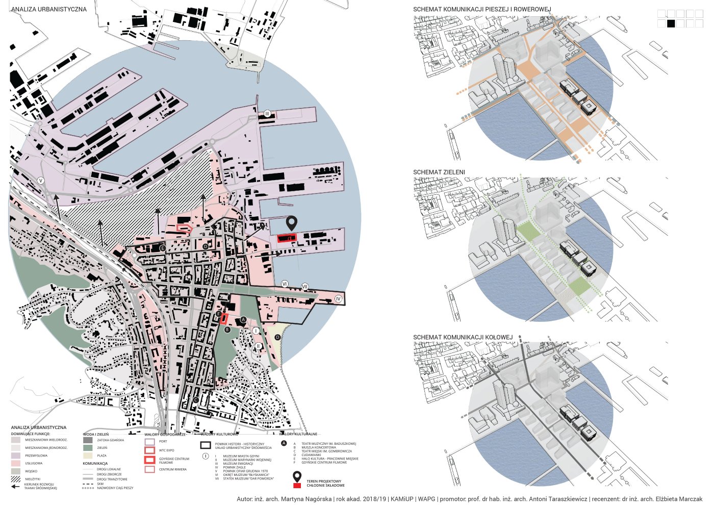 Znamy już laureatów Nagrody Prezydenta Gdyni za najlepszą pracę dyplomową o tematyce gdyńskiej, która powstała na Wydziale Architektury Politechniki Gdańskiej. W edycji konkursu za dyplomy obronione w 2019 roku zwyciężyła Martyna Nagórska. Studentka przygotowała niezwykle ciekawy projekt zaadaptowania dawnych chłodni na molo Rybackim. W konkursie mogą startować ci studenci, których prace opowiadają o Gdyni. Nagradzane projekty mają ponadto odpowiadać żywotnym miejskim potrzebom, nosić cechy realności i reprezentować wysoki poziom estetyczny.Tegoroczną nagrodę przyznano za prace dyplomowe napisane na Wydziale Architektury Politechniki Gdańskiej i obronione w 2019 roku.Zwycięski projekt autorstwa Martyny Nagórskiej // materiały własne autorkiPierwszą nagrodę zdobyła Martyna Nagórska. Jej praca podjęła temat rewitalizacji obiektów poprzemysłowych. Studentka wzięła na warsztat budynki dawnych chłodni na molo Rybackim, adaptując je na Przystań Filmową. Promotorem pracy był prof. dr hab. inż. arch. Antoni Taraszkiewicz, a recenzentką dr inż. arch. Elżbieta Marczak.Kapituła nagrody przyznała również dwa równorzędne wyróżnienia. Jedno z nich otrzymała Natalia Wrzesińska za pracę dotyczącą abrazji. Autorka rozważa w niej kwestie zminimalizowania skutków zjawiska. Całość oparta jest na przykładzie koncepcji zagospodarowania klifu w Orłowie. Promotorem pracy był dr inż. arch. Bazyli Domsta, a recenzentem dr inż. arch. Stefan Niewitecki.Wizualizacje wyróżnionej pracy Natalii Wrzesińskiej. Projekt dotyczy ograniczenia zjawiska abrazji na przykładzie klifu w Orłowie // fot. Paweł KuklaZ kolei druga wyróżniona studentka, Dominika Walkusz, w pracy dotyczącej sezonowości i zmienności ruchu turystycznego w nadmorskich miejscowościach, przedłożyła projekt krytego stoku narciarskiego na górze Donas. Dyplom powstał pod opieką promotora dr inż. arch. Jana Cudzika. Recenzentką była dr inż. arch. Małgorzata Rogińska-Niesłuchowska.Projekt krytego stoku narciarskiego na górze Donas autorstwa Dominiki Walkusz // fot. Paweł Kukla - Od wielu lat studenci zaskakują nas swoją pomysłowością i śmiałością w prezentowanych pracach dyplomowych. Cieszę się, że Gdynia inspiruje młodych architektów i że czyni to na wielu płaszczyznach. Potwierdzeniem tego mogą być nagrodzone w tym roku prace – każda z nich dotyczy innych zagadnień i przestrzeni w naszym mieście, a jednocześnie wszystkie poruszają tematy ważne dla Gdyni i jej mieszkańców. Składam serdeczne gratulacje młodym absolwentom – komentuje Wojciech Szczurek, prezydent Gdyni. Już wkrótce nagrodzone prace będzie można zobaczyć w gdyńskim InfoBoksie.Konkurs o Nagrodę Prezydenta Gdyni dla autorów prac dyplomowych, które przygotowane zostały na Wydziale Architektury Politechniki Gdańskiej, jest organizowany od 2000 roku. Kapituła co roku wybiera najciekawsze prace przedstawiające interesujące projekty w przestrzeni miasta. Galeria zdjęć Pobierz galerię Zwycięski projekt autorstwa Martyny Nagórskiej // materiały własne autorki Pobierz zdjęcie Wizualizacje wyróżnionej pracy Natalii Wrzesińskiej. Projekt dotyczy ograniczenia zjawiska abrazji na przykładzie klifu w Orłowie // fot. Paweł Kukla Pobierz zdjęcie Projekt krytego stoku narciarskiego na górze Donas autorstwa Dominiki Walkusz // fot. Paweł Kukla Pobierz zdjęcie Warunki pobierania Wszelkie prawa do zdjęć lub grafik prezentowanych w ramach portalu, należą do Prowadzącego portal lub do podmiotów z nim współpracujących i podlegają ochronie prawnej. Prowadzący portal zezwala na kopiowanie i przedstawianie utworów jedynie w celach niekomercyjnych oraz pod warunkiem zachowania go w oryginalnej postaci i zachowaniem kontekstu tematu, do którego zostało wykorzystaneprzez redakcję gdynia.pl. Opublikowane materiały powinny zawsze zawierać źródło, czyli adres strony www.gdynia.pl. Na publikowanie utworów w innych celach wymagana jest zgoda właściciela strony czyli Prowadzącego portal. Opublikowano: 05.11.2020 10:13 Autor: Paweł Kukla (p.kukla@gdynia.pl) Zmodyfikowano: 05.11.2020 18:36 Zmodyfikował: Redakcja portalu Gdynia.pl