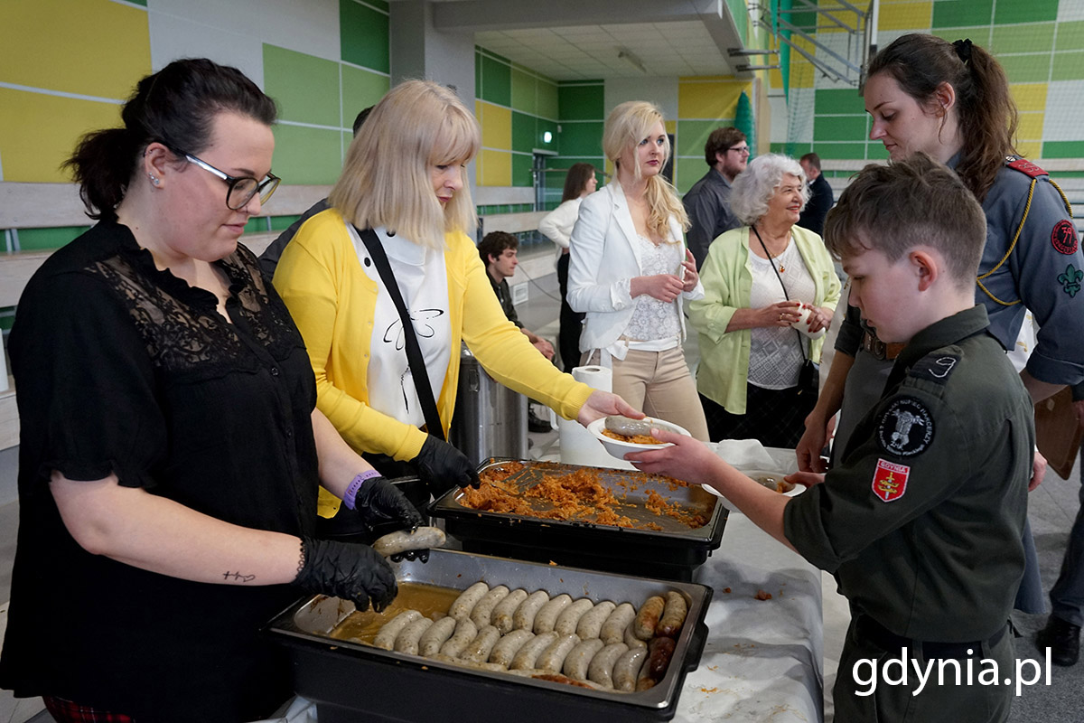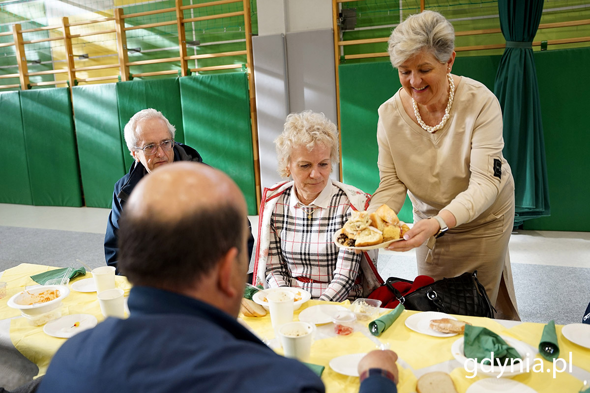 W duchu wspólnoty, radośnie, z nadzieją – tak przebiegło śniadanie wielkanocne dla osób samotnych i potrzebujących, którew odbyło się w wielkanocną niedzielę, 31 marca. To kolejna odsłona liczącej już kilkadziesiąt już lat pięknej gdyńskiej tradycji pomagania, wspierania i bycia w święta razem z tymi, którzy tej obecności, wsparcia i życzliwości szczególnie potrzebują. O godzinie 08:00 rano w VI Liceum Ogólnokształcącym w Gdyni rozpoczęło się śniadanie wielkanocne, na które miasto zaprosiło osoby samotne i potrzebujące. Organizatorzy – m.in. pracownicy Gdyńskiego Centrum Sportu i Centrum Aktywności Seniora, a również dziesiątki wolontariuszy, harcerzy i działaczy Caritasu – przygotowali łącznie miejsca dla 500 osób. Prezydent Gdyni Wojciech Szczurek wspólnie z posłem RP Jackiem Karnowskiem obsługiwali zaproszonych gości. Fot. Mirosław Pieślak W obsłudze gości, którzy skorzystali z zaproszenia do wspólnego stołu pomagali także prezydent Gdyni Wojciech Szczurek, wiceprezydenci Michał Guć i Marek Łucyk oraz reprezentanci Rady Miasta Gdyni: przewodnicząca Joanna Zielińska, wiceprzewodniczący Jakub Ubych oraz radni: Anna Szpajer, Elżbieta Raczyńska, Lechosław Dzierżak, Jakub Furkal i Zenon Roda. O duchowe wsparcie, modlitwę zadbał o. Piotr Matuszak z parafii pw. Świętego Antoniego Padewskiego w Gdyni. Na śniadaniu pojawił się również poseł na Sejm RP, Jacek Karnowski, wieloletni prezydent Sopotu. - To szczególny dzień, w którym możemy być razem. Dzisiaj wszyscy zasiadają do świątecznego stołu, miejsca przy tym stole nie może zabraknąć dla nikogo w naszym mieście – zwrócił się do zaproszonych na śniadanie gdynian prezydent miasta, Wojciech Szczurek. - Bardzo dziękuję wolontariuszom, którzy przygotowali to nasze wspólne spotkanie, ale przede wszystkim dziękuję wam, że chcieliście tu przyjść - by nie spędzać świąt samemu w domu, by być razem, byśmy jako miasto, taka wielka, duża rodzina pamiętali o sobie nawzajem; nieśli pomoc, nieśli wsparcie, ale przede wszystkim poczuli, że nasza wspólna obecność buduje ducha wspólnoty i wsparcia. Życzę wam dobrych, spokojnych świąt i niech ten stół zastawiony dzisiaj, niech to śniadanie, uśmiech, radość i nadzieja, która wiąże się ze świętami zmartwychwstania pańskiego towarzyszy państwu każdego dnia. Wszystkiego dobrego – złożył życzenia Wojciech Szczurek. Na stołach nie zabrakło świątecznych potraw. Na zdj. m.in. Elżbieta Raczyńska, radna Rady Miasta Gdyni. Fot. Mirosław Pieślak Śniadanie wielkanocne dla samotnych i potrzebujących mają w Gdyni kilkudziesięcioletnią już tradycję. To nie tylko możliwość spotkania się, złożenia życzeń, spędzenia poranka wielkanocnego przy wspólnym stole, ale i pomoc rzeczowa. Wszyscy uczestnicy niedzielnego śniadania otrzymali od miasta paczki świąteczne z produktami, których podczas świąt w domu zabraknąć nie powinno. To m.in. mięsiwa, ser, słodycze, żurek – wszystko spakowane i przygotowane przez wolontariuszy, zorganizowanych przez Centrum Aktywności Seniora w Gdyni. - Bardzo się cieszymy, że przed akcją świąteczną mamy taką wspaniałą integrację międzypokoleniową, mamy wolontariuszy już od najmłodszych lat, to są 8 i 9-latki – mówiła nam kilka dni wcześniej podczas przygotowań świątecznych paczek Bożena Zglińska, dyrektorka Centrum Aktywności Seniora. - To jest wspaniałe, że każdy chce się przyczynić do tego, aby w tym świątecznym dniu gdynianie byli również świątecznie nastawieni, by dzielić się dobrem, które wraca. Ale to również ogromna przyjemność dla nas wszystkich tutaj, że możemy dać z siebie coś komuś. To bardzo wzruszające. Co roku mamy coraz więcej osób, które dopytują, kiedy będziemy robić paczki, kiedy szykować stoły, pytają, czy przyjść w niedzielę również, żeby pomóc, mimo, że to godzina 08:00 rano. Jest to bardzo budujące i bardzo za to wszystkim dziękuję – podkreśliła Bożena Zglińska. Bożena Zglińska, dyrektorka Centrum Aktywności Seniora wraz z wolontariuszami podczas wielkanocnego śniadania. Fot. Mirosław Pieślak Centrum Aktywności Seniora nadzorowało również przygotowanie wielkanocnego śniadania, które w tym roku odbyło się w siedzibie VI Liceum Ogólnokształcącego w Gdyni. Pomagali również harcerze i harcerski z Okręgu Pomorskiego ZHP, pracownicy Gdyńskiego Centrum Sportu, Parafialny Zespół Caritas przy kościele ojców franciszkanów, Starogardzkie Bractwo Rycerskie oraz wolontariusze – jak podkreśla Bożena Zglińska - wspaniali ludzie o dobrych sercach, którzy tym właśnie sercem, uśmiechem i życzliwością bezinteresownie dzielą się z innymi. Gdyńskie śniadanie wielkanocne dla samotnych i potrzebujących. Fot. Mirosław Pieślak Co znalazło się na stołach podczas wielkanocnego śniadania? To, co na tradycyjnym stole jest w domu na święta, czyli żurek, kiełbaska biała, bigos, jajka, szynka, pasztet, sałatka jarzynowa, ciasto i oczywiście paczki na wynos. Galeria zdjęć Pobierz galerię Gdyńskie śniadanie wielkanocne dla samotnych i potrzebujących. Od lewej stoją: Joanna Zielińska, przewodnicząca Rady Miasta Gdyni, poseł RP Jacek Karnowski, prezydent Gdyni Wojciech Szczurek oraz o. Piotr Matuszak z parafii pw. Świętego Antoniego Padewskiego w Gdyni. Fot. Mirosław Pieślak Pobierz zdjęcie Prezydent Wojciech Szczurek wita się z gośćmi na śniadaniu wielkanocnym. Fot. Mirosław Pieślak Pobierz zdjęcie Gdyńskie śniadanie wielkanocne dla samotnych i potrzebujących. Fot. Mirosław Pieślak Pobierz zdjęcie Duchowe wsparcie, tak potrzebne w okresie świąt, od o. Piotra Matuszaka z parafii pw. Świętego Antoniego Padewskiego w Gdyni. Fot. Mirosław Pieślak Pobierz zdjęcie Gdyńskie śniadanie wielkanocne dla samotnych i potrzebujących. Fot. Mirosław Pieślak Pobierz zdjęcie Pre