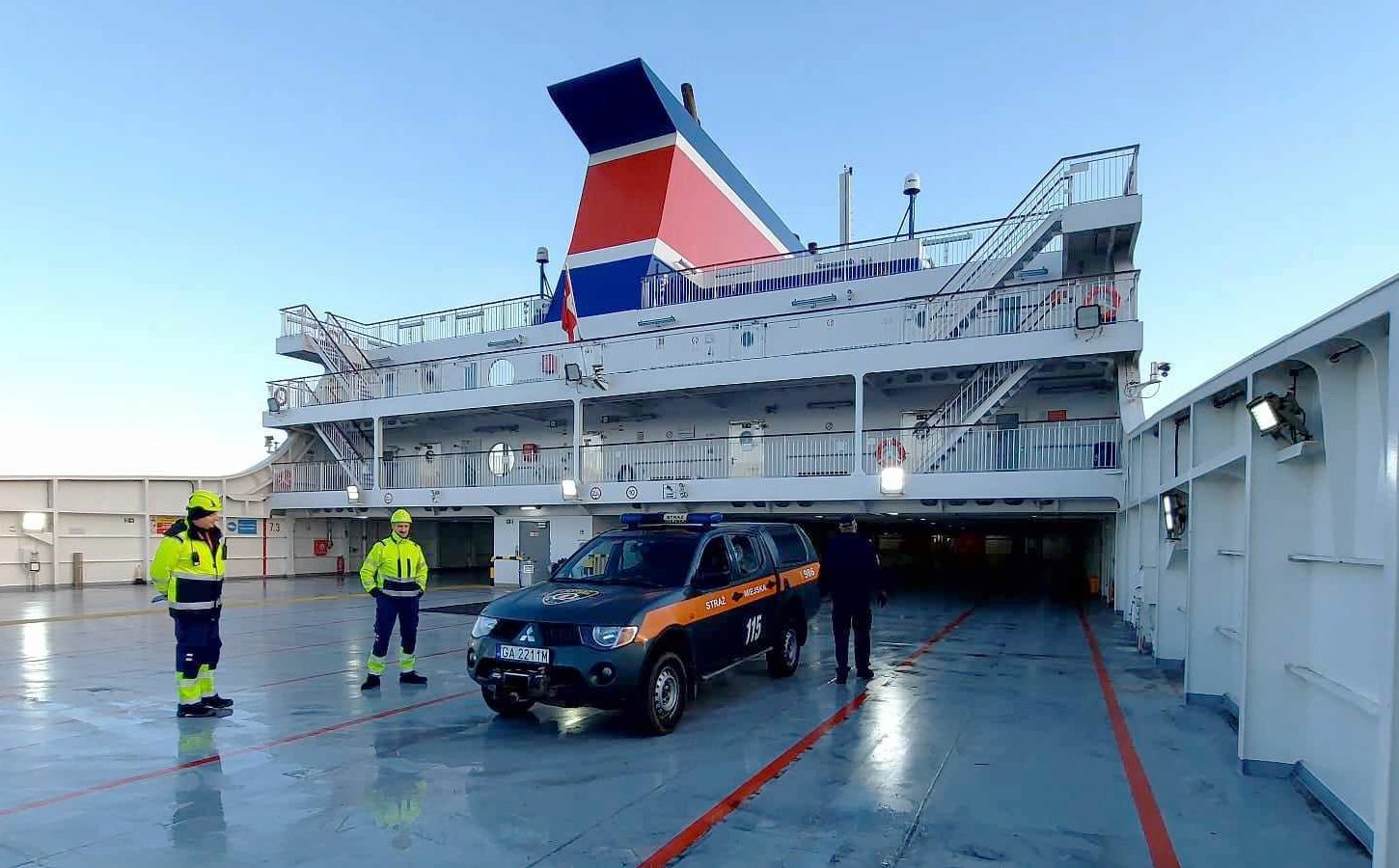 Taka z niej spryciara – zamiast dolecieć na skrzydłach, przedostała się ze Szwecji do Polski… promem. Wygodnie, komfortowo, bez wysiłku i z darmowym wyżywieniem. Dalsze plany pasażerki na gapę pokrzyżowali strażnicy miejscy, którzy nie wlepili jej mandatu za brak biletu, lecz zabrali zwierzę do lecznicy. O niecodziennej interwencji Ekopatrolu gdyńskiej Straży Miejskiej opowiedział nam jej komendant, Andrzej Bień. - W piątek gdyńska Straż Miejska otrzymała informację od oficera dyżurnego promu Stena Line, który płynął ze Szwecji. Okazało się, że po głównym pokładzie chodzi duży ptak, kaczka albo gęś – relacjonował nam komendant Straży Miejskiej. Gęś płynęła na gapę promem ze Szwecji do Polski. Fot. SM Gdynia Zwierzę nie odlatywało z promu, choć wyglądało na zdrowe, lecz wygodnie kontynuowało podróż, dokarmiane przez załogę. Straż Miejska ustaliła z załogą promu, kiedy jednostka zawinie do Gdyni. Straż Miejska zabrała gęś z promu. Fot. SM Gdynia - O godzinie 7:30 w sobotę, między przeładunkami, pracownicy promu wprowadzili funkcjonariusza Ekopatrolu na teren górnego pokładu, gdzie pod jednym z trapów siedziała – jak się okazało - gęś zbożowa. Udało się ją odłowić i gąska trafiła do lecznicy – mówił Bień. Okazało się, że zwierzę jest zdrowe. Podróż na gapę w niczym nie pogorszyła jej dobrostanu. Gąska trafiła do ośrodka leczenia dzikich zwierząt, skąd wkrótce zostanie wypuszczona na wolność. Zostanie w Polsce, czy wróci do Szwecji – na przykład promem? Życie pokaże. Gąska trafiła do lecznicy. Okazało się, że jest zdrowa. Fot. SM Gdynia Opublikowano: 14.11.2023 11:58 Autor: Zygmunt Gołąb (z.golab@gdynia.pl) Zmodyfikowano: 14.11.2023 15:36 Zmodyfikował: Karolina Szypelt
