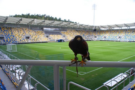 Goście specjalni odwiedzili we wrześniu Stadion Miejski w Gdyni. Jastrzębie przyleciały do pracy! Stadion piłkarski okazał się bowiem atrakcyjny nie tylko dla zwiedzających czy kibiców, cieszy się również zainteresowaniem... gołębi. Obiekt stał się miejscem schronienia dla gołębi, a zwiększająca się regularnie ich ilość, może okazać się zagrożeniem nie tylko dla kibiców, ale również znajdującego się tam sprzętu.Jastrzębie, które przybyły wraz ze swym opiekunem, od pierwszej chwili czuły się na stadionie niczym strażnicy. Szybko zabrały się do pracy i zaczęły odstraszać gołębie. W razie potrzeby zostaną zaproszone ponownie. fot. Paulina Dobrowolska Opublikowano: 05.10.2011 00:00 Autor: Michał Kowalski (2011)