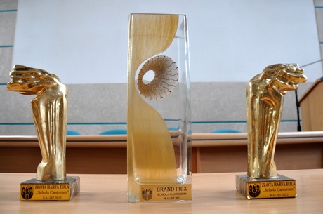 Wielkim sukcesem zakończył się udział Zespołu Muzyki Średniowiecznej „Euterpe” Młodzieżowego Domu Kultury w Gdyni w XXXIV Ogólnopolskim Festiwalu Zespołów Muzyki Dawnej „Schola Cantorum”, który 21 - 24 lutego 2012 r. odbył się w Kaliszu. Grupa zdobyła nie tylko Grand Prix, ale także dwie Złote „Harfy Eola” – w kategorii zespołów instrumentalnych i wokalno-instrumentalnych. Zdobycie trzech nagród głównych na Festiwalu przez jeden zespół zdarzyło się po raz pierwszy w trzydziestoczteroletniej historii konkursu.Jury festiwalu przesłuchało łącznie 32 zespoły z 12 województw. Oceniało przede wszystkim zgodność prezentowanej muzyki i tańca oraz stroju z daną epoką, dobór i opracowanie repertuaru, intonację, ogólny wyraz artystyczny i interpretację stylów muzyki dawnej. Zespół Muzyki Średniowiecznej „Euterpe” powstał w 2006 r. W jego skład wchodzą obecnie: Martyna Grabowska – Fidel, rebec, citola; Weronika Blautenberg – flety, gemshoru, szałamaja; Natalia Blautenberg – flety, lira korbowa, fidel; Klaudia Brzezińska – bęben obręczowy; Justyna Rączka – śpiew solowy; Eliza Fronszczyk – Fidel, wiola; Jerzy Leo – cymbały; Martyna Bobrucka – wiola, instrumenty perkusyjne; Agnieszka Bobrucka – tubmaryna; Iwona Michalewska – viola, śpiew. Zespół prowadzony przez Barbarę Czypul, długoletnią nauczycielkę w Młodzieżowym Domu Kultury, kontynuuje wieloletnie tradycje swojego poprzedniego składu, który kilkanaście razy był nagradzany na kaliskim festiwalu. W tym ostatnio Brązową Harfą Eola w 2008 r., Srebrną Harfą Eola w 2009 r. oraz Złotą Harfą Eola 2010 r. Barbara Czypul w 2011 roku z okazji jubileuszu 60-lecia placówki otrzymała Nagrodę Prezydenta Gdyni. 29 lutego 2012 zespół gościł w Urzędzie Miasta Gdyni. Wiceprezydent Gdyni Ewa Łowkiel gratulowała sukcesu i wręczyła upominki. fot. Dorota Nelke Opublikowano: 29.02.2012 00:00 Autor: Michał Kowalski (2011)