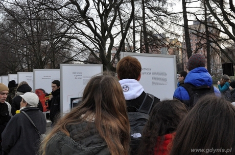 Jak o wydarzeniach Grudnia'70 w Gdyni opowiedzieć z powagą, a jednocześnie w ciekawej i świeżej formie? To zadanie, jakie postawili przed sobą autorzy plenerowej wystawy graficznej, która została otwarta 17 grudnia 2013 r. w 43. rocznicę tragedii w pobliżu pomnika Ofiar Grudnia 1970 przy al. Marszałka Józefa Piłsudskiego w Gdyni. Twórcą koncepcji i tekstów do wystawy „Grudzień 1970 w Gdyni" jest dr Michał Sempołowicz, kierownik referatu edukacji historycznej w gdańskim oddziale Instytutu Pamięci Narodowej. Projekt graficzny stworzyli z kolei studenci z Akademii Sztuk Pięknych w Gdańsku - Gabriela Giegiel i Aleksander Kamiński (pod opieką profesora dr. hab. Sławomira Witkowskiego). To trzynaście plansz opowiadających tragiczną historię. Staraliśmy się nawiązać do stylistyki ilustracji oraz plakatów z czasów PRL-u, to było nasze główne założenie. Zależało nam na opowiedzeniu historii w metaforyczny sposób. Jednocześnie chcieliśmy się wyzbyć dosłowności tematu, a przede wszystkim jego dramatyzmu - zaznacza Aleksander Kamiński. Z kolei Gabriela Giegiel dodaje: Celowo odrzuciliśmy mroczny, wręcz krwawy obraz tamtych wydarzeń, ponieważ krew jest już wszędzie i przestaje szokować, traci symbolikę. Zrezygnowaliśmy ze zdjęć, zastępując je ilustracjami, ponieważ przy okazji chcieliśmy pokazać, że ten rodzaj sztuki stoi w Polsce na naprawdę wysokim poziomie.To, co ją wyróżnia od innych wystaw historycznych, to forma i sposób prezentacji. Oglądający nie znajdą na niej archiwalnych dokumentów czy fotografii - zapowiada Jan Daniluk, z gdańskiego oddziału IPN. Autorzy położyli główny nacisk na grafikę, do minimum ograniczając także tekst. To jest wystawa plenerowa, zatem ma sprowokować do zatrzymania się i poświęcenia dłuższej chwili na zastanowienie się. Zresztą zamysłem nie było zebranie pełnej dokumentacji i wiedzy na temat Grudnia'70. Twórcy chcą, aby po jej obejrzeniu szczególnie młodzi odbiorcy sięgnęli po książkę czy inne materiały i sami wyszukali kolejne wiadomości - dodaje.Prace będzie można oglądać do końca stycznia 2014 roku. fot. Dorota Nelke Opublikowano: 17.12.2013 00:00 Autor: Małgorzata Omachel - Kwidzińska (malgorzata.omachel-kwidzinska@gdynia.pl)