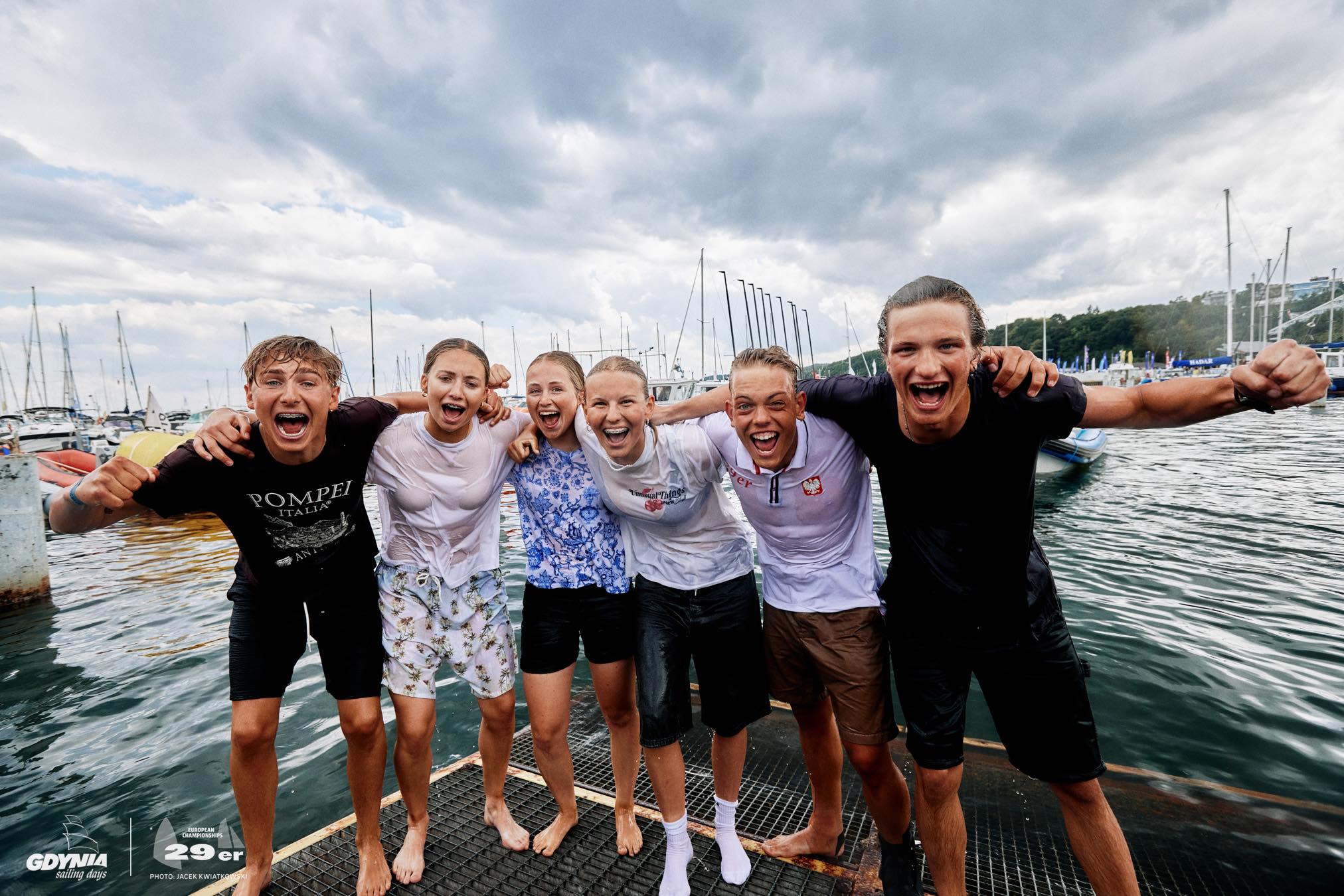 Ten występ z pewnością przejdzie do annałów młodzieżowego żeglarstwa. W mistrzostwach Europy w klasie 29er, które odbyły się w ramach 25. edycji Gdynia Sailing Days, Polacy wywalczyli cztery złote oraz brązowy medal, zajęli także dwa pierwsze miejsca w klasyfikacji generalnej. - Nie pamiętam, aby przedstawiciele jakiegoś kraju tak zdominowali mistrzowskie regaty – powiedział trener kadry Kajetan Jabłoński. cztery złote oraz brązowy medal zdobyli polscy żeglarze w Mistrzostwach Europy 29er impreza rozgrywana jest w ramach Gdynia Sailing Days festiwal żeglarski potrwa do 21 lipca W Gdyni najlepsi okazali się Ewa Lewandowska (AZS AWFiS Gdańsk) i Krzysztof Królik (ChKŻ Chojnice) w mikście, Alicja Tutkowska (YKP Gdynia) i Alicja Dampc (ChKŻ Chojnice) wśród kobiet, natomiast Bartosz Żmudziński i August Sobczak (ChKŻ Chojnice) triumfowali w dwóch kategoriach – w gronie mężczyzn oraz w U-17. Ponadto Aniela Frąckowiak i Igor Piechota (Rockstars Racing Nowa Sól) zajęli trzecią lokatę w mikście w kategorii U-17. Zgodnie ze starym żeglarskim zwyczajem złoci medaliści w geście triumfu zostali wrzuceni przez kolegów do wody.Alicja Tutkowska Alicja Dampc podczas Gdynia Sailing Days 2024 (fot. Szymon Sikora) – Jak sięgam pamięcią, to w tej klasie konkurencja była bardzo wyrównana, notowaliśmy też sporą różnorodność, bo medale zdobywali reprezentanci wielu krajów. Do tej pory nie było dominacji jednego państwa, a teraz to się zmieniło. Te wyniki są bardzo miłą niespodzianką i niezwykle nas cieszą. Wielkie gratulacje dla naszych zawodników i trenerów. Musimy jednak mieć na uwadze, że jest to klasa przygotowawcza. To wspaniale, że nasi reprezentanci osiągają takie sukcesy i potrafią wygrywać, ale liczę, że najlepsze lata dopiero przed nimi. Oby miały miejsce kiedy przejdą do konkurencji olimpijskich, bo większa wewnętrzna rywalizacja i współpraca to zdecydowanie większa szansa na lepsze rezultaty w gronie seniorów –stwierdził prezes Polskiego Związku Żeglarskiego Tomasza Chamera. Regaty na Zatoce Gdańskiej odbyły się niemalże na pełnym dystansie, rozegrano 15 z zaplanowanych 18 wyścigów. Przez pięć dni żeglarze ścigali się w bardzo dobrych, ale jednocześnie zmiennych i wymagających warunkach. Wiatru zabrakło jedynie w poniedziałek – ostatniego dnia zawodnicy nie zeszli na wodę.Bartosz Żmudzinski August Sobczak podczas Gdynia Sailing Days 2024 (fot. Szymon Sikora) – Urok żeglarstwa polega też na tym, że mierzymy się z siłami natury, których człowiek nie jest w stanie okiełznać. Końcowe wyniki są wypadkową postawy we wszystkich wyścigach, a ich liczba w Gdyni absolutnie wyklucza element przypadku. Także jeden dzień bez startów nie jest w stanie zmienić generalnej wysokiej oceny i zamazać dobrego wrażenia. Zresztą uśmiechnięte twarze zawodników dowodzą, że pod każdym względem była to udana impreza. Jako organizatorzy spełniliśmy oczekiwania przedstawicieli klasy 29er oraz samych uczestników – podkreślił prezes Chamera. Ewa Lewandowska Krzysztof Królik podczas Gdynia Sailing Days 2024 (fot. Szymon Sikora)Gospodarze regat otworzyli również klasyfikację generalną. W stawce 138 załóg z 25 państw pierwsi byli Lewandowska i Królik, drudzy Żmudziński i Sobczak, a w czołowej „15” zameldowało się aż sześć polskich załóg. Biało-czerwoni bezapelacyjnie zwyciężyli w Pucharze Narodów, czyli w klasyfikacji drużynowej. – Nie pamiętam, aby przedstawiciele jakiegoś kraju tak zdominowali młodzieżowe mistrzowskie zawody. Nie jestem jednak zdziwiony, bo już w zeszłym roku mieliśmy zapowiedź tych sukcesów. To jest świetna, bardzo silna i liczna grupa, która znakomicie pracuje – skomentował trener Jabłoński. 25-letni szkoleniowiec nie ukrywa, że pozytywnie zaskoczył go Bartosz Żmudziński, który w poprzednim sezonie rywalizował jeszcze w klasie Optimist. W tym roku zaczął pływać razem z Sobczakiem, dla którego jest to czwarty sezon w klasie 29er. Do tej pory August był jednak sternikiem, a teraz przypadła mu rola załoganta. – Spodziewałem, że ten duet będzie skutecznie rywalizował w kategorii U-17, ale nie przypuszczałem, że zniszczy seniorów i innych chłopaków w U-19. Ich wynik jest powyżej założeń. Oni w tym roku, z powodu dwóch kontuzji, mało pływali i praktycznie nie uczestniczyli w regatach. W tej klasie Bartek wystartował w trzech zagranicznych imprezach, w których też za wiele nie wiało i może zaliczył 20 wyścigów. Ostatnio w Kieler Woche ta załoga była druga, a w Gdyni wywalczyła złoty medal – dodał Jabłoński. Polscy medaliści Mistrzostw Europy 29er (fot. Szymon Sikora)W Gdyni wielką klasę potwierdziła Ewa Lewandowska, która w grudniu w Buzios została młodzieżową mistrzynią świata World Sailing wśród kobiet – w Brazylii jej załogantką była Julia Żmudzińska (AZS AWFiS Gdańsk). – Startowaliśmy na własnym, ale wyjątkowo trudnym i nieprzewidywalnym akwenie. Wszyscy jesteśmy niezmiernie zadowoleni, bo te mistrzostwa można rozpatrywać również w kategorii bardzo dobrego startu wszystkich polskich załóg. Trenowaliśmy razem, wspieraliśmy się, naciskaliśmy na siebie, pchaliśmy do przodu i te regaty nam to oddały – zauważyła Ewa Lewandowska. Skok do wody polskich medalistów Mistrzostw Europy 29er podczas Gdynia Sailing Days 2024 (fot. Szymon Sikora)Po zawodach dwie załogi nie będą jednak miały za wiele czasu na świętowanie tego sukcesu. Ewa Lewandowska i Krzysztof Królik oraz Alicja Tutkowska i Alicja Dampc lecą w środę do Włoch, gdzie na Jeziorze Garda odbędą się kolejne Młodzieżowe Mistrzostwa Świata World Sailing. Uroczyste otwarcie regat zaplanowano na sobotę 13 lipca, dwa dni później rozpoczną się oficjalne wyścigi. – W Gdyni umiejętnie pływaliśmy pod względem taktycznym, uzyskiwaliśmy też bardzo dobrą prę