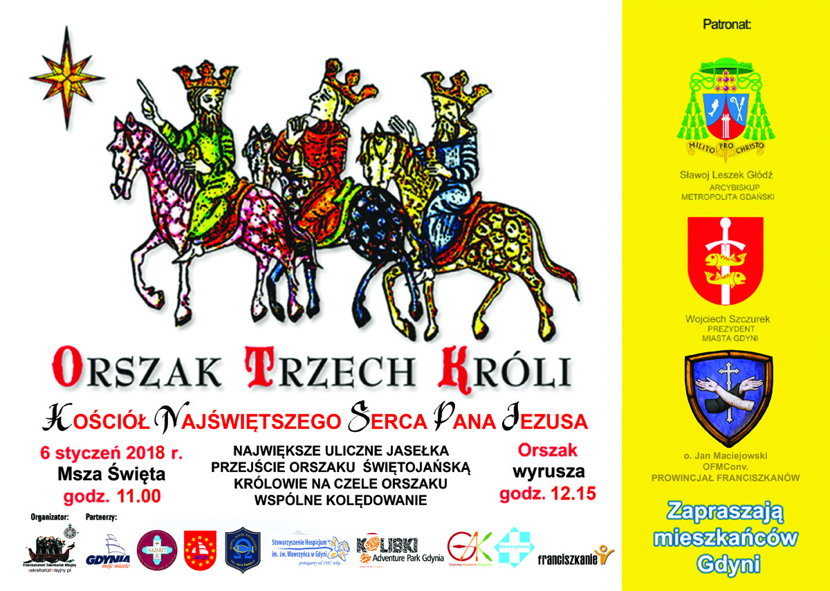 Orszak Trzech Króli ponownie w Gdyni W sobotę 6 stycznia, w Święto Trzech Króli, ulicami przemaszeruje orszak w gdyńskiej magicznej scenerii. Przemarsz poprzedzi msza św. odprawiona o godz. 11.00 w kościele pw. Najświętszego Serca Pana Jezusa. Scenariusz orszaku nawiązuje do tradycji jasełek i jest oparty na przekazie biblijnym. Fabułę podzielono na kilka kluczowych scen.Szczegóły: http://gdynia.pl/kalendarz Koncert "Kolędę zaśpiewajmy..." Stowarzyszenie Per Musica Ad Astra zaprasza na koncert "Kolędę zaśpiewajmy..." w wykonaniu chórów gdyńskich, który odbędzie się w sobotę 6 stycznia w godzinach 15:00 - 16:30 w Parafii Najświętszego Serca Pana Jezusa (ul. Armii Krajowej 46). Wstęp wolny. Koncert Bożonarodzeniowe Kolędowanie Rada Dzielnicy Wielki Kack zaprasza na koncert Bożonarodzeniowe Kolędowanie w sobotę 6 styczni o godz. 16.30 w Kościele pw. św. Wawrzyńca w Gdyni Wielkim Kacku przy ul. Źródło Marii 18. Wstęp wolny. Pobiegnij w Parkrun Gdynia Zawsze 5 kilometrów, zawsze na Bulwarze Nadmorskim, zawsze w sobotę o godzinie 9.00 rano. Mile widziani są biegacze mali i duzi, szybcy i trochę wolniejsi. Warunkiem uczestnictwa jest jedynie bezpłatna rejestracja w systemie.Szczegóły: www.parkrun.pl/gdynia Bazar Bo Ze Wsi w Centrum Gdynia Waterfront Znany i lubiany Bazar Bo Ze Wsi, na którym można się zaopatrzyć w ekologiczne i nisko przetworzone produkty, co sobotę odbywa się w godz. 10.00-15.00 w Centrum Gdynia Waterfront. Asseco Gdynia - Rosa Radom Kolejny mecz sezonu w koszykówce męskiej! W sobotę 6 stycznia o godz. 18.00 w Gdynia Arena Asseco Gdynia zagra z drużyną Rosa Radom. Wielka Gala Strauss i przyjaciele W niedzielę 7 stycznia w Gdynia Arena odbędzie się Wielka Gala Strauss i przyjaciele. Zbigniew Zamachowski, Wojciech Malajkat, Krystyna Prońko oraz… dźwięki najpopularniejszych walców i polek, za które kochamy całą rodzinę Straussów, a także wielkie przeboje muzyki rozrywkowej czekać będą na widzów Wielkiej Gali Strauss i przyjaciele. Wielkie widowisko muzyczne Strauss i przyjaciele będzie połączeniem muzyki klasycznej, tworzonej przez sławną rodzinę Straussów, oraz wielkich przebojów muzyki rozrywkowej. W programie nie zabraknie najsłynniejszych walców i polek, za które kochamy Straussów, a także prawdziwych hitów muzyki popularnej w ciekawych, nowatorskich aranżacjach. Orkiestra Symfoniczna Collegium F prowadzona przez znakomitego i charyzmatycznego maestra, Marcina Sompolińskiego, zadba o warstwę muzyczną wydarzenia. Koncert poprowadzi Zbigniew Zamachowski wspólnie z Wojciechem Malajkatem, którzy rozbawią publiczność niejednym dowcipem i wyszukaną anegdotą. Na scenie będzie można także zobaczyć Dariusza Stachurę - wybitnego polskiego tenora, który jako jedyny obcokrajowiec kreował partię Rudolfa w Cyganerii Giacomo Pucciniego w Turynie na zmianę z Luciano Pavarottim, największe gwiazdy polskiej sceny musicalowej: Zofię Nowakowską oraz Janusza Krucińskiego. Koncert uświetni także wybitny skrzypek Mariusz Patyra. Niewątpliwą niespodzianką będzie występ Marka Sośnickiego - lidera zespołu Tamerlane, który podczas koncertu pojawi się na scenie po wielu latach nieobecności. Gościem specjalnym Wielkiej Gali Strauss i przyjaciele będzie Krystyna Prońko. Całość uświetnią także tancerze formacji Art of Move.Koncert rozpocznie się o godz. 19.00.Bilety dostępne na www.eventim.pl Rewia jubileuszowa na bis Koncerty Sylwestrowe stały się już tradycją Teatru Muzycznego. Odbywają się od 1995 roku i każdego roku przyciągają liczną publiczność. Każdy koncert jest przygotowywany specjalnie z myślą o tej wyjątkowej okazji i jest prezentacją najpopularniejszych przebojów z repertuaru Teatru oraz największych musicalowych hitów. Teatr Muzyczny zaprezentuje Rewię Jubileuszową, w której podsumuje swoje 60 sezonów. Od piątku 5 stycznia do niedzieli 7 stycznia teatr zaprasza na Rewię na bis.Bilety: http://www.bilety.muzyczny.org Zobacz to, co najlepsze w Teatrze Miejskim Teatr Miejski im. Witolda Gombrowicza (ul. Bema 26) zaprasza: Od piątku do niedzieli 5, 6 i 7 stycznia na komedię „Następnego dnia rano” Petera Quiltera w reżyserii Grzegorza Kempinsky’ego. Nieoczekiwane konsekwencje przebudzenia w obcym miejscu. On budzi się w Jej łóżku i – zostaje tam na zawsze. Z nią? Niekoniecznie. Jak się okazuje, już wkrótce dołączą do nich ekscentryczni członkowie jej rodziny. Dlaczego? Po co? Jak tak można? No, można, można… Następnego dnia rano wszystko jest możliwe. Spektakl dla dorosłych. Centrum Kultury proponuje W piątek i sobotę 5-6 stycznia o godz. 19.00 i w niedzielę 7 stycznia o godz. 17.00 na spektakl „Mayday. Run For Your Wife” w reż. Dariusza Majchrzaka. Najzabawniejsza teatralna produkcja Trójmiasta. Zapraszamy na najbardziej oblegany spektakl sezonu - mrożącą krew w żyłach historię o tym, jak ważne jest przestrzeganie rozkładu jazdy i… jak żyć z dwiema żonami i nie zwariować.Bilety: 35/30 zł.W niedzielę 7 stycznia o godz. 12.00 na 10. Teatrzyk Młodego Artysty. Nadszedł czas na Was, młodzi artyści! Tylko tu możecie wykazać się swoim talentem: zaśpiewać ukochaną piosenkę, zrobić gwiazdę, powiedzieć wiersz, zbudować auto z patyków. Zapraszamy do czynnego uczestnictwa, ale również kibicowania na widowni. Być może na kolejnym spotkaniu to właśnie Ty zdecydujesz się wejść na scenę. Na wszystkich uczestników czekają dyplomy oraz podarunki od firmy Trefl. Wstęp wolny. Więcej informacji o imprezach w naszym Kalendarzu Wydarzeń Opublikowano: 04.01.2018 15:30 Autor: Michał Kowalski (michal.kowalski@gdynia.pl) Zmodyfikowano: 04.01.2018 15:41 Zmodyfikował: Agnieszka Janowicz