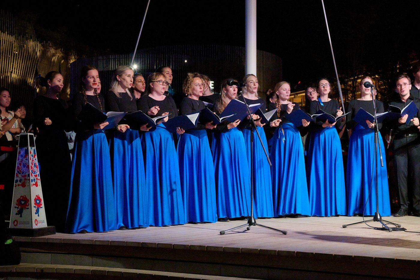 Sześć koncertów, 13 utworów oraz możliwość zaprezentowania polskiej kultury i muzyki filmowej. Akademicki Chór Uniwersytetu Morskiego w Gdyni zaśpiewał na Wystawie Światowej Expo 2025 w Osace. To jedno z najbardziej prestiżowych wydarzeń gospodarczo-kulturalnych na świecie. Japońska i międzynarodowa publiczność entuzjastycznie odebrała występy artystów z Gdyni. We wrześniu Akademicki Chór Uniwersytetu Morskiego w Gdyni wyruszył w daleką podróż, by reprezentować kraj, uczelnię, miasto i polską kulturę. Zespół podbił Kraj Kwitnącej Wiśni i serca japońskiej publiczności, występując na Expo 2025 w Osace. Jestem dumny z obecności naszego chóru na Expo 2025 w Osace. Wiem, że chórzyści wykonali ogrom pracy, przygotowując się do koncertów zaplanowanych w trakcie tego wydarzenia. Jestem przekonany, że występy przed tak szeroką, międzynarodową publicznością i podczas tak renomowanego wydarzenia, jakim jest Wystawa Światowa Expo, były dla nich niezwykle cennym doświadczeniem – mówi prof. dr hab. inż. kpt.ż.w. Adam Weintrit, rektor Uniwersytetu Morskiego w Gdyni. Akademicki Chór Uniwersytetu Morskiego w Gdyni pod dyrekcją Karola Hilli podczas jednego z koncertów na Expo 2025 w Osace (źródło: PAIH, fot. A. Stykowski) Wyjazd był poprzedzony wielomiesięcznymi próbami. Artyści zaprezentowali znane i lubiane utwory z polskich filmów i seriali, ale w zupełnie nowych i przygotowanych specjalnie na tę okazję aranżacjach. To był nasz najdalszy wyjazd koncertowy jak do tej pory. Przy tym bardzo pracowity. Jednak była to również jedna z nielicznych okazji, gdzie mogliśmy przygotować repertuar na koncert od A do Z. I to w dodatku korzystając z nowych opracowań zarówno tych bardziej współczesnych, jak i mających już swoje lata piosenek filmowych. Autorskie opracowania Anny Rocławskiej-Musiałczyk i Mikołaja Gąsiewskiego zostały stworzone specjalnie na tę okazję – podkreśla Karol Hilla, dyrygent Akademickiego Chóru Uniwersytetu Morskiego w Gdyni. Gdyński chór wykonał hity ze znanych i lubianych polskich filmów oraz seriali. Wybrzmiały przeboje z produkcji takich jak: „Wojna domowa”, „Kiler”, „Vabank”, „Piętro wyżej”, „Ogniem i mieczem”, „Zapomniana melodia”, „Zimna wojna”, „Paweł i Gaweł”, „Szpieg w masce”, „W pustyni i w puszczy”, „Sól ziemi czarnej”, „Chłopi” i „Nocne grafitti”. Artyści spędzili w Kraju Kwitnącej Wiśni tydzień. W tym czasie zagrali sześć koncertów na kilku oficjalnych scenach na terenie Expo. Czasami jeden po drugim. Wykonania przypadły do gustu widzom, którzy licznie zasiadali na widowni. Japońska i międzynarodowa publiczność domagała się bisów, a jeśli w programie był kolejny koncert, nie opuszczała miejsc i z chęcią czekała na następny występ. Co do przyjęcia przez japońską publiczność, to nie wiedzieliśmy, czego się spodziewać. Przyjechaliśmy do bardzo odległego nam kulturowo kraju i przywieźliśmy im muzykę, której kontekstu nie znali. Nie znali fabuły, jaka się z nią wiąże. Przybliżenie im takiego repertuaru wiązało się z pewnym ryzykiem. Okazuje się jednak, że muzyka nie zna granic, nie zna podziałów na kontynenty. Japończycy są bardzo muzykalnym narodem. Doceniają dobrą muzykę. I docenili także nasze piosenki filmowe. Przyjęcie było, można powiedzieć, entuzjastyczne – mówi Hilla. Akademicki Chór Uniwersytetu Morskiego w Gdyni przed pawilonem Polski na Expo 2025 w Osace (fot. materiały prasowe) Kulminacyjnym momentem wizyty był Narodowy Dzień Polski na Expo 2025, który odbył się 1 października. Wzięli w nim udział przedstawiciele japońskiej rodziny cesarskiej oraz władz państwowych Polski i Japonii, a także reprezentanci polskiej kultury i nauki. Akademicki Chór Uniwersytetu Morskiego uświetnił tę uroczystość. Zespół wykonał hymny państwowe obu państw. Ponadto zaśpiewał dwa utwory z repertuaru filmowego, a także – wraz z zespołem Tołhaje – piosenkę „Wataha”. Uczestniczył też w paradzie, podczas której zaprezentował pieśń „Pragną ocki”. W trakcie wydarzenia chórzyści mieli okazję spotkać się również z innymi artystami oraz gośćmi ceremonii, m.in. Sławoszem Uznańskim-Wiśniewskim – polskim astronautą Europejskiej Agencji Kosmicznej, który w lipcu wrócił z kosmosu po pobycie na Międzynarodowej Stacji Kosmicznej, gdzie realizował misję Ax-4. Muszę przyznać, że chór już setki razy wykonywał hymn państwowy, ale tam daleko, w Japonii, zabrzmiało to w taki sposób, że chyba wszyscy czuliśmy powagę chwili i falę emocji. Do tego po raz pierwszy śpiewaliśmy też hymn Japonii. Ponadto wykonując utwory, które zaprezentowaliśmy na koncercie podczas Narodowego Dnia Polski, czuliśmy, że ten moment jest niezwykle istotny. Bardzo się cieszymy, że oprócz przygotowanych przez nas pozycji repertuarowych udało się też zaśpiewać jedną z piosenek z zespołem Tołhaje. Było to nowe doświadczenie, nowi muzycy, nowy rodzaj współpracy – zaznacza dyrygent Akademickiego Chóru Uniwersytetu Morskiego w Gdyni. Akademicki Chór Uniwersytetu Morskiego w Gdyni z astronautą Sławoszem Uznańskim-Wiśniewskim podczas Narodowego Dnia Polski na Expo 2025 w Osace (fot. materiały prasowe) Koncert „Osaka na bis” Wszyscy, którzy chcieliby usłyszeć gdyński chór na żywo i poznać repertuar, jaki artyści wykonali na Expo 2025, będą mieli na to szansę. Koncert polskiej muzyki filmowej pt. „Osaka na bis” zaplanowano w niedzielę, 26 października o godz. 18:30 w auli Uniwersytetu Morskiego w Gdyni (ul. Morska 81/87).Wyjazd Akademickiego Chóru Uniwersytetu Morskiego w Gdyni do Osaki został dofinansowany przez Ministerstwo Kultury i Dziedzictwa Narodowego, Port Gdynia, Port Gdańsk, Polskie Linie Oceaniczne i Enamor.Oficjalnym partnerem wyjazdu było Polsko-Japońskie Towarzystwo Wymiany K