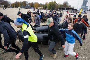 Z początkiem listopada – Międzynarodowego Miesiąca Walki z Męskim Rakiem, rozpoczęła się pełna atrakcji kulminacja 14. edycji kampanii „Odważni Wygrywają”, organizowanej przez Fundację „Gdyński Most Nadziei”. W ramach projektu na plaży Śródmieście wylądował w sobotę desant komandosów Formozy, by poprowadzić trening samoobrony i informować o profilaktyce raka jąder. „Odważni wygrywają” to całoroczny projekt edukacyjny skoncentrowany na profilaktyce raka jąder, zainspirowany historią młodego gdynianina Kuby, i realizowany przez Fundację Gdyński Most Nadziei. Jego kulminacja przypada na listopad – Międzynarodowy Miesiąc Walki z Męskim Rakiem.Agnieszka Krasnowska z Fundacji Gdyński Most Nadziei i komandos Formozy, który poprowadzi trening dla mieszkańców. Fot. Przemysław Kozłowski - To jest kulminacja 14. edycji, ponieważ działamy cały rok. Z tym że nasze całoroczne działania skupione są głównie na edukacji szkolnej. Jeździmy na prelekcje - to wszystko się dzieje w grupach czy szkolnych, czy firmowych, czy organizacyjnych. W listopadzie, na koniec roku jest podsumowanie i jak najwięcej wydarzeń, żeby tych mężczyzn ściągnąć do nas – opowiada Agnieszka Krasnowska z Fundacji Gdyński Most Nadziei. - Dzisiaj, oprócz oczywiście najważniejszego wydarzenia, czyli treningu z samymi komandosami, zapraszamy na herbatę, ciastka i rozmowę o profilaktyce - można się nauczyć samobadania. Jesteśmy otwarci na każde pytania, na każde rozmowy, na każdego chętnego, który jest zainteresowany męskim zdrowiem. Samoobrona przed rakiem, samoobrona przed atakiem Sobota, 4 listopada, godzina 10:00. Na plażę Śródmieście w Gdyni, w pomarańczowym świetle i dymie rac, wpływają dwa pontony, z których wyskakują na piach komandosi Jednostki Specjalnej Formoza w mundurach polowych i kominiarkach. Na brzegu czeka na nich około pięćdziesięcioro osób chętnych by sprawdzić się w wyczerpującym treningu wojskowym i poznać podstawy samoobrony w oparciu o izraelski system walki krav maga oraz samoobronę przed rakiem, czyli sposoby badania jąder. Są tu zarówno mężczyźni, jak i kobiety i dzieci, bo profilaktyka raka to nie tylko sprawa panów, ale i ich partnerek. A dzieci? Wiadomo, czym skorupka za młodu...Desant komandosów Formozy na plażę Śródmieście. Fot. Przemysław Kozłowski - Ruszać się! Ma być mi gorąco od samego patrzenia na was… Z życiem, ja bym w tym czasie już zdążył fajkę zapalić… Uwaga, ogień karabinów maszynowych! Uciekamy z plaży, szybciej!… Żołnierz walczy do końca! - pohukuje zachrypłym głosem prowadzący trening komandos, motywując do wysiłku i dania z siebie wszystkiego. Zebrani na plaży robią deski, pompki, brzuszki, skoki, przysiady, biegają, przypychają się, przenoszą w grupach ważące około 200 kg pontony. To podobne ćwiczenia, choć dostosowane do najsłabszych, jakie przechodzą na treningach komandosi. Po półgodzinnej rozgrzewce zaczyna się lekcja samoobrony. Zanim prowadzący zajęcia komandos pokaże chwyty, bloki i ciosy, tłumaczy, że przede wszystkim należy unikać zagrożenia, przechodząc np. w podejrzanej sytuacji na drugą stronę ulicy, a nie narażać się na kontakt z dziwnie zachowującym się osobnikiem. A gdy już do ataku dojdzie, to bronić się wszystkim, co jest pod ręką – koszem na śmieci, butelką, patykiem, wkładać palec w oko, walić pięścią w szczękę, kopać w krocze, choć w całym tym zamieszaniu chodzi przecież o ochronę jąder.Pompki na rękach leżącego partnera - jedno z ćwiczeń rozgrzewających przed lekcją samoobrony krav maga. Fot. Przemysław Kozłowski - Dzięki nam, jak pan sam powiedział - chłopakom z jajami, próbujemy przekonać tę męską część społeczeństwa, która może się jeszcze wstydzi, do tego aby się nie bać badania siebie w kierunku wykrycia ewentualnego raka jąder. Badanie jest bardzo proste, bardzo przyjemne, można również poprosić swoją partnerkę o to – tłumaczy udział komandosów w kampanii „Odważni wygrywają” kmdr ppor. Michał Synak, rzecznik prasowy Formoza. - Jednostka Wojskowa Formoza jest jednostką wojskową specjalną, więc my w sposób aktywny, najczęściej na świeżym powietrzu, lubimy przeprowadzać tego typu wydarzenia. Bardziej tu chodzi, żeby trochę wyjść z domu, poruszać się, a przy okazji wesprzeć i rozpropagować tę szczytną akcję, jaką jest profilaktyka raka jąder. Jak dodaje komandos, żołnierze przechodzą, podobnie jak każdy pracownik również w cywilu, okresowe badania lekarskie. Ale badania te nie obejmują badania jąder, dlatego tak ważna jest samodyscyplina i samoprofilaktyka.W krav maga wszystkie chwyty są dozwolone, byle by były skuteczną samoobroną. Fot. Przemysław Kozłowski - Według nas, komandosi, trenerzy i wszyscy ludzie związani mocno z aktywnością fizyczną, która oczywiście też jest rodzajem profilaktyki zdrowotnej, są pewnego rodzaju autorytetami. To są ludzie silni, odważni, czyli taka trochę kwintesencja męskości, która też sprawia i pomaga młodym mężczyznom zadbać o własne zdrowie - dodaje Agnieszka Krasnowska i zaprasza na kolejne listopadowe wydarzenia. 2-30 listopada – wystawa fotograficzna #badajjajka w ramach współpracy z fundacją Kochasz dopilnuj – w przestrzeni „Riviera Sztuki” Centrum Handlowego Riviera, 13 listopada, godz. 19.00 – trening rugby - ćwiczenia z czterokrotnym Mistrzem Polski – rugbistami z Rugby Club Arka Gdynia na Międzynarodowym Stadionie Rugby w Gdyni, ul. K. Górskiego, 19 listopada, godz. 11.00 – odważne morsowanie – rozpoczęcie sezonu morsowania z trenerem Adrianem Hoffmanem ,,Poziom Wyżej’’. Gdańsk Brzeźno, plaża, koniec ul. Hallera. Wystawa fotografii #badajjajka w CH Riviera. Fot. Przemysław KozłowskiProjekt „Odważni wygrywają” objęty jest Honorowym Patronatem Prezydenta Gdyni i finansowany 