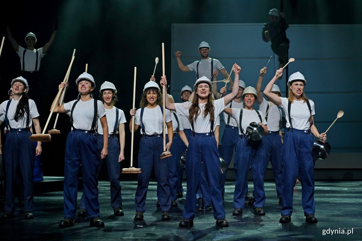 Widowisko opowiadające historię Gdyni – od zarania po czasy współczesne, a także musicalowe hity w Teatrze Muzycznym. Trwają ostatnie przygotowania do tradycyjnego koncertu sylwestrowego. Tym razem będzie on mocno skupiony na Gdyni. A ze względu na stulecie również dedykowany naszemu miastu. Artyści zabiorą widzów w barwną podróż pełną muzyki, tańca i dobrej zabawy – jak na sylwestra przystało. Koncert reżyseruje Bernard Szyc. Premierowe pokazy koncertu „Muzyczny swojemu miastu na 100-lecie” już w środę, 31 grudnia. Sylwestrowe koncerty w Teatrze Muzycznym są wyjątkowe i od lat przyciągają grono wiernych fanów. Tym razem widowisko będzie miało jeszcze bardziej szczególny charakter. Nosi tytuł „Muzyczny swojemu miastu na 100-lecie”. I z okazji zbliżającego się jubileuszu Gdyni artyści przygotowali koncert z naszym miastem w roli głównej. Prezentuje on historię i najważniejsze momenty – budowę portu, wojnę, riwierę, odbudowę portu, tawerny, Kaszubów, gości z dalekiego świata, a także transatlantyki i marynarskie rodziny. Nie mogliśmy nie odnieść się w takim czasie do tego, co dzieje się w Gdyni. Teatr Muzyczny jest mocno utożsamiany z tym miastem. Często w ogóle na nas się mówią „Gdynia”. Chcieliśmy opowiedzieć historię tego miasta i pokusiliśmy się o to w 16 obrazkach – od prehistorii do współczesności. To miejsce jest tak bogate, tak szerokie, tak kolorowe, tak różnorodne, że na pewno aktorka, która wciela się w Gdynię i chce z tym miastem utożsamiać, ma co do zagrania – mówi Bernard Szyc, reżyser koncertu. Wideo i montaż: Sławomir OkońTa część koncertu składa się ze specjalnie na tę okazję przygotowanych utworów. Teksty piosenek napisała Agnieszka Płoszajska, a muzykę i aranżacje stworzył Jan Stokłosa. Jest jeden cały fragment taneczno-wizualny, który trwa ponad sześć minut, jest o powstaniu Gdyni jako regionu w ogóle, o naturze, o wodzie. To taki element filmowy w muzyce. Są odniesienia do Kaszubów, do riwiery, do Maxima w Gdyni, bo bez tego nie mogło być tego programu. To jest pomieszanie autorskiej mojej muzyki z tekstami Agnieszki Płoszajskiej, która opowiada o różnych ważnych momentach, takich jak budowa portu, później odbudowa portu, wojna. Są fragmenty bardziej poważne, ale jest też trochę lekkich numerów i oczywiście kilka coverów. Na pewno intro było takim utworem, który chciałem, żeby był współczesny, żeby pokazywał Gdynię jako młode miasto, jako miasto, które się cały czas rozwija, które jest młodą i silną kobietą. Jest też fragment o prehistorii. To taka moja typowo orkiestrowa narracja. I jest też bardzo ciekawy utwór o marynarzowych, który był dość dużym wyzwaniem, ale również fragment o tym, co boli Gdynię, więc to nie jest tylko taka typowa laurka – opowiada Stokłosa. Druga część koncertu to powrót do musicalu. Publiczność wysłucha hitów ze spektakli, takich jak: „Mistrz i Małgorzata”, „Producenci”, „Quo vadis”, „Spamalot”, „Hairspray”, „Hamilton”, „Wicked”, „The Greatest Showman”, „Frozen” czy „Zakonnica w przebraniu”. Sylwestrowe wydarzenie wypełnimy znakomitym musicalowym repertuarem. Będą trzy pozycje z repertuaru bieżącego, trzy takie, które zeszły niedawno z afisza, ale cieszą się dalej sympatią, a także i kilka takich, które są gdzieś tam w sferze marzeń, ale takich możliwych do spełnienia – dodaje Szyc. Tradycyjnie nie zabraknie też widowiskowych popisów tanecznych i akrobatycznych oraz ciekawych kostiumów. Zatem dobra zabawa gwarantowana. Premiera koncertu „Muzyczny swojemu miastu na 100-lecie” odbędzie się we wtorek, 31 grudnia. Kolejne pokazy zaplanowano w nowym roku.Zdjęcie z próby koncertu sylwestrowego „Muzyczny swojemu miastu na 100-lecie”. Scena zbiorowa (fot. Magdalena Czernek)Koncert sylwestrowy „Muzyczny swojemu miastu na 100-lecie” Premiera: 31 grudnia, godz. 17.00 i 21.00 Duża Scena Teatru Muzycznego w Gdyni Scenariusz i reżyseria: Bernard SzycKierownictwo muzyczne: Dariusz RóżankiewiczAranżacje I części oraz muzyka utworów: Jan StokłosaTeksty piosenek I części: Agnieszka PłoszajskaTeksty zapowiedzi I części: Emil PłoszajskiScenografia i kostiumy I części: Natalia KitamikadoKostiumy II części i współpraca kostiumograficzna: Paweł MuranowskiPrzygotowanie wokalne: Agnieszka Szydłowska, Dominika KurdzielChoreografia: Sylwia Adamowicz, Michał Cyran, Janusz Józefowicz, Mateusz Pietrzak i Joanna SemeńczukChoreografia tańców akrobatycznych: Mira Kister-OkońProjekcje: Karolina JacewiczReżyseria światła: Artur WytrykusWspółpraca oświetleniowa: Michał KamińskiDźwięk: Mariusz Fortuniak, Maciej Chłopecki, Tomasz WarczakProdukcja: Mirosław Niebodajew, Krystyna Jaworowska Galeria zdjęć Pobierz galerię Zdjęcie z próby koncertu sylwestrowego „Muzyczny swojemu miastu na 100-lecie”. Scena zbiorowa (fot. Magdalena Czernek) Pobierz zdjęcie Zdjęcie z próby koncertu sylwestrowego „Muzyczny swojemu miastu na 100-lecie”. Scena zbiorowa (fot. Magdalena Czernek) Pobierz zdjęcie Zdjęcie z próby koncertu sylwestrowego „Muzyczny swojemu miastu na 100-lecie”. Scena zbiorowa (fot. Magdalena Czernek) Pobierz zdjęcie Zdjęcie z próby koncertu sylwestrowego „Muzyczny swojemu miastu na 100-lecie”. Scena zbiorowa (fot. Magdalena Czernek) Pobierz zdjęcie Zdjęcie z próby koncertu sylwestrowego „Muzyczny swojemu miastu na 100-lecie”. Scena zbiorowa (fot. Magdalena Czernek) Pobierz zdjęcie Zdjęcie z próby koncertu sylwestrowego „Muzyczny swojemu miastu na 100-lecie”. Scena zbiorowa (fot. Magdalena Czernek) Pobierz zdjęcie Zdjęcie z próby koncertu sylwestrowego „Muzyczny swojemu miastu na 100-lecie”. Scena zbiorowa (fot. Magdalena Czernek) Pobierz zdjęcie Warunki pobierania Wszelkie prawa do zdjęć lub grafik prezentowanych w ramach portalu, n