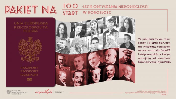 Eugeniusz Kwiatkowski, słynny budowniczy Gdyni, to jedna z postaci, które trafiły na tak zwane „pakiety jubileuszowe”. Podobizna byłego wicepremiera znajduje się na specjalnej kopercie, którą otrzymają 18-latkowie wraz ze swoim pierwszym paszportem. W drugiej połowie roku rozpocznie się też wydawanie nowych wzorów dokumentu, gdzie – głosami internautów – na jednej ze stron również pojawi się Kwiatkowski.Wszystko dzięki przypadającej na 2018 rok setnej rocznicy odzyskania niepodległości przez Polskę. Ministerstwo Spraw Wewnętrznych i Administracji z tej okazji przygotowało specjalny pakiet jubileuszowy dla tegorocznych 18-latków, którzy będą odbierać swój pierwszy w życiu paszport. Na kopercie z pakietem, wśród osób najbardziej zasłużonych dla kraju, widnieje podobizna Eugeniusza Kwiatkowskiego. Uznawany za twórcę miasta i portu Gdynia polityk i menedżer trafił na kopertę obok między innymi Józefa Piłsudskiego, Gabriela Narutowicza czy Ignacego Jana Paderewskiego. Pierwszy pakiet czeka na odbiorcę Pakiety z „gdyńskim” akcentem na kopercie czekają już w oddziałach i punktach, w tym także w Oddziale Paszportów Gdyni. Z placówki przy ulicy Legionów żaden 18-latek na razie nie odebrał swojego pakietu. W kopercie znajduje się polska flaga wraz z instrukcją poszanowania biało-czerwonych barw i śpiewania hymnu oraz znaczek z logotypem Niepodległej. Według szacunków resortu, w całym kraju paszporty z pakietami może odebrać w tym roku nawet 18 tysięcy osób. Kwiatkowski również w paszportach Bardziej czekamy mimo wszystko na nowe wzory polskich paszportów – tam Eugeniuszowi Kwiatkowskiemu poświęcona będzie jedna ze stron wizowych, wraz z krótkim opisem jego działalności na rzecz niepodległej Polski. Zadecydowali o tym w dużej mierze gdynianie. Pamięć historycznej postaci, bez której Gdynia nie rozwinęłaby się w tak imponującym tempie to zasługa dokładnie 72 516 osób, które w zeszłym roku głosowały internetowo na propozycje postaci i motywów. Przypomnijmy: po akcji, która zmobilizowała gdynian do głosowania na lokalnego bohatera udało się zebrać liczbę głosów niewiele odbiegającą od najlepszych wyników.Oto wszystkie motywy, które Ministerstwo Spraw Wewnętrznych i Administracji umieści w nowych paszportach z okazji 100-lecia odzyskania niepodległości: Bitwa Warszawska Antoś Petrykiewicz Godło II RP Grób Nieznanego Żołnierza Ignacy Paderewski Józef Piłsudski Odznaka Korpusu Ochrony Pogranicza Odznaka pamiątkowa Wojsk Wielkopolskich Order Virtuti Militari Powstania Śląskie Roman Dmowski Wincenty Witos Wojciech Korfanty Kopiec Czynu Niepodległościowego Mogiła Mogił Gabriel Narutowicz Orzełek Legionowy Inskrypcja „Matka i Serce Syna” Eugeniusz Kwiatkowski Obraz Jacka Malczewskiego „Polonia” Łącznie to 18 spośród wszystkich propozycji, jeszcze w zeszłym roku opublikowano też projekt graficzny stron nowego paszportu. Teraz trwają przygotowania do ich wprowadzenia. Nowe wzory najprawdopodobniej jesienią Jak podają pracownicy Oddziału Paszportów Pomorskiego Urzędu Wojewódzkiego w Gdańsku, wydawanie nowych dokumentów z podobizną budowniczego Gdyni powinno rozpocząć się nie wcześniej niż w połowie bieżącego roku, a najprawdopodobniej w listopadzie. Wcześniej MSWiA podkreślało, że sam wzór paszportów średnio zmienia się w Polsce co około 10 lat. Opublikowano: 25.01.2018 09:00 Autor: Kamil Złoch (kamil.zloch@gdynia.pl) Zmodyfikowano: 12.02.2018 09:13 Zmodyfikował: Kamil Złoch