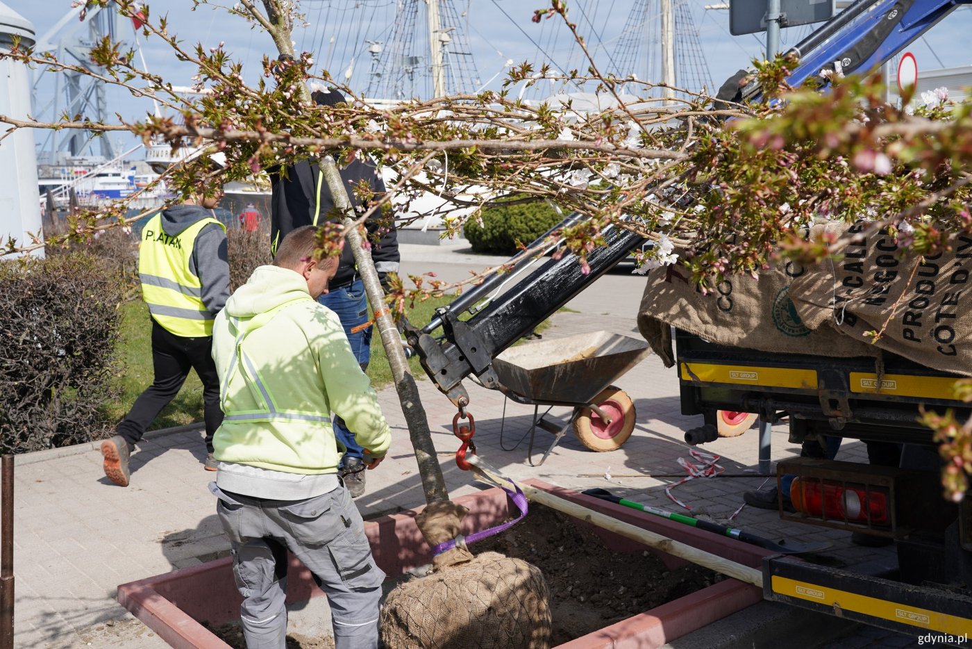 Trwają nasadzenia drzew przy Alei Jana Pawła II. Wzdłuż całej ulicy pojawi się 148 wiśni piłkowanych „Sunset Boulevard”. Już niedługo jedna z najbardziej popularnych części Śródmieścia będzie zachwycać przechodniów estetycznymi i pięknie kwitnącymi drzewami. Aleja Jana Pawła II to jedno z najbardziej charakterystycznych miejsc w Gdyni. Trwa tam właśnie przebudowa zieleni, która ma poprawić kondycję drzew i wygląd tej części miasta. Rosnące tu wcześniej głogi pośrednie były w bardzo złym stanie fitosanitarnym i trzeb abyło je usunąć. Niestety okazały się mało odporne na warunki atmosferyczne – rosły zbyt blisko morza, były narażone na silne wiatry i aerozol solny. Dlatego podjęto decyzję o kompleksowej przebudowie zieleni wzdłuż całej ulicy i zastąpieniu dotychczasowych drzew nowymi nasadzeniami. Wideo i montaż: Dominika Nycz Zamieniamy stare, chore głogi na wiśnie piłkowane. Wiśnie zakwitną już w tym roku, więc niedługo zobaczymy, jak pięknie będą wyglądać i jak całe to miejsce zyska nowy, ładniejszy wizerunek. Teraz trwa sadzenie drzew, a już niedługo zapraszam na spacer, żeby podziwiać, jak pięknie kwitną nasze nowe wiśnie – mówi Aleksandra Kosiorek, prezydent Gdyni. Aleja kwitnących wiśni Jak już informowaliśmy na stronie, wzdłuż ulicy pojawi się 148 nowych drzew. Będą to wiśnie piłkowane, odmiana „Sunset Boulevard”. To gatunek, który jest dobrze przystosowany do warunków miejskich i znacznie lepiej sobie radzi w środowisku nadmorskim. Dotychczas tutaj były głogi pośrednie, które regularnie zamierały. I po to, żeby zmienić tę przestrzeń jednym ruchem, postanowiliśmy nasadzić dokładnie 148 sztuk wiśni piłkowanej „Sunset Boulevard”. To wiśnia, która po pierwsze ma wytrzymać w tych warunkach, bo tutaj bardzo mocno wieje. Po drugie pięknie kwitnie – na wiosnę bladorożowymi, a w zasadzie białymi kwiatami. Przez cały rok jest ciemnozielona i na jesień przepięknie przebarwia się na kolor pomarańczowy, później przechodzi w purpurową czerwień – wyjaśnia Tadeusz Schenk, naczelnik Wydziału Ogrodnika Miasta Gdyni. Trwają nasadzenia drzew przy Alei Jana Pawła II (fot. Magda Śliżewska) Trwający projekt zakłada również poprawę warunków, w jakich będą rosły rośliny. Tam, gdzie będzie to konieczne, powiększone zostaną misy przy drzewach poprzez rozszczelnienie fragmentów chodnika. Istniejące obrzeża zostaną wymienione na takie, które nie będą ograniczać rozwoju systemu korzeniowego. Przestrzeń pomiędzy drzewami zostanie uzupełniona krzewami irgi błyszczącej, które uporządkują kompozycję zieleni i wprowadzą dodatkowy element dekoracyjny. Nasadzenia potrwają około dwóch tygodni. Natomiast kwitnące wiśnie z pewnością będziemy mogli podziwiać jeszcze w tym roku. Galeria zdjęć Pobierz galerię Wiśnie piłkowane już niedługo zakwitną przy Alei Jana Pawła II (fot. Magda Śliżewska) Pobierz zdjęcie Kwitnąca wiśnia piłkowana przy Alei Jana Pawła II (fot. Magda Śliżewska) Pobierz zdjęcie Trwają nasadzenia drzew przy Alei Jana Pawła II (fot. Magda Śliżewska) Pobierz zdjęcie Trwają nasadzenia drzew przy Alei Jana Pawła II (fot. Magda Śliżewska) Pobierz zdjęcie Trwają nasadzenia drzew przy Alei Jana Pawła II (fot. Magda Śliżewska) Pobierz zdjęcie Trwają nasadzenia drzew przy Alei Jana Pawła II (fot. Magda Śliżewska) Pobierz zdjęcie Trwają nasadzenia drzew przy Alei Jana Pawła II (fot. Magda Śliżewska) Pobierz zdjęcie Trwają nasadzenia drzew przy Alei Jana Pawła II (fot. Magda Śliżewska) Pobierz zdjęcie Warunki pobierania Wszelkie prawa do zdjęć lub grafik prezentowanych w ramach portalu, należą do Prowadzącego portal lub do podmiotów z nim współpracujących i podlegają ochronie prawnej. Prowadzący portal zezwala na kopiowanie i przedstawianie utworów jedynie w celach niekomercyjnych oraz pod warunkiem zachowania go w oryginalnej postaci i zachowaniem kontekstu tematu, do którego zostało wykorzystaneprzez redakcję gdynia.pl. Opublikowane materiały powinny zawsze zawierać źródło, czyli adres strony www.gdynia.pl. Na publikowanie utworów w innych celach wymagana jest zgoda właściciela strony czyli Prowadzącego portal. Kontakt Wydział Ogrodnika Miasta ogrodnik.miejski@gdynia.pl 58 527-32-00, 58 527-32-11 Opublikowano: 07.04.2026 16:00 Autor: Magdalena Śliżewska (magdalena.slizewska@gdynia.pl) Zmodyfikowano: 07.04.2026 16:00 Zmodyfikował: Małgorzata Omachel - Kwidzińska