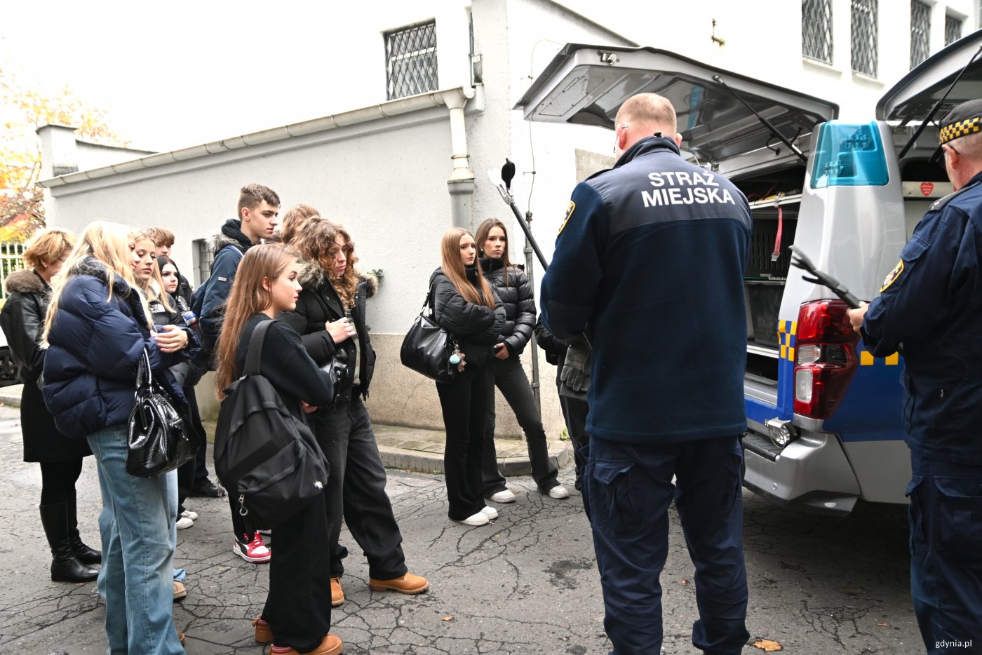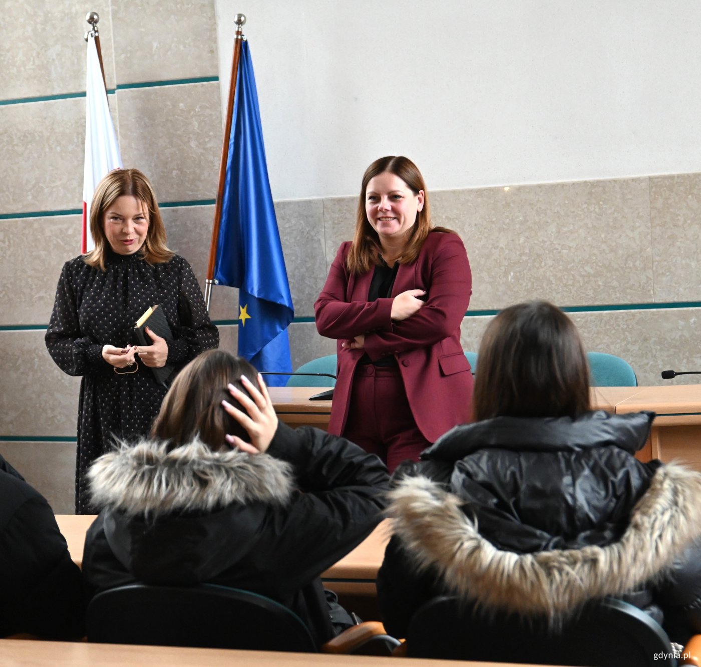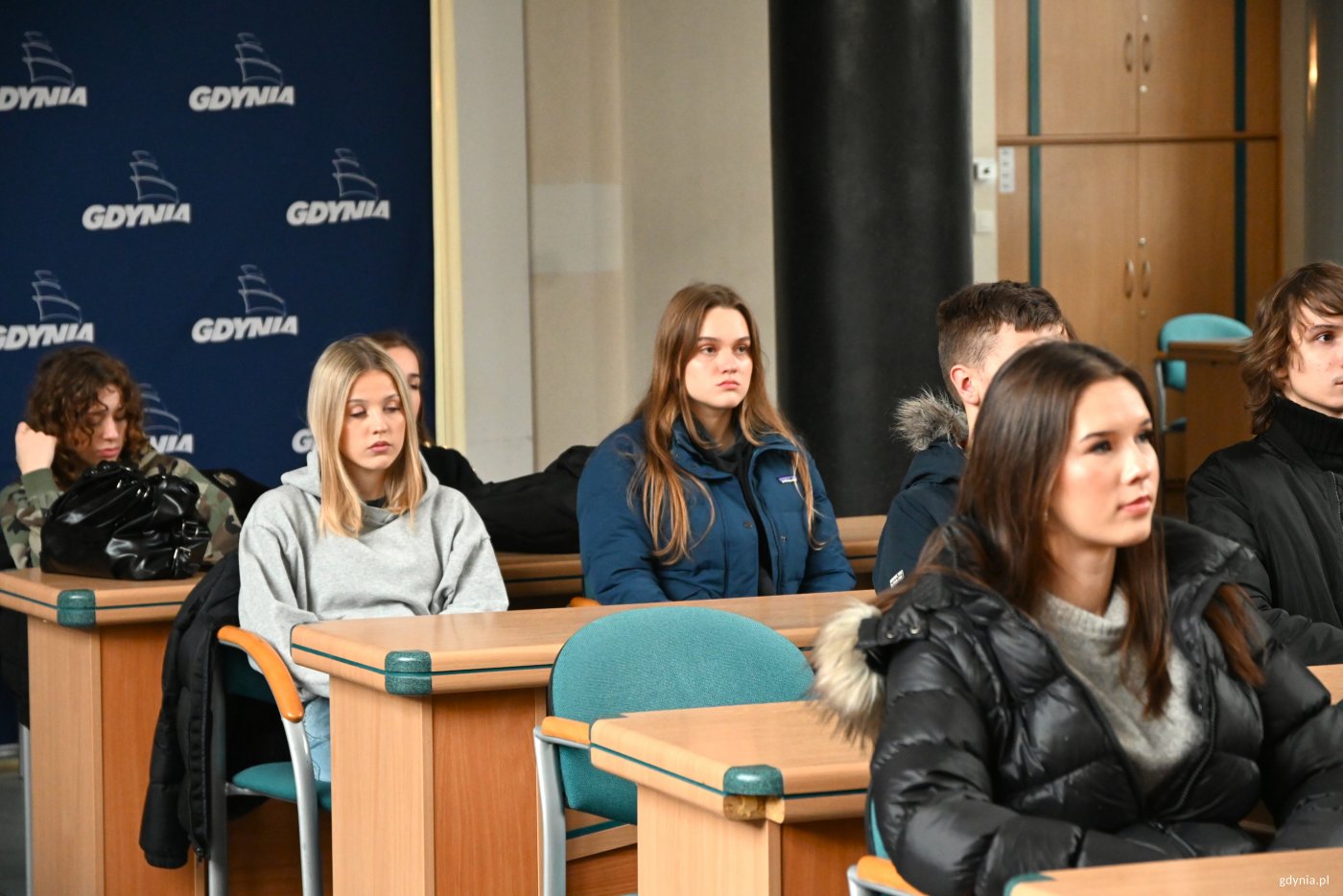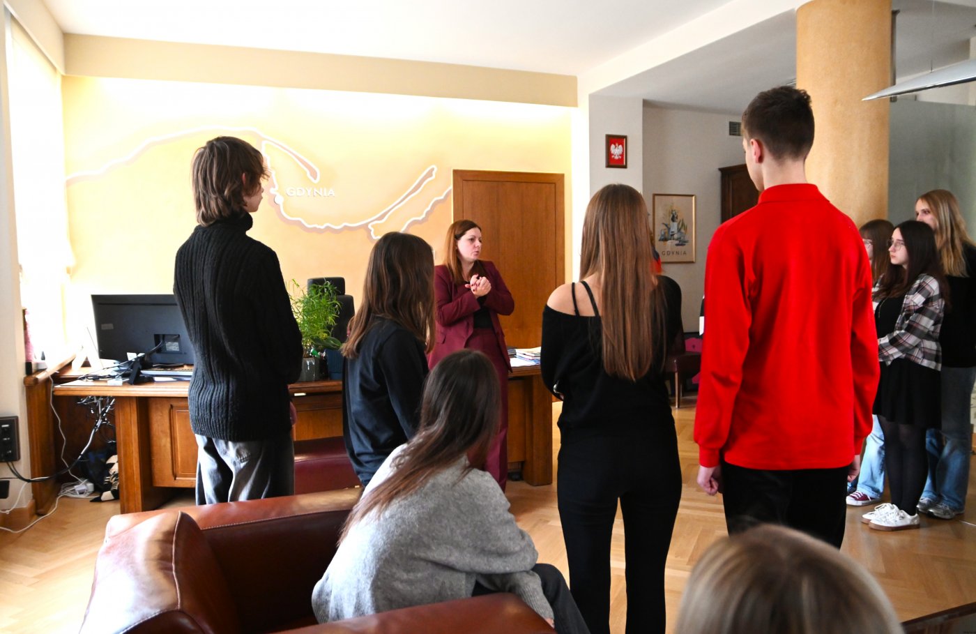 O strefie płatnego parkowania, o obchodach stulecia miasta i ofercie Gdyni dla młodzieży z Aleksandrą Kosiorek, prezydent miasta rozmawiali licealiści z VII Liceum Ogólnokształcącego w Gdyni. To kolejna wycieczka edukacyjna, podczas której młodzież poznaje funkcjonowanie gdyńskiego samorządu. Po najmłodszych ze szkół podstawowych, do gdyńskiego magistratu zawitali licealiści z gdyńskiej „siódemki". Uczennice i uczniowie trzeciej klasy o profilu wiedza o społeczeństwie byli bardzo zainteresowani kulisami działaniami samorządu.W sali posiedzeń Urzędu Miasta czekał na nich radny miasta Norbert Anisowicz. Młodzi goście dużo wiedzieli na temat teorii działania samorządu, ale dopytywali, jak praca Rady Miasta wygląda w praktyce, ile wynoszą diety radnych i czy mogą oni wykonywać pracę zawodową.Wkrótce do uczniów dołączyły Aleksandra Kosiorek, prezydent Gdyni, i Oktawia Gorzeńska, wiceprezydentka. W rozmowie młodzież poruszała poważne tematy: koszty parkowania, dziki w mieście, obchody stulecia miasta. Istotną dla nich sprawą była oferta Gdyni dla młodzieży i planowane działania w tym zakresie.Duże poruszenie wywołała wśród licealistów wizyta w gabinecie prezydent miasta, sercu magistratu. Licealiści podziwiali przedstawioną na obrazach historię Gdyni, rozmawiali z prezydent Aleksandrą Kosiorek o kulisach jej pracy i nieśmiało przymierzali się do prezydenckiego fotela. Potem jeszcze wizyta na najdłuższym balkonie w mieście, która sprowokowała rozmowę o nietypowych miejscach w Urzędzie Miasta, takich jak pasieka na dachu. Wizyta w Urzędzie Stanu Cywilnego zawsze budzi duże emocje wśród wycieczek szkolnych. Zwiedzanie sali ślubów, rozmowa o warunkach, jakie należy spełnić, aby zawrzeć związek małżeński, kulisy rejestrowania imion sprowokowały wiele pytań ze strony młodych gości.Ostatnim etapem wycieczki było spotkanie z Leonardem Wawrzyniakiem, który w imieniu EkoPartrolu opowiedział młodzieży, w jaki sposób Gdynia opiekuję się dzikimi zwierzętami. O Gdyni i historii prawie stuletniego budynku Urzędu Miasta młodzieży tradycyjnie już opowiadał pracownik biblioteki Urzędu Miasta Paweł Kurski. Galeria zdjęć Pobierz galerię Spotkanie z Norbertem Anisowiczem, radnym miasta (fot. Aneta Marczak) Pobierz zdjęcie Licealiści w sali obrad (fot. Aneta Marczak) Pobierz zdjęcie Spotkanie z Aleksandrą Kosiorek, prezydent i Oktawią Gorzeńską, wiceprezydentką (fot. Aneta Marczak) Pobierz zdjęcie Wizyta w gabinecie prezydent miasta (fot. Aneta Marczak) Pobierz zdjęcie Rozmowa w kuluarach z prezydent miasta (fot. Aneta Marczak) Pobierz zdjęcie Młodzież w sali ślubów (fot. Aneta Marczak) Pobierz zdjęcie Młodzież w sali ślubów (fot. Aneta Marczak) Pobierz zdjęcie Spotkanie ze strażą miejską (fot. Aneta Marczak) Pobierz zdjęcie Leonard Wawrzyniak opowiada o EkoPatrolu (fot. Aneta Marczak) Pobierz zdjęcie Warunki pobierania Wszelkie prawa do zdjęć lub grafik prezentowanych w ramach portalu, należą do Prowadzącego portal lub do podmiotów z nim współpracujących i podlegają ochronie prawnej. Prowadzący portal zezwala na kopiowanie i przedstawianie utworów jedynie w celach niekomercyjnych oraz pod warunkiem zachowania go w oryginalnej postaci i zachowaniem kontekstu tematu, do którego zostało wykorzystaneprzez redakcję gdynia.pl. Opublikowane materiały powinny zawsze zawierać źródło, czyli adres strony www.gdynia.pl. Na publikowanie utworów w innych celach wymagana jest zgoda właściciela strony czyli Prowadzącego portal. Opublikowano: 28.10.2025 09:41 Autor: Aneta Marczak (aneta.marczak@gdynia.pl) Zmodyfikowano: 28.10.2025 10:38 Zmodyfikował: Aleksandra Dylejko