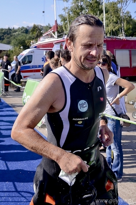 4.01:29 - tylko tyle czasu potrzebował Ukrainiec Viktor Zemtsev (były mistrz świata, dziesięciokrotny zwycięzca zawodów ironman) na przepłynięcie 1,9 km, przejechanie rowerem 90 km i przebiegnięcie 21,1 km. Najlepsza wśród kobiet okazała się olimpijka z Pekinu oraz Londynu - Maria Cześnik (4:22:34). W Herbalife Triathlon Gdynia wystartowało ponad 1300 uczestników z 14 państw. Zawody ukończyło wiele znanych osób, m.in. Iwona Guzowska (5:36:01), Maciej Stuhr (5:50:22), Borys Szyc (6:58:14), Robert Rozmus (5:13:52), Piotr Kraśko (6:09:04), Marcin Dorociński (5:58:29), Tomasz Karolak (7:09:27), Bartłomiej Topa (5:21:43), Maciej Dowbor (4:47:32), Waldemar Błaszczyk (4:51:48).Na dwa dni (10 - 11 sierpnia 2013 r.) Gdynia zamieniła się w arenę niesamowitych emocji, na której mierzyli się ze sobą prawdziwi współcześni gladiatorzy. Zawodnicy, którzy mieli do pokonania niewyobrażalne odległości - pływając, jadąc na rowerze i biegając.Ich zmagania poprzedził równie pasjonujący sportowy spektakl - Aquathlon 2013, który odbył się w sobotę 10 sierpnia. Kilkuset uczestników - w tym wielu najmłodszych - pokonało dystans kilometra w morzu oraz pięciu kilometrów na lądzie. Zadanie było trudne - tym bardziej, że pogoda raczej nie dopisywała.Inaczej było dzień później - zza chmur wyszło bowiem piękne słońce, które utrzymywało się niemal do końca imprezy. Już od samego rana Herbalife Triathlon Gdynia dostarczał wielu emocji. - Widok prawie półtora tysiąca zawodników wbiegających w jednym momencie do Bałtyku to jest naprawdę coś! - mówił pan Michał, jeden z kibiców.Po dwóch kilometrach w burzliwych morskich wodach zawodnicy wbiegli do strefy zmian, gdzie przesiadali się na rowery. Na tym etapie najlepsze czasy delikatnie przekraczały dwadzieścia minut! Jednak prawdziwą szybkość była jeszcze przed widzami. Lśniące rowery szosowe wiodących zawodników poruszały się z prędkością nawet sześćdziesięciu kilometrów na godzinę!Następny etap - dwudziestokilometrowy bieg ulicami miasta. Po dwóch kilometrach w morzu i dziewięćdziesięciu na rowerze! Ten fragment Triathlonu był niewątpliwie najbardziej atrakcyjny dla kibiców, którzy mogli z bardzo bliskiej odległości kibicować zawodnikom. Później wielu triathlonistów podkreślało po biegu, że wsparcie zgromadzonych na trasie widzów niezwykle pomagało i pozwalało przezwyciężyć potworne zmęczenie.Na mecie jako pierwszy stanął Viktor Zemstev z Ukrainy. Tuż po nim jego rodak - Anton Blokhin. Na trzecim miejscu uplasował się Polak - Mikołaj Luft. Na 333. pozycji (5:30.02) zawody ukończył niedowidzący Marcin Suwart, któremu na trasie towarzyszył Jarosław Skiba. Podczas startu w triathlonie płynęli związani liną, jechali na rowerowym tandemie i biegli połączeni liną.Herbalife Triathlon Gdynia 2013 w liczbach1300 uczestników990 osób ukończyło zawody5000 dolarów otrzymali zwycięzca i zwyciężczyni4:01'29'' - czas triumfatora imprezy74 lata miał najstarszy uczestnik, który ukończył zawody500 wolontariuszy pomagało podczas imprezy dla zawodników przygotowano:6750 litrów wody6000 litrów napojów izotonicznych800 kg pomarańczy510 kg bananów13000 km taśm zużyto do zabezpieczenia imprezy fot. Maciej Czarniak Opublikowano: 12.08.2013 00:00 Autor: Dorota Nelke (11@gdynia.pl)