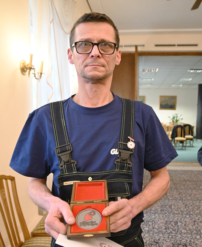 Andrzej Blok, Jacek Ostapkowicz, Mariusz Latecki, Ingeborga Tkaczenko, Dorota Nelke, Dagmara Syjczak, Arkadiusz Sołodziński, Kazimierz Schwarz, Iwona Kondracka, Rafał Tiszer – to Honorowi Krwiodawcy Krwi, nagrodzeni medalami z okazji 65-lecia Polskiego Czerwonego Krzyża. Kameralna uroczystość odbyła się w czwartek, 21 grudnia, w Sali Ślubów USC w Gdyni. Uhonorowano pracowników Urzędu Miasta Gdyni, którzy od lat oddają krew. Odznaczenia i listy gratulacyjne z okazji 65-lecia Polskiego Czerwonego Krzyża wręczali Iwona Kondracka, prezeska Klubu Honorowych Krwiodawców przy Urzędzie Miasta Gdynia oraz Andrzej Blok, członek zarządu i przewodniczący Rady Okręgowej Honorowych Dawców Krwi w Gdańsku, członek Rady Krajowej w Warszawie. Oboje również zostali uhonorowani za swojej zasługi na rzecz dzielenia się darem życia. Michał Guć, wiceprezydent Gdyni ds. innowacji, gratuluje odznaczenia i medalu pracownikowi UM Gdynia, Kazimierzowi Schwarzowi. Fot. Zygmunt Gołąb - Bardzo mnie cieszy, że w gronie pracowników Urzędu Miasta Gdyni mamy kilka osób, które realizują zaszczytną ideę krwiodawstwa. Wspaniałe jest to, że ludzie oddają krew, dzielą się tym niezwykle cennym darem. Spotkaliśmy się dziś wspólnie, ciesząc się z przyznanych odznaczeń – powiedział nam Michał Guć, wiceprezydent Gdyni ds. innowacji, Zasłużony Honorowy Dawca Krwi II stopnia, również odznaczony przez PCK za zasługi dla krzewienia idei krwiodawstwa. - Choć jestem przekonany, że nie potrzebujemy zachęty do dalszego działania w tym zakresie, takie docenienie nas jest bardzo miłe – podkreślił Michał Guć. Michał Guć, wiceprezydent Gdyni ds. innowacji, Andrzej Blok z Pomorskiej Okręgowej Rady Honorowych Dawców Krwi PCK i Iwona Kondracka, prezeska Klubu Honorowych Krwiodawców przy Urzędzie Miasta Gdynia. Fot. Zygmunt Gołąb Jak mówi Iwona Kondracka, prezeska Klubu Honorowych Krwiodawców przy Urzędzie Miasta Gdynia (ponad 71 litrów oddanej krwi), przyznane przez PCK wyróżnienia to nie tylko forma podziękowania za dzielenie się darem życia, ale i motywacja do tego, by krzewić szlachetną ideę krwiodawstwa dalej. - Krew jest bezcenna, nie da się jej wyprodukować, dzielenie się własną krwią jest ratowaniem ludzkiego życia. Donacja nie boli, a pozwoli uratować zdrowie czy życie nawet kilku osób, zatem zachęcam do tego – zaznacza Iwona Kondracka. - Nie tylko jesteśmy wdzięczni, ale zawsze będziemy wdzięczni za to dzielenie się darem życia. Działalność pani prezes, zarządu i pracowników Urzędu Miasta Gdynia na płaszczyźnie krwiodawstwa jest bezcenna – dodał Andrzej Blok z Pomorskiej Okręgowej Rady Honorowych Dawców Krwi PCK. Nagrodą Polskiego Czerwonego Krzyża po oddaniu 18 litrów krwi i odznakę Honorowego Krwiodawcy I stopnia otrzymał pracownik Urzędu Miasta Gdyni, Kazimierz Schwarz. Fot. Zygmunt Gołąb Kazimierz Schwarz z nagrodą I stopnia Nagrodą Polskiego Czerwonego Krzyża po oddaniu 18 litrów krwi i odznakę Honorowego Krwiodawcy I stopnia otrzymał pracownik Urzędu Miasta Gdyni, Kazimierz Schwarz. - Czym dla mnie jest oddawanie krwi? Robię to dla innych, żeby byli zdrowsi, kieruję się odruchem serca i empatią – powiedział nam Kazimierz Schwarz. - Wiele osób musi przejść zabiegi operacyjne, a chirurdzy ich nie wykonają, nie mając krwi. Dlatego tak ważne jest regularne jej oddawanie i do tego wszystkich sam zachęcam. Znam wiele osób, które chciałyby oddać krew, pomóc innym, lecz nie mogą. Bardzo się cieszę, że moja córka poszła w moje ślady i jest już po pierwszej donacji. Ja, jeśli tylko zdrowie pozwoli, będę nadal oddawał krew, dzieląc się tym, co mam najcenniejsze – podkreślił Kazimierz Schwarz. Opublikowano: 21.12.2023 14:21 Autor: Zygmunt Gołąb (z.golab@gdynia.pl) Zmodyfikowano: 21.12.2023 14:45 Zmodyfikował: Agnieszka Janowicz