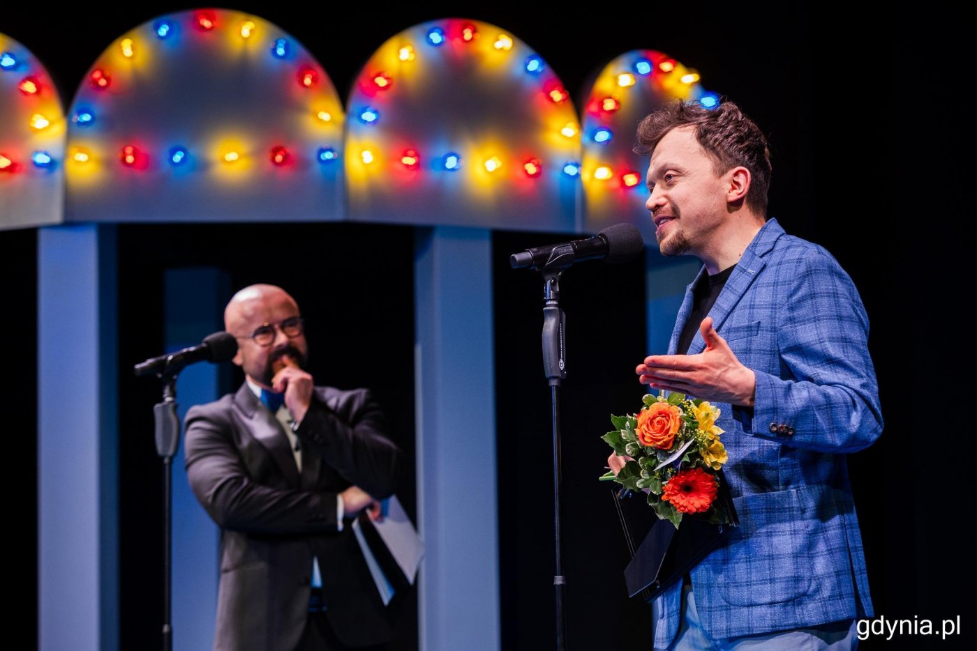 To wspólne święto – aktorów, twórców, pracowników oraz widzów. 27 marca obchodzimy Międzynarodowy Dzień Teatru. Miejsca, które od zawsze wypełniają emocje i niezwykłe spotkania ze sztuką. Dlatego też w dniu swojego święta najlepsi gdyńscy twórcy zostali uhonorowani Nagrodą Prezydent Miasta Gdyni. Uroczysta gala odbyła się w piątek w Teatrze Miejskim. Międzynarodowy Dzień Teatru przypada 27 marca. Święto zostało ustanowione w 1961 roku z inicjatywy Międzynarodowego Instytutu Teatralnego w celu upamiętnienia inauguracji Teatru Narodów – festiwalu, podczas którego spotkały się zespoły z obu stron żelaznej kurtyny. Wydarzenie to odbyło się 27 marca 1957 roku w Paryżu.Co roku ważny twórca teatralny przygotowuje w tym dniu specjalne orędzie. Tym razem ogólnopolskie przesłanie napisał Marcin Wierzchowski, reżyser teatralny i wykładowca akademicki, natomiast światowe – amerykański aktor i twórca teatralny Willem Dafoe.Z okazji swojego święta wyróżniający się artyści i pracownicy gdyńskich teatrów odebrali Nagrodę Prezydent Miasta Gdyni. Uroczysta gala odbyła się w piątek, 27 marca w Teatrze Miejskim im. Witolda Gombrowicza. Wśród nagrodzonych znaleźli się przedstawiciele: Teatru Miejskiego im. Witolda Gombrowicza, Teatru Muzycznego im. Danuty Baduszkowej, Teatru Gdynia Główna, Bałtyckiego Teatru Różnorodności, Teatru Komedii Valldal oraz Teatru Czwarte Miasto.Laureatkom i laureatom nagrody wręczył Mariusz Bzdęga, dyrektor zarządzający ds. kultury i aktywności mieszkańców. Wideo i montaż: Dominika Nycz Wspólnie świętujemy Międzynarodowy Dzień Teatru. Wspaniały dzień, dzięki któremu możemy podsumować zeszły rok i nagrodzić wszystkich ludzi teatru. Rozpoczynając od Teatru Muzycznego, który oczywiście ma rangę ogólnopolską, aż po Teatr Miejski i teatry społeczne: Bałtycki Teatr Różnorodności, Teatr Gdynia Główna, Teatr Czwarte Miasto i Teatr Komedii Valldal. Mamy też dobre wiadomości dla środowiska artystycznego, widzów i mieszkańców. Po czterech latach przerwy wraca Festiwal R@Port, więc konsekwentnie wzmacniamy tę ważną sztukę sceniczną w naszym mieście – mówi Mariusz Bzdęga, dyrektor zarządzający ds. kultury i aktywności mieszkańców.Teatr jest o spotkaniu i o wspólnocie. Mam nadzieję, że jesteśmy ostatnią przestrzenią, gdzie masowo chowamy te straszne, absorbujące naszą uwagę ekrany. I czasem przez godzinę, czasem przez dwie, trzy jesteśmy sami ze sobą. I z tymi ludźmi, którzy na scenie robią wszystko, żebyście państwo, widzowie coś przeżyli – dodaje Marta Miłoszewska, dyrektorka Teatru Miejskiego w Gdyni. Tegoroczne laureatki i laureaci W tym roku Nagrodę Prezydent Miasta Gdyni odebrali: Ewa Gawron (Teatr Miejski im. Witolda Gombrowicza) – za pełną profesjonalizmu, wieloletnią pracę suflerki, wykonywaną z najwyższą odpowiedzialnością i dyskrecją, pozostającą poza światłem reflektorów, a jednocześnie niezbędną dla zachowania wysokiego poziomu artystycznego Teatru Miejskiego w Gdyni; Monika Müller (Teatr Miejski im. Witolda Gombrowicza) – za wieloletnie doświadczenie w pracy rzemieślniczej oraz wyjątkowe zaangażowanie w codzienne funkcjonowanie teatru, którego efekty – choć niewidoczne dla widza – w istotny sposób współtworzą jego artystyczny poziom; Krzysztof Dąbek (Teatr Miejski im. Witolda Gombrowicza) – za wieloletnie doświadczenie, rzetelność i odpowiedzialność w codziennej pracy oraz za podkreślanie znaczenia zawodu rekwizytora jako nieodzownego elementu funkcjonowania teatru repertuarowego; Pamela Munz (Teatr Muzyczny im. Danuty Baduszkowej) – za wybitny wkład artystyczny w realizację spektakli Teatru Muzycznego w Gdyni, doskonały warsztat muzyczny, wrażliwość interpretacyjną oraz twórczą współpracę z zespołem artystycznym, w istotny sposób wpływające na wysoki poziom artystyczny instytucji; Izabela Pawletko (Teatr Muzyczny im. Danuty Baduszkowej) – za wybitne osiągnięcia aktorskie, wszechstronność, sceniczny magnetyzm i dojrzałość artystyczną oraz tworzenie ról o wysokich walorach artystycznych, mających znaczący wpływ na jakość repertuaru i prestiż Teatru Muzycznego w Gdyni; Agnieszka Zalas (Teatr Muzyczny im. Danuty Baduszkowej) – za wybitne osiągnięcia taneczne, znakomitą technikę, sceniczną precyzję i wrażliwość ruchową, które w istotny sposób wzbogacają warstwę choreograficzną spektakli oraz poziom artystyczny Teatru Muzycznego w Gdyni; Piotr Rogalski (Teatr Gdynia Główna) – za wybitną kreację aktorską w spektaklu „Kto zabił Koniztville”, w której – wcielając się w wiele ról – potwierdził dojrzałość artystyczną oraz imponującą wszechstronność warsztatową na scenie Teatru Gdynia Główna; Agata Braun (Bałtycki Teatr Różnorodności) – za wieloletnie zaangażowanie w działalność i rozwój Bałtyckiego Teatru Różnorodności oraz współtworzenie jego organizacyjnych i artystycznych fundamentów. Za odpowiedzialność, dyspozycyjność i wysoki poziom profesjonalizmu, które w istotny sposób wspierają ciągłość pracy zespołu; Marcin Rumiński (Teatr Komedii Valldal) – za stworzenie muzyki do spektaklu „OMG! O mitach greckich” oraz za wybitny kunszt kompozytorski i twórczego ducha, dzięki którym teatr w pełni rozbrzmiewa; Dariusz Majchrzak (Teatr Czwarte Miasto) – za konsekwentne budowanie i utrzymanie niezależnej alternatywy artystycznej na mapie Gdyni oraz umiejętne łączenie profesjonalnego warsztatu aktorskiego i reżyserskiego z odważnym i skutecznym modelem zarządzania kulturą. Na zdjęciu: Izabela Pawletko, aktorka Teatru Muzycznego w Gdyni i tegoroczna laureatka Nagrody Prezydent Miasta Gdyni oraz Mariusz Bzdęga, dyrektor zarządzający ds. kultury i aktywności mieszkańców (fot. Karol Stańczak) Ta nagroda jest przede wszystkim ogromnym wyróżnieniem. Nie spod