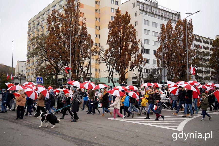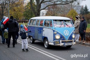 Gdyńskie Urodziny Niepodległej to czas solidarności i budowania poczucia wspólnoty. Tradycją stała się radosna parada, w której jak co roku udział wzięli przedstawiciele władzy lokalnej, samorządowcy i mieszkańcy. Prezydent Aleksandra Kosiorek wraz z członkami rady miasta złożyli kwiaty przed pomnikami: marszałka Józefa Piłsudskiego oraz Polski Morskiej. Uroczyste obchody upamiętniające odzyskanie przez Polskę niepodległości rozpoczęły się mszą świętą w kościele NMP Królowej Polski. Następnie prezydent Aleksandra Kosiorek wraz z kolegium, a także wicewojewoda Emil Rojek, przewodniczący rady miasta Tadeusz Szemiot, samorządowcy i radni złożyli wieńce przed pomnikiem marszałka Józefa Piłsudskiego. To jest tradycja, którą musimy pielęgnować, bo ten jeden dzień w roku przypomina o wielkim zwycięstwie, ale przypomina również o tym, że niepodległość nie jest dana raz na zawsze – przyznaje Aleksandra Kosiorek, prezydent Gdyni. – Zwłaszcza dzisiaj musimy pamiętać o tym, jak krucha potrafi być niepodległość. Powinniśmy mieć świadomość, że za naszymi granicami dzieją się niepokojące rzeczy i chociaż ten lęk nie powinien nam na co dzień towarzyszyć, to jednak powinniśmy mieć świadomość, że być może przyjdzie nam również walczyć za naszą ojczyznę. W samo południe, sprzed urzędu miasta wyruszyła radosna parada, której przewodziła orkiestra Marynarki Wojennej RP. W pochodzie wzięli udział m.in.: Barbara Nowacka, ministra edukacji, Aleksandra Kosiorek, prezydent Gdyni wraz z kolegium, Tadeusz Szemiot, przewodniczący rady miasta oraz parlamentarzyści, samorządowcy i radni. Oczywiście nie zabrakło również mieszkańców i miłośników miasta, którzy tłumnie uczestniczyli w paradzie, wspólnie świętując urodziny Niepodległej.Uczestnicy parady (fot. Mirosław Pieślak)Parada niepodległości w Gdyni jest wyjątkowa, biorą w niej udział nie tylko lokalni działacze, ale przede wszystkim mieszkańcy i miłośnicy miasta. Jak zawsze w paradzie szli również uczniowie gdyńskich szkół wraz z nauczycielami. Niektórzy specjalnie przyjechali do Gdyni, aby wziąć udział w miejskiej paradzie. Jestem mieszkanką Malborka. Przyjechałam do Gdyni i połączyłam sprawy osobiste, z chęcią wzięcia udziału w Gdyńskich Urodzinach Niepodległej – przyznała Izabela, uczestniczka parady. – Myślę, że to jest taka szczególna chwila. Nie każdy może pojechać do Warszawy, ale warto korzystać z tych lokalnych uroczystości. Myślę, że Gdynia jest takim szczególnym miejscem, bo odzyskanie niepodległości ma wielkie znaczenie dla powstania tego miasta. To miejsce jest naprawdę wyjątkowe w skali kraju. Wspólne świętowanie 106. rocznicy odzyskania przez Polskę niepodległości to idealna okazja do przekazania dzieciom najważniejszych wartości, jakimi są wolność, tolerancja i troska o wspólne dobro. Zdecydowaliśmy się wziąć udział w paradzie przede wszystkim ze względu na dzieci, bo one już są na tyle duże, że rozumieją, jak ważne jest to święto – przyznała Paulina, uczestniczka parady. – Hela przyszykowała swoją flagę. Świętujemy i uczymy dzieci, że niepodległość jest bardzo ważna. Chcemy pokazać, że cieszymy się z tego, że żyjemy w wolnym kraju. Moc atrakcji z okazji 106. urodzin Niepodległej Zabytkowe samochody (fot. Mirosław Pieślak)Gdyńskie Urodziny Niepodległej to nie tylko uroczyste obchody i parada, to także szereg atrakcji, z których mieszkańcy mogą korzystać od kilku dni. Od samego rana tradycyjnie biegaliśmy na krótkim dystansie i na dystansie 10 km. Następnie barwna parada przeszła ulicą Świętojańską, zakończyła się apelem i złożeniem wieńców na skwerze Kościuszki przed pomnikiem Polski Morskiej. Teraz można obejrzeć zabytkowe samochody, które są zaparkowane w centrum Gdyni. Możemy zwiedzić i skorzystać z oferty muzeów. Atrakcji jest wiele i każdy znajdzie coś dla siebie. Można też spędzić ten dzień z bliskimi, przy rodzinnym stole w ciepłej atmosferze – dodała Aleksandra Kosiorek, prezydent Gdyni. Miejskie instytucje kultury przygotowały szereg atrakcji z okazji rocznicy odzyskania przez Polskę niepodległości. W Muzeum Miasta Gdyni i Muzeum Emigracji można było obejrzeć wystawy stałe. Można było podziwiać zabytkowe samochody, które specjalnie z okazji 11 listopada przyjechały do Gdyni. Do świata polskiej kinematografii zapraszało Gdyńskie Centrum Filmowe, gdzie w promocyjnej cenie można było zobaczyć wiele klasycznych, polskich filmów. Pojawiły się również wydarzenia skierowane do pasjonatów muzyki, Szkoła Muzyczna I i II st. Im. Zygmunta Noskowskiego w Gdyni zorganizowała wyjątkowy koncert „Muzyczna dla Niepodległej 2024”, natomiast w kościele św. Antoniego Padewskiego odbył się koncert niepodległościowy Chóru Symfonia. Galeria zdjęć Pobierz galerię Złożenie kwiatów przed pomnikiem marszałka Józefa Piłsudskiego. Na zdjęciu (od lewej): Tadeusz Szemiot, przewodniczący rady miasta, Aleksandra Kosiorek, prezydent Gdyni oraz Oktawia Gorzeńska, wiceprezydentka Gdyni (fot. Mirosław Pieślak) Pobierz zdjęcie Pomnik marszałka Józefa Piłsudskiego (fot. Mirosław Pieślak) Pobierz zdjęcie Uczestniczki parady (fot. Mirosław Pieślak) Pobierz zdjęcie Zabytkowe samochody wzięły udział w paradzie (fot. Mirosław Pieślak) Pobierz zdjęcie Cheerleaderki podczas parady (fot. Mirosław Pieślak) Pobierz zdjęcie Niektórzy uczestnicy parady przebrali się w stroje charakterystyczne dla XX wieku (fot. Mirosław Pieślak) Pobierz zdjęcie Członkowie Związku Piłsudczyków RP Towarzystwa Pamięci Józefa Piłsudskiego (fot. Mirosław Pieślak) Pobierz zdjęcie Uczestnicy parady przygotowali specjalne makiety 3D prezentujące charakterystyczne budynki w Gdyni (fot. Mirosław Pieślak) Pobierz zdjęcie Na zdjęciu (od lewej): Emil Rojek, wicewojewoda,