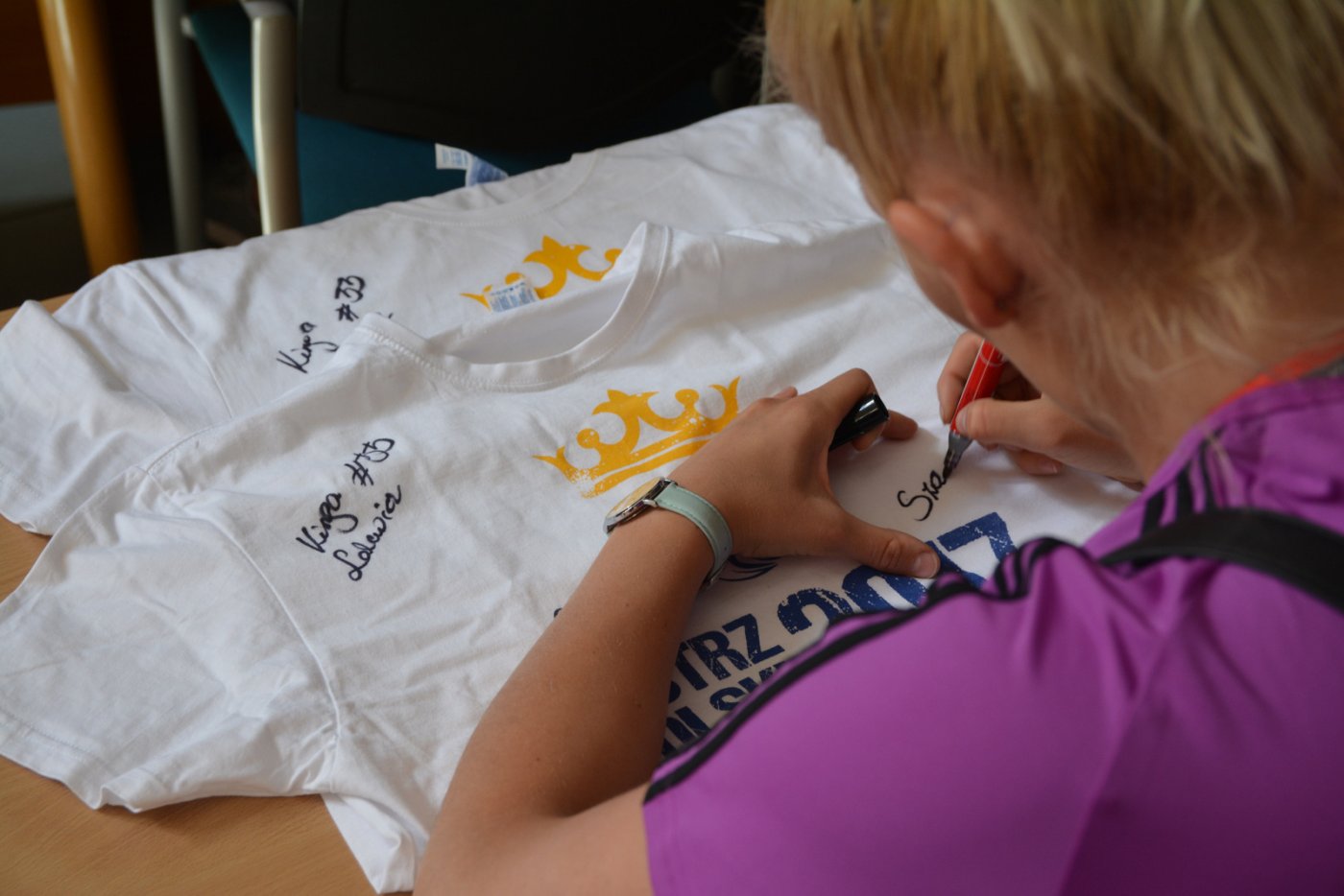 Prezydent Gdyni Wojciech Szczurek spotkał się z zawodniczkami Vistalu Gdynia. Podczas kameralnej uroczystości, która 22 maja odbyła się w gdyńskim magistracie, świeżo upieczone mistrzynie Polski odebrały listy gratulacyjne. W rewanżu prezydent otrzymał pamiątkowy medal oraz „mistrzowską” koszulkę z autografami całej drużyny. Szczypiornistki Vistalu złote medale zapewniły sobie w meczu z Metraco Zagłębiem Lubin. Żółto-niebieskie pokonały zespół z Dolnego Śląska 24:22. To drugi tytuł mistrzowski w historii gdyńskiego klubu. - Powtórzenie sukcesu z 2012 roku to imponujące osiągnięcie. Dziękuję za piękne emocje, których nam dostarczyłyście. Przez cały sezon prezentowałyście znakomitą formę, czego konsekwencją były radosne chwile po meczu z Zagłębiem – powiedział prezydent Wojciech Szczurek. Indywidualnie wyróżnieni zostali Monika Kobylińska i Paweł Tetelewski. Poza listami gratulacyjnymi, które trafiły w ręce zawodniczek, sztabu szkoleniowego oraz prezesa i dyrektora sportowego klubu, otrzymali oni pamiątkowe medale „Przyjaciel Gdyńskiego Sportu”. Skuteczna rozgrywająca oraz utytułowany trener rozstają się z Vistalem. Od przyszłego sezonu Monika Kobylińska reprezentować będzie barwy niemieckiego TuS Metzingern, natomiast Paweł Tetelewski wraca w rodzinne strony. Szkoleniowiec z Kielc prowadził Vistal przez trzy sezony – w tym czasie zdobył z gdyniankami złoty, srebrny i brązowy medal mistrzostw Polski, a także dwukrotnie wywalczył Puchar Polski. Vistal stale utrzymuje się w ścisłej krajowej czołówce. Od 2010 roku gdyński klub tylko raz znalazł się poza podium Superligi. W sezonie 2017/2018 żółto-niebieskie czeka nie tylko walka o obronę mistrzowskiego tytułu, ale również gra w Lidze Mistrzyń – najbardziej prestiżowych europejskich rozgrywkach. Galeria zdjęć Pobierz galerię Vistalki u Prezydenta // fot.gdyniasport.pl Pobierz zdjęcie Vistalki u Prezydenta // fot.gdyniasport.pl Pobierz zdjęcie Vistalki u Prezydenta // fot.gdyniasport.pl Pobierz zdjęcie Vistalki u Prezydenta // fot.gdyniasport.pl Pobierz zdjęcie Vistalki u Prezydenta // fot.gdyniasport.pl Pobierz zdjęcie Vistalki u Prezydenta // fot.gdyniasport.pl Pobierz zdjęcie Vistalki u Prezydenta // fot.gdyniasport.pl Pobierz zdjęcie Vistalki u Prezydenta // fot.gdyniasport.pl Pobierz zdjęcie Vistalki u Prezydenta // fot.gdyniasport.pl Pobierz zdjęcie Vistalki u Prezydenta // fot.gdyniasport.pl Pobierz zdjęcie Warunki pobierania Wszelkie prawa do zdjęć lub grafik prezentowanych w ramach portalu, należą do Prowadzącego portal lub do podmiotów z nim współpracujących i podlegają ochronie prawnej. Prowadzący portal zezwala na kopiowanie i przedstawianie utworów jedynie w celach niekomercyjnych oraz pod warunkiem zachowania go w oryginalnej postaci i zachowaniem kontekstu tematu, do którego zostało wykorzystaneprzez redakcję gdynia.pl. Opublikowane materiały powinny zawsze zawierać źródło, czyli adres strony www.gdynia.pl. Na publikowanie utworów w innych celach wymagana jest zgoda właściciela strony czyli Prowadzącego portal. Opublikowano: 23.05.2017 08:46 Autor: Marta Jaszczerska-Zawadzka (m.jaszczerska@gdynia.pl) Zmodyfikowano: 23.05.2017 08:54 Zmodyfikował: Marta Jaszczerska