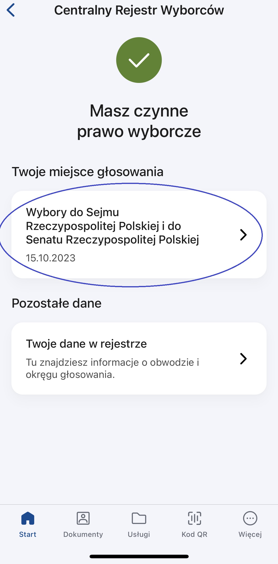 Od teraz dzięki aplikacji mObywatel szybko i w prosty sposób sprawdzisz swoje uprawnienia i miejsce głosowania w nadchodzących wyborach parlamentarnych. Wystarczy ją zaktualizować do wersji 4.17. To niezbędne, by móc skorzystać z nowej funkcjonalności. W telefonie wejdź do Google Play (dla posiadaczy smartfonów z systemem Android) lub App Store (system iOS), w wyszukiwarce wpisz "mObywatel" (nie klikaj w opcję "mObywatel 2.0") i ją zaktualizuj. W niektórych przypadkach wymagane najpierw będzie kliknięcie w ikonę aplikacji, by dopiero potem pojawiła się możliwość jej aktualizacji. WAŻNE: Aktualizacji należy dokonać ręcznie! Po zalogowaniu się, kliknij w ikonę "Wybory”, a następnie "Dalej".Na tym etapie dowiesz się, czy posiadasz czynne prawo wyborcze. Wybierając następnie "Wybory do Sejmu Rzeczypospolitej Polskiej i do Senatu Rzeczypospolitej Polskiej", zobaczysz swoje obecnie przypisane miejsce, w którym będziesz mógł oddać głos 15 października. Jest ono zgodne z adresem stałego zameldowania.Chcąc je zmienić, wystarczy kliknąć "Przejdź do usługi online" w komunikacie na dole danych adresowych obecnej obwodowej komisji wyborczej, do której jesteśmy przypisani. Wówczas w ciągu kilku chwil zmienisz miejsce do głosowania, wpisując adres, pod którym będziesz przebywać w dniu wyborów. Więcej informacji na temat sposobów głosowania znajdziesz TUTAJ. Opublikowano: 29.09.2023 14:29 Autor: Dawid Kowalski (d.kowalski@gdynia.pl) Zmodyfikowano: 29.09.2023 16:37 Zmodyfikował: Redakcja portalu Gdynia.pl