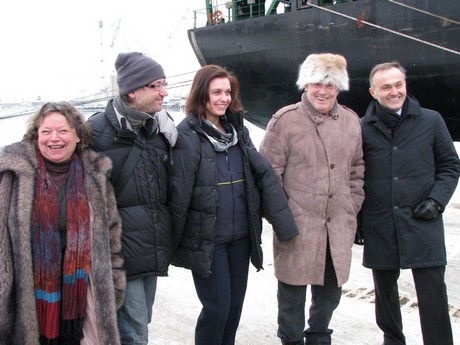 W Gdyni trwają zdjęcia do polsko-niemieckiego filmu familijnego pt. „Zimowy ojciec". Zdjęcia są realizowane m.in. na terenie Dalmoru - statek „Żerań", stoczni remontowej „Nauta", Bałtyckiego Terminalu Kontenerowego BCT, a także w okolicach Rewy. Realizatorów filmu odwiedził w poniedziałek 15 lutego 2010 r. Prezydent Gdyni Wojciech Szczurek. „Zimowy ojciec" to historia 11-letniej dziewczynki o imieniu Kattaka, która decyduje się na wyruszenie w bardzo ekscytującą podróż z Berlina do Polski, w poszukiwaniu własnego ojca. Towarzyszy jej starsza opiekunka, 75-letnia Lene - Niemka z Prus Wschodnich. Miłość do zmarłego ojczyma kłóci się pragnieniem poznania biologicznego ojca, rosyjskiego marynarza, którego statek zacumował w porcie gdańskim. Lene podróżuje szukając śladów swojej przeszłości, którą do tej pory starała się wyrzucić z pamięci. Podczas wojny musiała uciekać z Mazur i straciła rodziców. To historia o przyjaźni między różnymi pokoleniami i narodami. Zdjęcia do filmu rozpoczęły się 19 stycznia 2010 r. w Jenie (Niemcy), a zakończą 3 marca. Od lutego 2010 r. film jest kręcony w Polsce: w Szczecinie, Gdańsku i Gdyni. Duża część zdjęć realizowana jest na terenie Gdyni i w najbliższych okolicach, gdyż twórców filmu urzekła modernistyczna architektura miasta oraz niepowtarzalny portowy klimat, idealnie pasujący do odpowiadanej w filmie historii. Mieszańcy Gdyni będą mogli zobaczyć w filmie m.in. Estakadę Kwiatkowskiego i panoramę Oksywia, Skwer Kościuszki z panoramą miasta w tle oraz kilka znanych gdyńskich ulic. Filmowcy nie ominęli także plaży w Rewie, gdzie zrealizowali zdjęcia zatoki. Reżyserem filmu jest Johannes Schmid, autorem zdjęć - Michael Bertl, a scenografię stworzyli: Dorothee von Bodelschwingh i Katarzyna Filimoniuk. W filmie występują m.in.: Nina Monka, Ursula Werner, Leon Seidel, Merab Ninidze, Katharina Marie Schubert, Maxim Mehmed. Na ekranie zobaczymy także polskich aktorów, m.in. Daniela Olbrychskiego, Julię Kamińską i aktora Teatru Miejskiego w Gdyni - Dariusza Siastacza. Premiera planowana jest na grudzień 2010 roku. Miasto Gdynia wspomaga finansowo budżet filmu z Gdyńskiego Funduszu Filmowego (360 tys. zł). Na ostatnim zdjęciu - od lewej: aktorka Ursula Werner, reżyser Johannes Schmid, aktorka Julia Kamińska, aktor Daniel Olbrychski i prezydent Wojciech Szczurek na planie filmowym w Bałtyckim Terminalu Kontenerowym BCT; fot.: Sylwia Szumielewicz. Pozostałe zdjęcia udostępnił producent filmu. Opublikowano: 15.02.2010 00:00 Autor: Dorota Nelke (11@gdynia.pl)