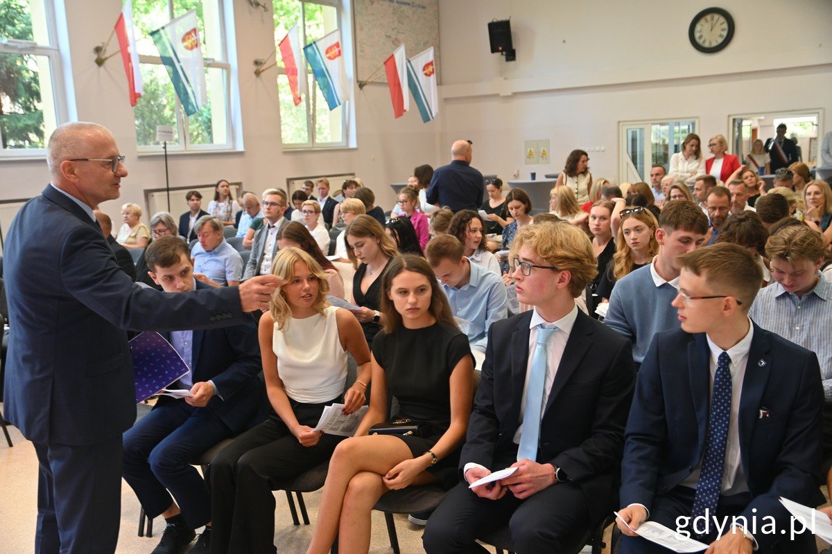 Gości i absolwentów przywitał dyrektor szkoły Wiesław Kosakowski. Na uroczystości pojawili się także m.in.: wicewojewoda pomorski Emil Rojek, Agnieszka Baranowska z zarządu województwa pomorskiego, naczelniczka gdyńskiego Wydziału Edukacji Iwona Tanewska oraz przedstawiciele pomorskiej oświaty. Zdolni absolwenci odebrali z rąk prezydent Aleksandry Kosiorek listy gratulacyjne oraz spersonalizowane pióra, na których wygrawerowano ich imiona i nazwiska. Nie obyło się bez oprawy muzycznej. Zadbali o to uczniowe Trójki, którzy wykonali kilka znanych szlagierów w języku angielskim.