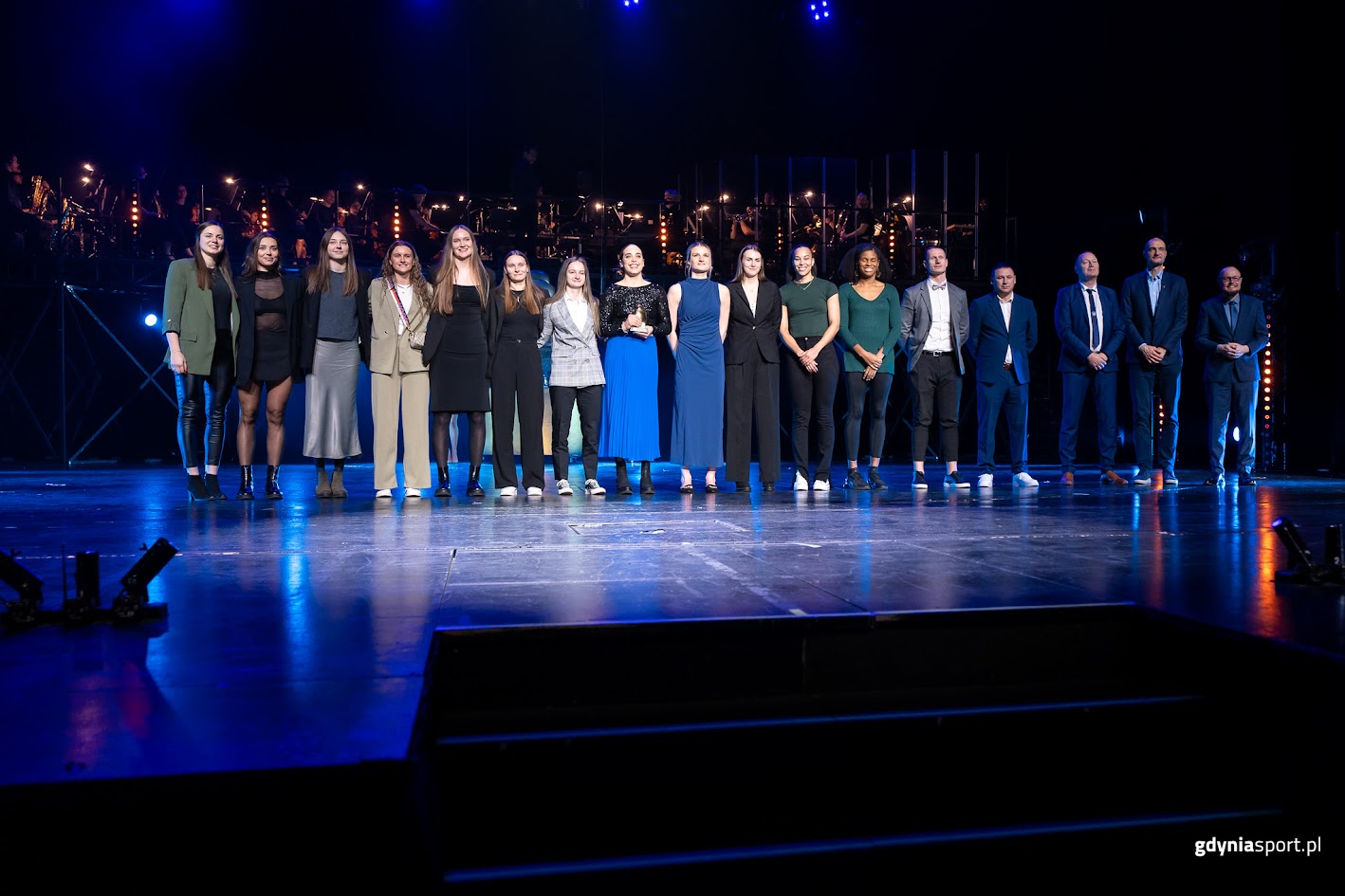 XXVI Gala Gdyńskiego Sportu za nami. Statuetki dla najlepszych sportowców powędrowały do Alicji Tutkowskiej i Przemysława Zamojskiego. Trenerem Roku została Anna Talarczyk, a Zespołem Roku – VBW Gdynia. Już po raz 26. statuetki nazywane przez wielu „złotymi żaglami” trafiły w ręce najwybitniejszych reprezentantów Gdyni minionego roku. Uroczysta gala po ubiegłorocznym powrocie znów zagościła w Teatrze Muzycznym im. Danuty Baduszkowej. To tu, przy akompaniamencie orkiestry pod dyrekcją Dariusza Różankiewicza, uraczeni talentem wybitnych aktorów i muzyków, mogliśmy poznać najlepszych z najlepszych gdyńskiego sportu. Sportowiec Roku 2024: Żeglarstwo i 3x3 Koszykówka i żeglarstwo – te dwie dyscypliny są niemal stałymi elementami repertuaru Gali Gdyńskiego Sportu. W minionym roku po triumf sięgnęły gdyńskie koszykarki i reprezentantki Polski – Julia Bazan i Bożena Puter, a statuetkę sportowca otrzymał żeglarz Mateusz Gwóźdź. Tym razem role odwróciły się, a po najwyższe laury sięgnęli… żeglarka i koszykarz.Alicja Tutkowska (Yacht Klub Polski Gdynia) wśród jej licznych osiągnięć w roku 2024 znalazły się między innymi złoty medal Młodzieżowych Mistrzostw Świata World Sailing Youth oraz złoty medal Mistrzostw Europy 29er European Championship 2024. Dodatkowo na arenie krajowej zdobyła ona tytuł Mistrzyni Polski podczas Mistrzostw Polski Juniorów 2024.Na zdjęciu Alicja Tutkowska Sportowiec Roku 2024 // fot. Dawid LinkowskiJej sukces jest tym większy, że rok temu tym samym miejscu odbierała nagrodę jako Nadzieja Gdyńskiego Sportu. To najlepiej pokazuje, co w zawodowym sporcie znaczy 12 miesięcy ciężkiej i systematycznej pracy. Przemysław Zamojski to bez wątpienia zawodnik utytułowany – 10-krotny Mistrz Polski w koszykówce, trzykrotny zdobywca Pucharu Polski, wielokrotny reprezentant Polski w koszykówce 5x5. Od kilku lat poświęcił się 3x3 i reprezentował nasz kraj podczas igrzysk olimpijskich w Japonii oraz zeszłorocznej edycji rozgrywanej we Francji. Teraz do jego kolekcji dołączy również gdyńska statuetka. Na zdjęciu Przemysław Zamojski Sportowiec Roku 2024 // fot. Dawid Linkowski Wspólnie z Reprezentacją Polski Przemysław Zamojski zdobył w minionym roku szóste miejsce podczas XXXIII Letnich Igrzyskach Olimpijskich w Paryżu 2024. Popularny „Zamoj” był liderem ekipy w składzie: Filip Matczak, Adrian Bogucki oraz Michał Sokołowski, która przykuła do telewizorów i rozbudziła medalowe ambicje w wielu milionach Polaków. Trener Roku 2024: Wygrać wszystkoTytuł Trenera Roku 2024 powędrował do Anny Talarczyk, szkoleniowca Gdyńskiego Towarzystwa Koszykówki, która poprowadziła drużynę VBW GTK Gdynia do wyjątkowego sezonu pełnego sukcesów. Na zdjęciu od lewej: Anna Talarczyk, szkoleniowiec Gdyńskiego Towarzystwa Koszykówki i Bartłomiej Austen wiceprezydent Gdyni // fot. Dawid LinkowskiPod jej wodzą zespół sięgnął po trzy najwyższe trofea: Młodzieżowy Puchar Polski U19, Mistrzostwo Polski U19 oraz Mistrzostwo Polski 1 Ligi Kobiet. Te osiągnięcia są dowodem na doskonałe przygotowanie, strategiczne myślenie i ogromne zaangażowanie, które Anna Talarczyk wnosi do swojej pracy trenerskiej. Drużyna Roku 2024: Gdynia to jest potęga Słynne zdanie, wykrzykiwane przez wieloletniego prezesa klubu, „Gdynia to jest potęga” można było usłyszeć po finałowym spotkaniu o trzecie w Orlen Basket Lidze Kobiet w sezonie 2023/24 koszykarek VBW Gdynia. Drużyna roku VBW Gdynia // fot. Dawid LinkowskiZespół, którego medale trudno wręcz policzyć udanie reprezentował nasze miasto również w II rundzie pucharowej FIBA EuroCup. Sportowa Impreza Roku 2024: Mistrzostwa Europy U20 Mężczyzn w koszykówce EuroBasket U20 mężczyzn to najważniejszy młodzieżowy turniej koszykarski w Europie, organizowany nieprzerwanie od 1992 roku. Debiut Gdyni w roli gospodarza okazał się wyjątkowo udany – 56 emocjonujących spotkań, znakomite recenzje od zawodników, federacji i ekspertów, wielkie sportowe emocje oraz perfekcyjna organizacja. Ukoronowaniem wydarzenia była świetna postawa naszej reprezentacji, która zajęła ósme miejsce, osiągając najlepszy wynik w historii Polski w tej kategorii wiekowej i budząc nadzieję na świetlaną przyszłość polskiej koszykówki. Wydarzenie to po raz kolejny potwierdziło wyjątkowe zdolności organizacyjne Gdyni, która udowodniła, że potrafi sprostać wyzwaniom największych imprez sportowych na światowym poziomie. Nadzieje Gdyńskiego Sportu 2024: Przyszłość należy do nich Pływanie, boks, judo, koszykówka i żeglarstwo – to dyscypliny, w których wyróżnili się młodzi sportowcy nominowani do nagrody „Nadzieje Gdyńskiego Sportu”. W gronie laureatów znaleźli się reprezentanci Polski, medaliści mistrzostw krajowych i międzynarodowych, a także rekordziści, którzy już teraz imponują osiągnięciami i talentem.Na zdjęciu od lewej: Olga Wietek, Jan Zamojski, Alicja Tutkowska, Julia Nagórska // fot. Dawid LinkowskiBłażej Dworakowski (pływanie) – Klub Sportowy Delfin Gdynia – reprezentant Polski juniorów w najważniejszych zawodach pływackich w 2024 roku. Zdobył srebrny medal na 100 metrów w stylu motylkowym oraz brązowy medal na 200 m stylem motylkowym podczas Mistrzostw Polski Juniorów 17-18 lat. Zajął szóste miejsce w sztafecie 4x100 metrów w stylu zmiennym, osiągając rekord Polski juniorów 17-letnich, podczas Mistrzostw Europy Juniorów. Został rekordzistą województwa pomorskiego juniorów 17- i 18-letnich na dystansach 100 i 200 m stylem motylkowym.Oleksandr Kopach (boks)– Klubu Sportowy Sako - zdobywca złotego medalu i tytułu Mistrza Polski w wadze 71 kg na XXXI Mistrzostwach Polski Juniorów w boksie olimpijskim.Dominika Kuźma-Ebel (judo) – Uczniowski Klub Sportowy Galeon Gdynia – w 2024 roku wywalczyła liczne tytuły na arenie krajowej i międzynarodowej, ta
