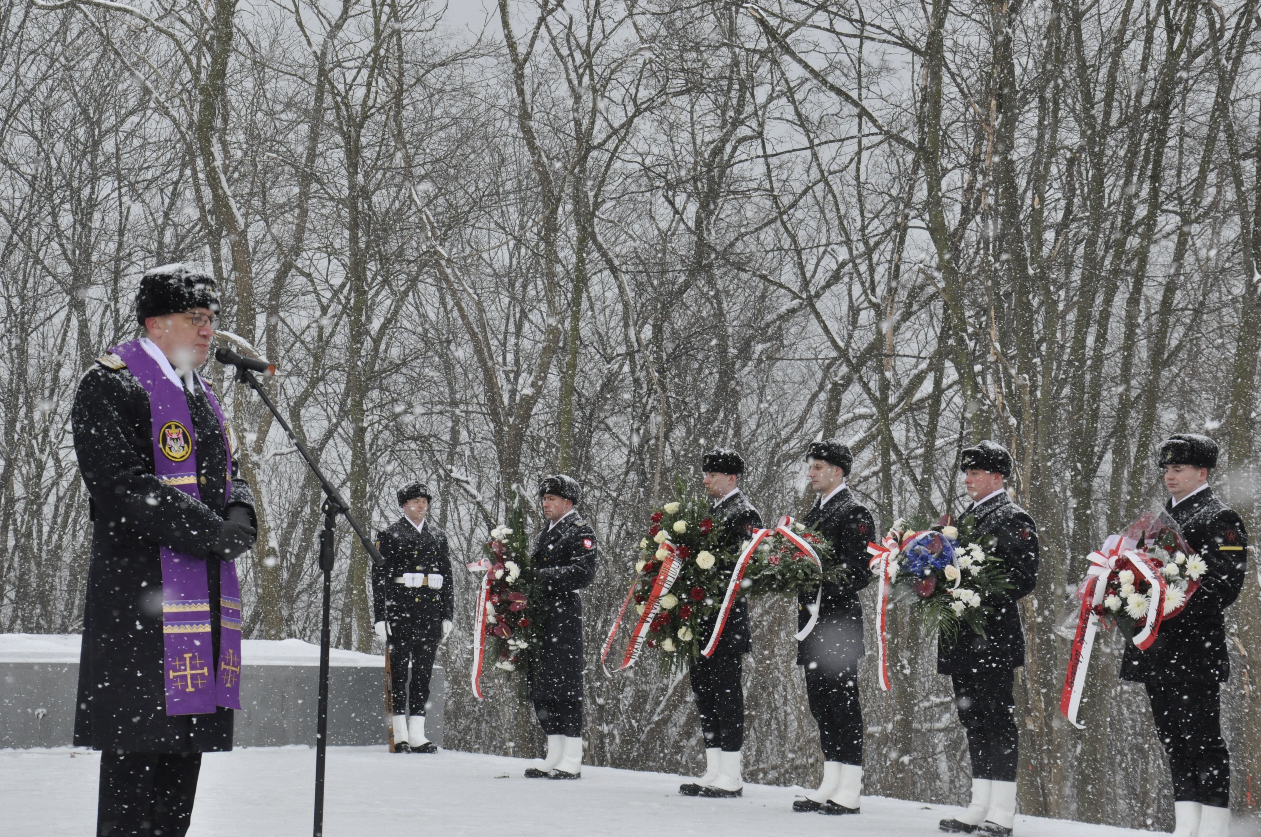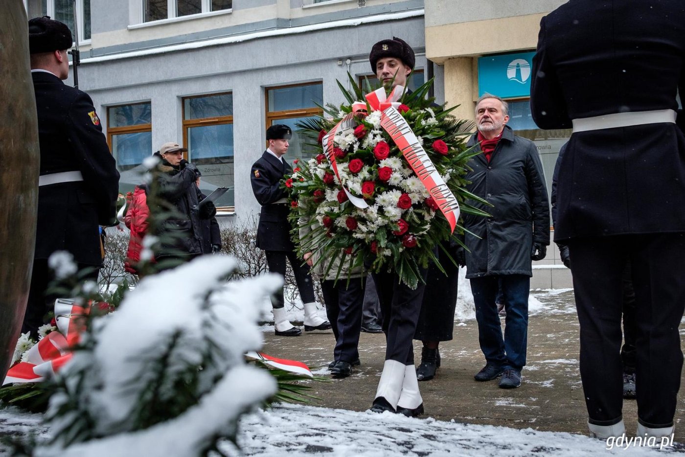 „Jeśli zapomnę o Nich, Ty Boże na Niebie, Zapomnij o mnie!” inskrypcję z Pomnika Ofiar Terroru Komunistycznego przywołał prezydent Gdyni Wojciech Szczurek podczas uroczystości upamiętniających Narodowy Dzień Pamięci Żołnierzy Wyklętych. Bohaterów podziemia antykomunistycznego gdynianie uczcili dziś w kilku miejscach. Kwiaty od młodzieży pod tablicą Antoniego Hedy - Dla mnie Żołnierze Wykleci byli bohaterami. Poświęcili swoje życie za to, aby Polska była wolna, oddali najcenniejszą rzecz nie tylko dla ojczyzny, ale przecież również dla nas. Dla mnie, dla Pani, dla nas tu wszystkich – mówił Mikołaj Kruszniewski, uczeń Gimnazjum nr 12 w Gdyni.Gdynia Narodowy Dzień Żołnierzy wyklętych rozpoczęła w Gdyni Chyloni pod tablicą Antoniego Hedy ps. Szary, oficera Armii Krajowej, dowódcy oddziału partyzanckiego, aresztowanego w 1948 roku przez UB w okolicach dworca PKP. Kwiaty w imieniu władz miasta złożyła Joanna Zielińska oraz Marcin Wołek.- Myślę, że to jest bardzo ważne, że spotykamy się właśnie tu, w tym miejscu. Gen. Antoni Heda to postać, która jest wyraźnie pozytywna. W ogóle Gdynia ma szczęście do bohaterów, o których można by młodzieży dużo opowiadać — mówiła podczas uroczystości Joanna Zielińska, Przewodnicząca Rady Miasta.Wiązanki złożyli również uczniowie szkół podstawowych oraz gimnazjaliści wraz ze swoimi opiekunami.- Patriotyzm dzisiaj różnie się objawia, trzeba tłumaczyć dzieciom, że patriotyzm to nie tylko bieganie z karabinem i walka za ojczyznę, ale że to również dobra nauka i pamięć o takich bohaterach jak gen. Heda – mówi Aleksander Kuźmin, dyrektor SP nr 31 w Gdyni. Wspólna modlitwa w Kwaterze Pamięci Obchody Narodowego Dnia Pamięci Żołnierzy Wyklętych Gdynia uczciła w kilku miejscach. Na Cmentarzu Marynarki Wojennej odmówiono modlitwę w Kwaterze Pamięci, gdzie w grudniu ub. r. pochowano kontradmirałów Stanisława Mieszkowskiego i Jerzego Staniewicza oraz komandora Zbigniewa Przybyszewskiego, ofiary zbrodni komunistycznej.- Spotykamy się przy grobach zamordowanych 65 lat temu oficerów Marynarki Wojennej, żeby wspomnieć tych wszystkich, którzy służyli pod biało-czerwoną banderą i tylko dlatego, że nie pasowali do koncepcji wizji komunistycznych, byli więzieni, poddawani represjom, a niektórzy zamordowani. Ich wszystkich pragniemy polecić modlitwie Bogu - mówił podczas uroczystości ks. kmdr Zbigniew Rećko. Kwiaty pod Pomnikiem Ofiar Terroru - Dziś, gdy patrzymy na karty historii w kraju wolnym i niepodległym, naszym obowiązkiem jest przypominać o tych, którzy walczyli, którzy dali ofiarę krwi, a czasem nawet życia, byśmy się tą wolną Polską mogli się dzisiaj cieszyć. Przywracamy dziś pamięć żołnierzy, którzy przez dziesiątki lat byli skrzętnie wymazywani z pamięci i kart historii. A na te karty historii i pamięć zawsze bezwzględnie zasługiwali - mówił pod pomnikiem Ofiar Terroru Komunistycznego prezydent Gdyni Wojciech Szczurek. Główna część uroczystości odbyła się przy Pomniku Ofiar Terroru Komunistycznego. Bohaterów podziemia antykomunistycznego wspominał m.in. Roman Dambek – prezes Kaszubsko-Kociewskiego Stowarzyszenia im. TOW „Gryf Pomorski”, bratanek por. Józefa Dambka.- Armia Czerwona wkroczyła tutaj w lutym i marcu 1945, niektórzy konspiratorzy ujawnili się przed wkraczającymi na Pomorze oddziałami, innych wyłapywali funkcjonariusze NKWD. Na Pomorzu działało wówczas nie mniej niż 50 organizacji niepodległościowych, wiosną 1945 nie zaprzestały działalności, jednak Narodowe Siły Zbrojne liczące na Kociewiu ok. 100 osób zostały rozbite wiosną 1946 roku – wspominał Roman Dambek. „Bandyci reakcyjnego podziemia” Żołnierze Wyklęci byli żołnierzami polskiego powojennego podziemia niepodległościowego i antykomunistycznego. Stawiali opór sowietyzacji Polski i podporządkowaniu jej ZSRR. Polska Ludowa wymierzyła w nich ogromną propagandę, nazywała ich „wrogami ludu” czy też „bandami reakcyjnego podziemia”. W walkach z władzą zginęło ok. 9 tys. wyklętych, kolejnych kilka tysięcy zamordowano na podstawie wyroków komunistycznych sądów lub zmarło w więzieniach.Liczbę członków wszystkich organizacji i grup konspiracyjnych szacuje się na 120-180 tysięcy. Była to najliczniejsza antykomunistyczna konspiracja zbrojna w skali europejskiej. Galeria zdjęć Pobierz galerię Fot. Dawid Linkowski Pobierz zdjęcie Fot. Arleta Bolda-Górna Pobierz zdjęcie Fot. Arleta Bolda-Górna Pobierz zdjęcie Fot. Arleta Bolda-Górna Pobierz zdjęcie Kwiaty od młodzieży pod tablicą Antoniego Hedy. Fot. Arleta Bolda-Górna Pobierz zdjęcie Fot. Arleta Bolda-Górna Pobierz zdjęcie W imieniu władz miasta kwiaty w Kwaterze Pamięci złozyli radni: Jarosław Kłodziński i Elżbieta Sierżęga. Fot. Arleta Bolda-Górna Pobierz zdjęcie Fot. Dawid Linkowski Pobierz zdjęcie Fot. Dawid Linkowski Pobierz zdjęcie Fot. Dawid Linkowski Pobierz zdjęcie Fot. Dawid Linkowski Pobierz zdjęcie Fot. Dawid Linkowski Pobierz zdjęcie Fot. Dawid Linkowski Pobierz zdjęcie Fot. Dawid Linkowski Pobierz zdjęcie Fot. Dawid Linkowski Pobierz zdjęcie Fot. Dawid Linkowski Pobierz zdjęcie Fot. Dawid Linkowski Pobierz zdjęcie Fot. Dawid Linkowski Pobierz zdjęcie Fot. Dawid Linkowski Pobierz zdjęcie Fot. Dawid Linkowski Pobierz zdjęcie Fot. Dawid Linkowski Pobierz zdjęcie Fot. Dawid Linkowski Pobierz zdjęcie Fot. Dawid Linkowski Pobierz zdjęcie Fot. Dawid Linkowski Pobierz zdjęcie Fot. Dawid Linkowski Pobierz zdjęcie Fot. Dawid Linkowski Pobierz zdjęcie Fot. Dawid Linkowski Pobierz zdjęcie Fot. Dawid Linkowski Pobierz zdjęcie Fot. Dawid Linkowski Pobierz zdjęcie Fot. Dawid Linkowski Pobierz zdjęcie Fot. Dawid Linkowski Pobierz zdjęcie Fot. Dawid Linkowski Pobierz zdjęcie Fot. Dawid Linkowski Pobierz zdjęcie Fot. Dawid Linkowski Pobierz zdjęcie Fot. Dawid Linkowski Pob