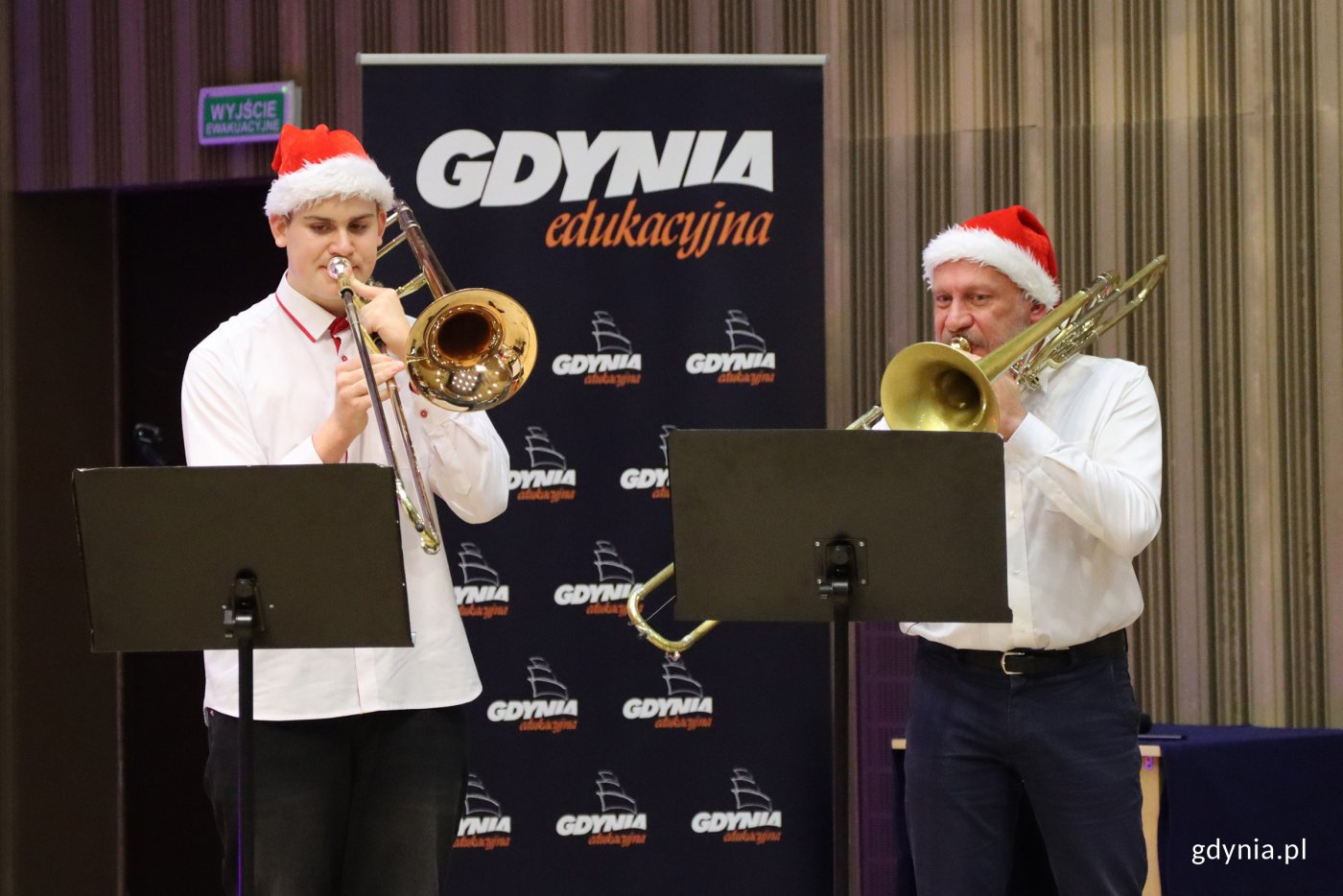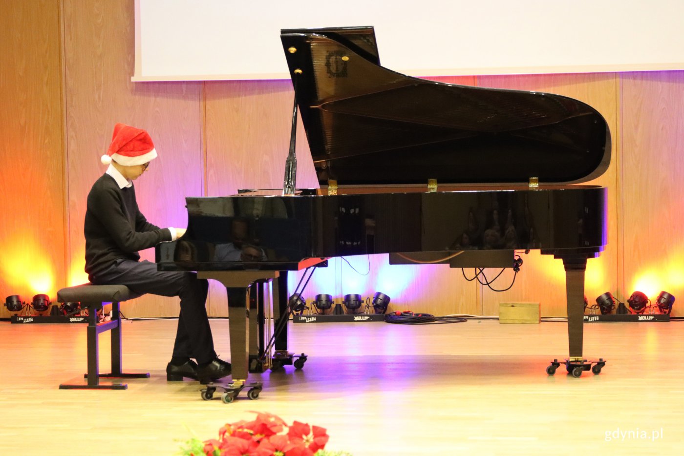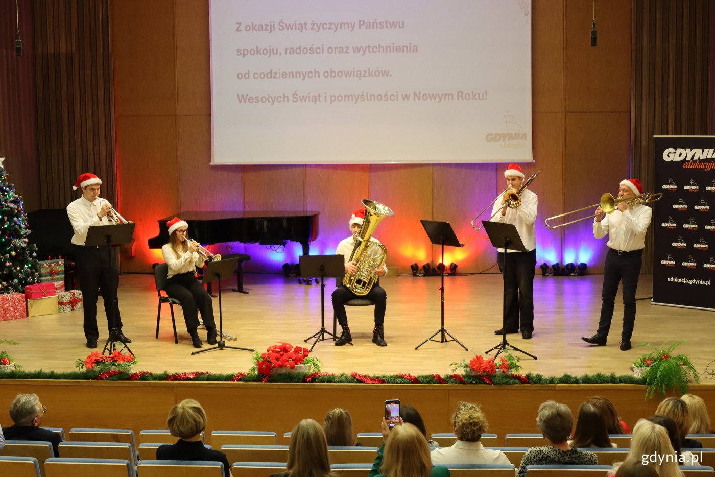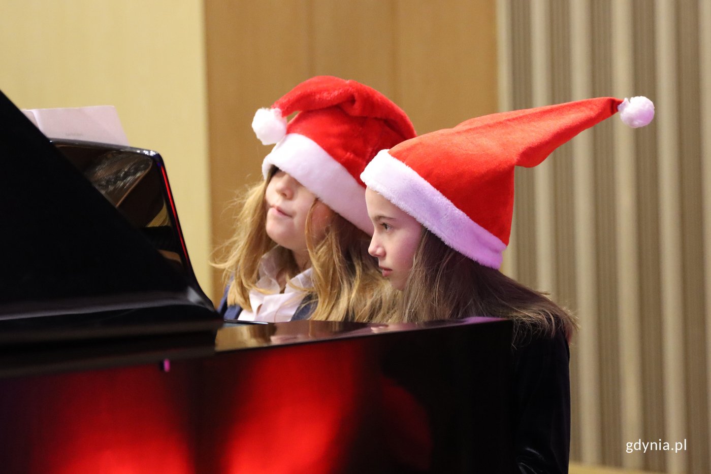 Uczniowie Szkoły Muzycznej I i II stopnia im. Zygmunta Noskowskiego wykonali utwory świąteczne, które zapowiedziała dyrektorka Joanna Rutkowska.