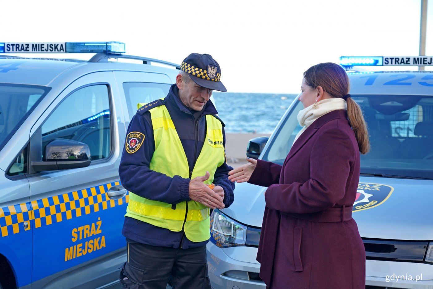 Trzy nowe radiowozy zasiliły flotę Straży Miejskiej w Gdyni. Zastąpią najbardziej wysłużone pojazdy, z których do tej pory korzystali strażnicy. Nowe samochody są nowoczesne i posiadają niezbędne wyposażenie. Każdy z nich kosztował 172 tys. zł. Poprawią bezpieczeństwo mieszkańców, a także komfort pracy strażników miejskich. Dzięki nim Gdynia będzie jeszcze bardziej bezpieczna, a funkcjonariusze szybko i sprawnie dojadą na miejsce interwencji. Straż Miejska w Gdyni zyskała trzy nowe radiowozy. To samochody marki Volkswagen Caddy. Oficjalne przekazanie pojazdów odbyło się we wtorek, 23 grudnia na parkingu na skwerze Arki Gdynia. Wzięli w nim udział: prezydent Gdyni Aleksandra Kosiorek, wiceprezydent Tomasz Augustyniak, Łukasz Kobus – sekretarz miasta i dyrektor generalny Urzędu Miasta Gdyni, gdyńscy radni, Robert Ronduda – naczelnik Wydziału Zarządzania Kryzysowego i Ochrony Ludności oraz Andrzej Bień – komendant Straży Miejskiej w Gdyni i strażnicy miejscy. Przekazaliśmy naszej Straży Miejskiej trzy nowe radiowozy. Mogą zacząć już służbę, aby zapewnić bezpieczeństwo naszym mieszkańcom i porządek w mieście. Flota potrzebowała odświeżenia i to konsekwentnie się dzieje. W zeszłym roku zakupiliśmy dwa nowe radiowozy. Planujemy zakup kolejnych. To nie tylko poprawia komfort strażnikom miejskim, ale również sprawia, że Straż Miejska jest w stanie dotrzeć szybko do miejsca, gdzie mieszkaniec ich wzywa – mówi Aleksandra Kosiorek, prezydent Gdyni. Wideo i montaż: Przemek DopkeUzupełnienie floty Straży Miejskiej było bardzo potrzebne. Składa się ona z 21 samochodów, ale wiele z nich to wysłużone pojazdy. Najstarsze z nich – z 2007 i 2008 roku. Nowe radiowozy zastąpią właśnie te najbardziej wysłużone. W ubiegłym roku strażnicy zyskali dwa samochody marki Mercedes, a dwa lata temu zakupiono auto marki Isuzu dla EkoPatrolu. To wielka potrzeba naszej formacji mundurowej, dlatego że tak naprawdę te pojazdy, którymi dzisiaj jeździ Straż Miejska, są już bardzo wyeksploatowane. Niektórych samochodów nie opłaca naprawiać, więc tak naprawdę odświeżamy coś, co już posiadamy. Zasilą naszą flotę 21 pojazdów i będą nieść pomoc mieszkańcom. Na ulicach pojawią się już od świąt – zaznacza Łukasz Kobus, sekretarz miasta i dyrektor generalny Urzędu Miasta Gdyni. Od prawej: radny miasta Łukasz Piesiewicz, Robert Ronduda – naczelnik Wydziału Zarządzania Kryzysowego i Ochrony Ludności, Łukasz Kobus – sekretarz miasta i dyrektor generalny Urzędu Miasta Gdyni, prezydent Aleksandra Kosiorek, wiceprezydent Tomasz Augustyniak, radna miasta Natalia Kłopotek-Główczewska i Andrzej Bień – komendant Straży Miejskiej w Gdyni ze strażnikami przy nowych radiowozach Straży Miejskiej w Gdyni (fot. Magdalena Czernek)Nowe radiowozy trafią do II Referatu Dzielnicowego w komisariacie przy ul. Necla 15-17. To tu jest najwięcej interwencji i pracuje najwięcej strażników, dlatego najbardziej się przydadzą. Będą służyć do patrolowania ulic Śródmieścia, Wzgórza św. Maksymiliana, Działek Leśnych, Orłowa i Redłowa.Samochody są nowoczesne i posiadają niezbędne wyposażenie. Mają m.in. silniki o mocy 100 KM, automatyczne skrzynie biegów czy systemy antypoślizgowe i stabilizacji toru jazdy. Każdy z nich kosztował 172 tys. zł. To samochody z silnikiem benzynowym, automatyczną skrzynią biegów, co było ważne, ponieważ wielu kierowców korzysta z pojazdów. Mają klimatyzację, nawigację, kamerę cofania, wideorejestratory przednie i tyle, żebyśmy mogli dokumentować zdarzenia, które rejestrujemy. Myślę, że w końcu, po wielu latach oczekiwania, uzupełniają flotę samochodów, które po prostu się zużywają. Mam nadzieję, że będą wdzięcznie służyły naszym strażnikom – podkreśla Andrzej Bień, komendant Straży Miejskiej w Gdyni. Auta zostały zakupione ze środków miasta. Przetarg wygrała i dostarczyła je grupa Cichy i Zasada z Poznania.Do 2027 roku do służby mają wejść kolejne dwa nowe radiowozy. Galeria zdjęć Pobierz galerię Trzy nowe radiowozy Straży Miejskiej w Gdyni na parkingu na skwerze Arki Gdynia (fot. Magdalena Czernek) Pobierz zdjęcie Prezydent Gdyni Aleksandra Kosiorek przekazuje kluczyki do jednego z radiowozów komendantowi Andrzejowi Bieniowi (fot. Magdalena Czernek) Pobierz zdjęcie Trzy nowe radiowozy Straży Miejskiej w Gdyni na parkingu na skwerze Arki Gdynia (fot. Magdalena Czernek) Pobierz zdjęcie Prezydent Gdyni Aleksandra Kosiorek przekazuje kluczyki do radiowozu jednemu ze strażników miejskich (fot. Magdalena Czernek) Pobierz zdjęcie Od lewej: Łukasz Kobus – sekretarz miasta i dyrektor generalny Urzędu Miasta Gdyni, Robert Ronduda – naczelnik Wydziału Zarządzania Kryzysowego i Ochrony Ludności, prezydent Gdyni Aleksandra Kosiorek oraz Andrzej Bień – komendant Straży Miejskiej w Gdyni (w środku) i strażnicy miejscy podczas oficjalnego przekazania nowych radiowozów (fot. Magdalena Czernek) Pobierz zdjęcie Andrzej Bień – komendant Straży Miejskiej w Gdyni podczas oficjalnego przekazania nowych radiowozów (fot. Magdalena Czernek) Pobierz zdjęcie Trzy nowe radiowozy Straży Miejskiej w Gdyni na parkingu na skwerze Arki Gdynia (fot. Magdalena Czernek) Pobierz zdjęcie Andrzej Bień – komendant Straży Miejskiej w Gdyni (w środku) ze strażnikami podczas oficjalnego przekazania nowych radiowozów (fot. Magdalena Czernek) Pobierz zdjęcie Warunki pobierania Wszelkie prawa do zdjęć lub grafik prezentowanych w ramach portalu, należą do Prowadzącego portal lub do podmiotów z nim współpracujących i podlegają ochronie prawnej. Prowadzący portal zezwala na kopiowanie i przedstawianie utworów jedynie w celach niekomercyjnych oraz pod warunkiem zachowania go w oryginalnej postaci i zachowaniem kontekstu tematu, do którego zostało wykorzystaneprzez redakcję gdynia.pl. Opublikowane ma