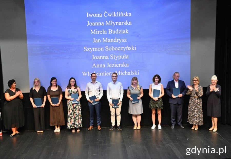 29 sierpnia w Gdyńskim Centrum Filmowym spotkali się przedstawiciele gdyńskiego środowiska edukacyjnego. Nowy rok szkolny to idealny moment, aby porozmawiać o tym, co nas czeka w oświacie, poznać między innymi nową naczelniczkę Wydziału Edukacji – Iwonę Tanewską, ale również odebrać awans zawodowy na stopień nauczyciela mianowanego. Powodów do spotkania wiceprezydentki Oktawii Gorzeńskiej z gdyńskim środowiskiem edukacyjnym było wiele. Nowy rok szkolny niesie ze sobą zmiany i warto je było omówić w szerszym gronie. Spotkanie odbyło się w czwartek, 29 sierpnia w Gdyńskim Centrum Filmowym. To bardzo ważny dzień dla gdyńskiej oświaty. Rano świętowaliśmy wspólnie z nauczycielkami i nauczycielami, którzy uzyskali awans na stopień nauczyciela mianowanego. Później spotkaliśmy się z gdyńskimi dyrektorkami i dyrektorami szkół, żeby porozmawiać o tym, co przed nami w najbliższych miesiącach. Była pani skarbnik, pan profesor Michał Federowicz, a także nowa naczelniczka Wydziału Edukacji – informuje wiceprezydentka Oktawia Gorzeńska. Awans na nauczyciela mianowanego Podczas pierwszej części spotkania w Gdyńskim Centrum Filmowym wiceprezydentka Gdyni – w towarzystwie nowej naczelniczki Wydziału Edukacji Iwony Tanewskiej oraz Agnieszki Kamińskiej-Klimczyk, zastępczyni naczelniczki – wręczyła nauczycielom awanse zawodowe. Tego lata w naszym mieście do egzaminu na stopień nauczyciela mianowanego przystąpiło 98 osób. Po odebraniu dyplomów, nauczyciele złożyli uroczyste ślubowanie.Pełną listę nazwisk znajdziemy w załączniku pod artykułem. Poznajmy się Na zdj. (od lewej): Iwona Tanewska, naczelniczka gdyńskiego Wydziału Edukacji i dr hab. Michał Federowicz (fot. Magdalena Śliżewska)Czwartkowe spotkanie to był również dobry moment, aby oficjalnie przedstawić kilka osób, które w najbliższym czasie będą miały duży wpływ na gdyńską oświatę. Uczestnicy poznali nową naczelniczkę Wydziału Edukacji – Iwonę Tanewską, dr hab. Michała Federowicza, który współpracuje ze środowiskiem nad polityką edukacyjną naszego miasta oraz skarbnik Gdyni – Honoratę Krupkę. Na pewno priorytetem dla mnie jest wspomaganie pracy dyrektorów szkół. Umożliwienie organizacji spotkań – takich roboczych, gdzie będziemy mogli dyskutować, rozważać i rozwiązywać różnego rodzaju problemy. Chciałabym również odwiedzić szkoły, zapoznać się i zobaczyć, jak pracują – mówi Iwona Tanewska, naczelniczka Wydziału Edukacji w Gdyni. Pożegnanie i powitanie Nie obyło się również bez podziękowań i pożegnania przechodzących na emeryturę czterech pań dyrektorek: Jolanty Sobótki, Marzeny Adamskiej, Wiesławy Krysztofowicz i Judyty Śliwińskiej.Na zdj. odchodzące na emeryturę dyrektorki: Jolanta Sobótka, Marzena Adamska, Wiesława Krysztofowicz i Judyta Śliwińska w towarzystwie m.in. wiceprezydentki Oktawii Gorzeńskiej, naczelniczki Iwony Tanewskiej i jej zastępczyni Agnieszki Kamińskiej-Klimczyk (fot. Magdalena Śliżewska)Z kolei w czerwcu odbyły się postępowania konkursowe na nowych dyrektorów gdyńskich placówek oświatowych. Dzięki nim wybrano cztery nowe osoby, a dziewięć zachowało stanowiska na kolejną kadencję.Na liście dyrektorów znaleźli się: Katarzyna Teszka, Żanetta Gugała, Magdalena Przytarska (nowa dyrektorka), Joanna Długońska-Duber, Wojciech Jankowski, Tomasz Ogrodnik, Agnieszka Jowsa (nowa dyrektorka), Alicja Smolik, Katarzyna Gawron, Katarzyna Dukat, Agnieszka Zegarlicka (nowa dyrektorka), Renata Zamorowska i Barbara Barlikowska (nowa dyrektorka).Warto dodać, że od tego roku szkolnego wprowadzono również nową tradycję. Każdy z wybranych dyrektorów otrzymał niespodziankę – gdyński pakiet powitalny. To dopiero początek drogi na rzecz Gdyni edukacyjnej. Takie spotkania to także przestrzeń na pytania i dialog, bo tylko wspólnie można wypracować działania, których wszyscy oczekujemy. Galeria zdjęć Pobierz galerię Na zdj. wiceprezydentka Oktawia Gorzeńska (fot. Magdalena Śliżewska) Pobierz zdjęcie Na zdj. m.in.: dyrektor GCF-u Jerzy Rados i Ireneusz Trojanowicz, przewodniczący Komisji Oświaty i wiceprzewodniczący Rady Miasta Gdyni (fot. Magdalena Śliżewska) Pobierz zdjęcie Na zdj. wiceprezydentka Oktawia Gorzeńska i przedstawicielki związków zawodowych: prezes Ewa Biernacka i przewodnicząca Zdzisława Hacio (fot. Magdalena Śliżewska) Pobierz zdjęcie Na zdj. (od lewej): wiceprezydentka Oktawia Gorzeńska i Agnieszka Kamińska-Klimczyk, zastępczyni naczelniczki Wydziału Edukacji (fot. Magdalena Śliżewska) Pobierz zdjęcie Na zdj. nauczyciele odbierający awans zawodowy na stopień nauczyciela mianowanego z rąk wiceprezydentki Oktawii Gorzeńskiej (fot. Magdalena Śliżewska) Pobierz zdjęcie Na zdj. nauczyciele odbierający awans zawodowy na stopień nauczyciela mianowanego w towarzystwie wiceprezydentki Oktawii Gorzeńskiej i naczelniczki Wydziału Edukacji Iwony Tanewskiej (fot. Magdalena Śliżewska) Pobierz zdjęcie Na zdj. nauczyciele odbierający awans zawodowy na stopień nauczyciela mianowanego w towarzystwie wiceprezydentki Oktawii Gorzeńskiej i naczelniczki Wydziału Edukacji Iwony Tanewskiej (fot. Magdalena Śliżewska) Pobierz zdjęcie Na zdj. nauczyciele odbierający awans zawodowy na stopień nauczyciela mianowanego w towarzystwie wiceprezydentki Oktawii Gorzeńskiej i naczelniczki Wydziału Edukacji Iwony Tanewskiej (fot. Magdalena Śliżewska) Pobierz zdjęcie Na zdj. nauczyciele odbierający awans zawodowy na stopień nauczyciela mianowanego w towarzystwie wiceprezydentki Oktawii Gorzeńskiej i naczelniczki Wydziału Edukacji Iwony Tanewskiej (fot. Magdalena Śliżewska) Pobierz zdjęcie Na zdj. nauczyciele odbierający awans zawodowy na stopień nauczyciela mianowanego w towarzystwie wiceprezydentki Oktawii Gorzeńskiej i naczelniczki Wydziału Edukacji Iwony Tanewskiej (fot. Magdalena Śliżewska)
