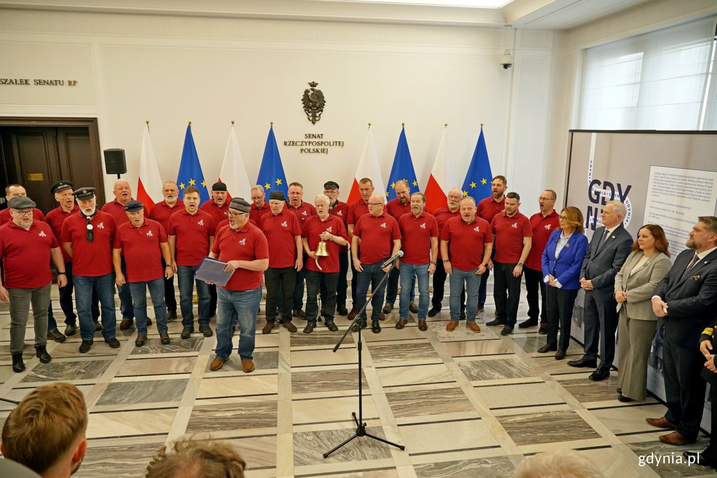 „Stulecie Gdyni to wyjątkowy czas, żeby pokazać, co naprawdę wyjątkowego nam się w Polsce udało. Bo to nie jest tylko miasto, a coś więcej” – mówiła Małgorzata Kidawa-Błońska, marszałek Senatu, podczas otwarcia wystawy „Gdynia x 10”. Prezentuje ona dziesięć dekad historii naszego miasta. Opowiada, jak powstało, rozwijało się i rosło. Ma też zachęcać do odwiedzania Gdyni. Inauguracja ekspozycji odbyła się w środę, 18 lutego w Senacie RP. Wydarzenie zgromadziło m.in. parlamentarzystów, samorządowców, przedstawicieli Marynarki Wojennej, gdyńskich instytucji kultury czy uczelni. Gdynia została wyróżniona i upamiętniona w Senacie RP. Z okazji jubileuszu stulecia w izbie wyższej polskiego parlamentu od 18 lutego można oglądać ekspozycję, która przybliża historię i losy naszego miasta, a także jego tożsamość. To efekt decyzji Senatu, który jednomyślnie ustanowił rok 2026 Rokiem Gdyni.Wystawę „Gdynia x 10” oficjalnie otworzyła Małgorzata Kidawa-Błońska, marszałek Senatu, która podkreślała, że nasze miasto może być przykładem dla innych. W Polsce potrzebujemy pozytywnych przykładów tego, że marzenie od początku do końca się spełnia, że marzenia łączą, że ludzie wspólnie działają. I Gdynia powstała dlatego, że ludzie chcieli nowoczesnego miasta, które będzie oknem na świat. Miasta, które będzie dawało szansę wszystkim. Przecież do Gdyni przyjeżdżali ludzie z całej Polski, czasami nawet z zagranicy, aby móc tworzyć to miasto i znaleźć tam swoje miejsce. To przykład dla nas wszystkich, że jeśli chcemy, możemy robić rzeczy wielkie. Mam nadzieje, że ta wystawa będzie dobrą lekcją myślenia o przyszłości, odpowiedzialności, o wolności – mówiła Małgorzata Kidawa-Błońska, marszałek Senatu. Wideo i montaż: Przemysław DopkeWydarzenie przyciągnęło wielu gości. W inauguracji wystawy wzięli udział m.in. parlamentarzyści, gdyńscy samorządowcy – z prezydent Aleksandrą Kosiorek i przewodniczącym Rady Miasta Gdyni Tadeuszem Szemiotem na czele, przedstawiciele Marynarki Wojennej, instytucji kultury czy uczelni wyższych. Pojawili się również reprezentanci organizatorów ekspozycji, czyli Muzeum Miasta Gdyni i Muzeum Marynarki Wojennej, a także inicjator przedsięwzięcia – senator Sławomir Rybicki. Gdynia jest wyjątkowa i uosabia uniwersalne wartości europejskie, na których zbudowane są demokratyczne społeczeństwa i państwa. Jest miastem na wskroś obywatelskim, wolnościowym, wspólnotowym, stwarzającym przestrzeń dla ludzi kreatywnych. Jestem dumny i zaszczycony, że mogę być reprezentantem Gdyni w polskim Senacie, więc było oczywiste, że zrobiłem wszystko, aby w porozumieniu z panią marszałek doprowadzić do podjęcia uchwały, która ustanowiła rok 2026 Rokiem Gdyni. W konsekwencji powstała ta wystawa. Wystawa przypomina powody, dla których Gdynia była dumą II Rzeczypospolitej. A nie mam wątpliwości, że dokonania i historia miasta wywołują dumę wśród współczesnych pokoleń Polaków – zaznaczył senator Sławomir Rybicki.W przestrzeniach Senatu RP prezentujemy po raz pierwszy wystawę o naszym kochanym mieście. Staramy się opowiedzieć w skrócie tę cudowną historię, ale chcemy również zachęcić wszystkich, którzy będą mieli szansę tę wystawę oglądać, do tego, żeby przyjechali i na własne oczy zobaczyli, jakie mamy miasto. Wystawa jest mobilna, więc nie będzie prezentowana tylko w Senacie, ale to tutaj, w centrum Polski, w Warszawie, w naszym parlamencie ją inaugurujemy, co jest wyjątkowym gestem wobec wszystkich mieszkańców naszego miasta. Całość jest zrobiona z nowoczesną wizją. Myślę, że każdy znajdzie na tej wystawie coś, co go zainspiruje i zaintryguje w naszym mieście – powiedziała Aleksandra Kosiorek, prezydent Gdyni.Mam nadzieję, że ta wystawa przekonuje do Gdyni, że ktoś tutaj spojrzy, dotknie Gdyni poprzez obrazy, które są tutaj zaprezentowane i zechce do nas przyjechać, poczuć to na własnej skórze, przejść się tymi ulicami, poznać wspaniałą historię miejsca wyjątkowego, bo to jest autentyczna historia, którą Gdynia na swoich barkach niesie jako to ukochane dziecko niepodległej – dodał Tadeusz Szemiot, przewodniczący Rady Miasta Gdyni. Po części oficjalnej ekspozycję zaprezentowali gościom: Karin Moder – dyrektorka Muzeum Miasta Gdyni, Tomasz Miegoń – dyrektor Muzeum Marynarki Wojennej oraz Michał Miegoń – kurator wystawy.Od lewej: Michał Miegoń – kurator wystawy, Karin Moder – dyrektorka Muzeum Marynarki Wojennej, senator Ryszard Świlski, Małgorzata Kidawa-Błońska – marszałek Senatu, senatorka Magdalena Biejat, posłanka Wioleta Tomczak, prezydent Gdyni Aleksandra Kosiorek, Tadeusz Szemiot – przewodniczący Rady Miasta Gdyni, Tomasz Miegoń – dyrektor Muzeum Marynarki Wojennej oraz Hanna Wenda-Uszyńska – wnuczka Tadeusza Wendy, a także inni goście podczas zwiedzania wystawy o Gdyni w Senacie RP (fot. Magdalena Czernek)A całe wydarzenie uświetnił występ Męskiego Chóru Szantowego „Zawisza Czarny” pod dyrekcją Jacka Jakubowskiego.„Gdynia x 10” prezentuje dziesięć dekad historii naszego miasta. Każda z nich była szczególna i prowadziła ku spełnieniu wizji Polski otwartej na świat. Ekspozycja pokazuje rozwój Gdyni, a także ważne wydarzenia, które budowały miasto lub odcisnęły na nim swój ślad. Nie brakuje odniesień do modernizmu, trudnych czasów przemian czy wojny i współczesności. „Gdynia x 10”, czyli dziesięć dekad naszego miasta na stulecie Gdyni. Dziesięć dekad, które można podziwiać niejako w odwróconej chronologii, bo wystawa rozpoczyna się od współczesności i co dekadę cofamy się wstecz aż do roku 1926, do samych początków miasta. To również dziesięć zjawisk – turystyka, morze, przemysł, ludzie Gdyni, ważne wydarzenia na osi czasu naszego kraju, które 