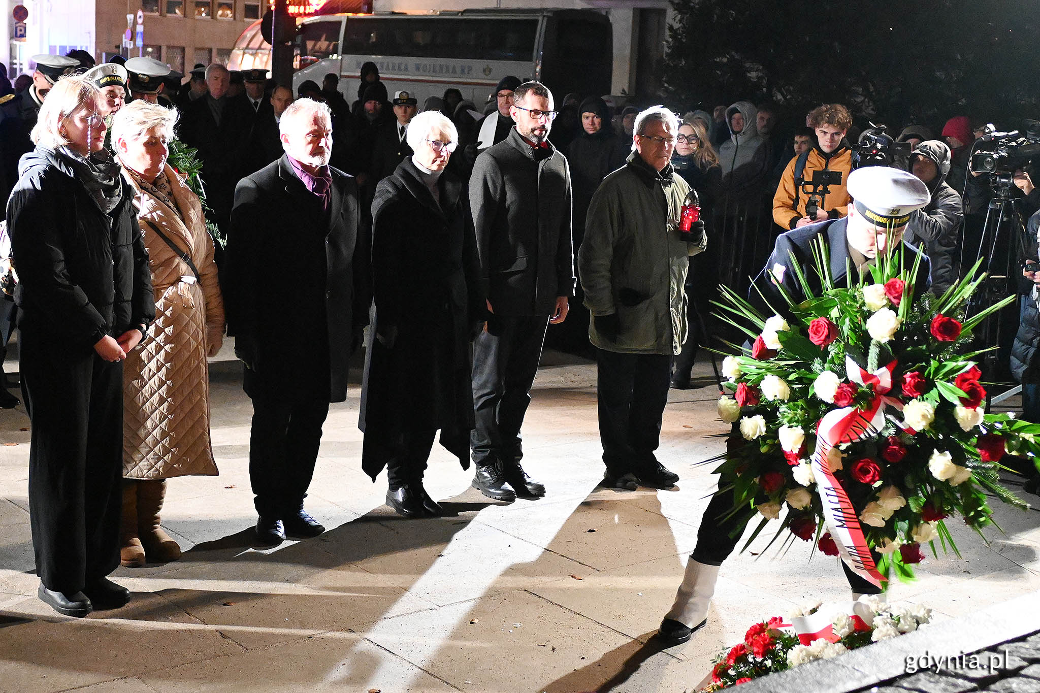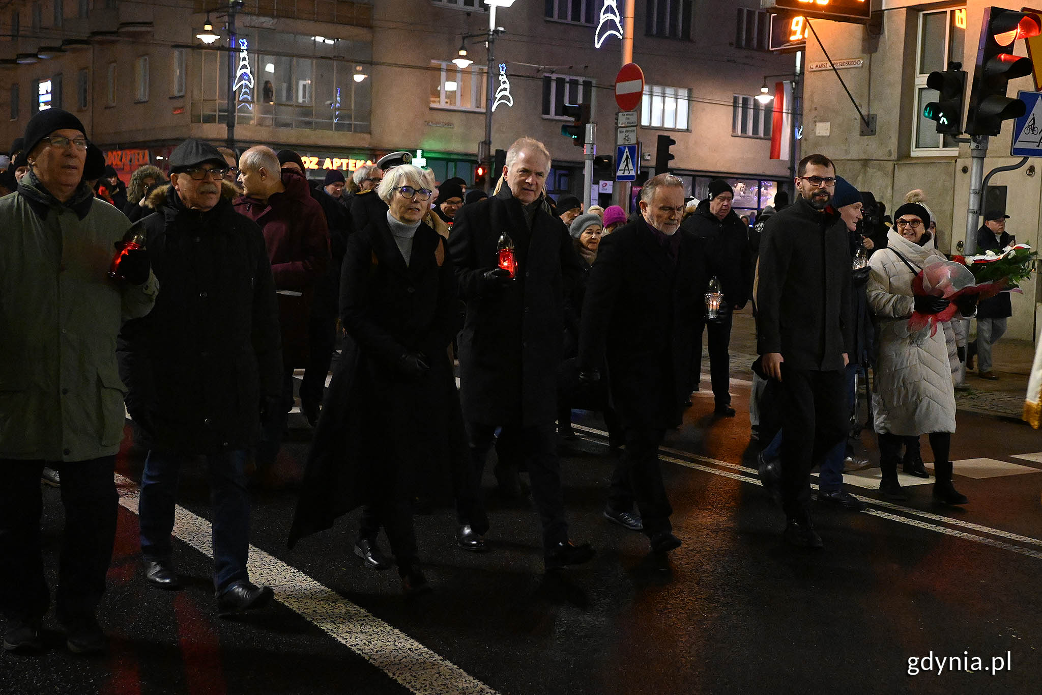 Tej tragedii nie da się zapomnieć. W wyniku decyzji politycznej, życie straciło kilkanaście osób w naszym mieście, w kraju - kilkadziesiąt. Gdynia pamięta i po raz kolejny obchodzi rocznicę tragicznych grudniowych wydarzeń. Uroczystości rozpoczęła się pod Pomnikiem Ofiar Grudnia 1970 roku wczesnym rankiem, w miejscu, gdzie 53 lata temu padły strzały, a zakończyły wieczorem, pod pomnikiem Ofiar Grudnia ‘70 na placu Wolnej Polski przy Urzędzie Miasta Gdyni. W niedzielę, 17 grudnia, pod Pomnikiem Ofiar Grudnia 1970 roku rozpoczęły się uroczyste obchody 53. rocznicy wydarzeń Grudnia '70, z udziałem wojskowej asysty honorowej. W tym niezwykle ważnym dla historii Gdyni i Polski miejscu pojawili się przedstawiciele władz samorządowych, parlamentu, wojska, organizacji politycznych, społecznych i duchowieństwa, związkowcy, uczniowie szkół, harcerze, a także mieszkańcy, w tym rodziny ofiar grudniowej masakry. Gdyński samorząd na tej uroczystości reprezentował prezydent Gdyni Wojciech Szczurek, wiceprezydentka Gdyni ds. gospodarki Katarzyna Gruszecka-Spychała, radny Marcin Wołek - wiceprzewodniczący Rady Miasta Gdyni, radni: Anna Szpajer, Anna Myszka i Zenon Roda. Wszyscy uczcili pamięć niewinnych ofiar tamtych wydarzeń, wysłuchując apelu pamięci, wystąpień, biorąc udział w modliwie i składając kwiaty w miejscu, naznaczonym krwią zamordowanych Polaków. - To 53 lata od tamtych dramatycznych wydarzeń, ale gdynianie pamiętają, bo to część tożsamości naszego miasta, to część pamięci o bohaterach, którzy polegli w walce o niepodległość naszego kraju – mówi prezydent Gdyni, Wojciech Szczurek. 53. rocznica Grudnia 70. Uroczystości pod pomnikiem Ofiar Grudnia 1970 r. Na zdj. od lewej: radni Zenon Roda, Anna Myszka, wiceprezydentka Gdyni ds. gospodarki Katarzyna Gruszecka-Spychała, prezydent Gdyni Wojciech Szczurek, radna Anna Szpajer, radny Marcin Wołek - wiceprzewodniczący Rady Miasta Gdyni. Fot. Michał Puszczewicz Gdynia pamięta i pamiętać będzie Grudniowe wydarzenia odcisnęły ogromne piętno nie tylko na historii Polski. Pozostawiły bolesną, wciąż żywą ranę w Gdyni. Jednak, jak podkreślił w swoim wystąpieniu arcybiskup Tadeusz Wojda, metropolita gdański, ich walka o lepsze jutro dla miasta i naszej ojczyzny nie poszła na marne. - To dzięki nim dzisiejsze pokolenia mogą cieszyć się upragnionym darem wolności. Rocznicę traktujemy jako przypomnienie, jak ważna jest obrona naszych praw i wolności. To nasze dziedzictwo, które musimy pielęgnować i przekazywać przeszłym pokoleniom – podkreślił metropolita gdański. - Chcieli tylko godnie żyć – mówił Roman Kuzimski, wiceprzewodniczący zarządu regionu gdańskiego NSZZ „Solidarność” o ofiarach poległych podczas grudniowych wydarzeń. - Zginęło kilkadziesiąt osób, a blisko 2 tysiące zostało rannych. Mimo to, do dnia dzisiejszego nie poznaliśmy całej prawdy i nie doczekaliśmy się sprawiedliwości. Czy to znaczy, że ta straszna ofiara poszła na marne? Nie. Dzięki niej powstała Solidarność, która wywalczyła Polsce wolność - dodał. Obchody 53. rocznicy wydarzeń Grudnia '70. Arcybiskup Tadeusz Wojda, metropolita gdański. Fot. Michał Puszczewicz Wolność mierzona krzyżami „Wolność krzyżami się mierzy, drogę do wolnej Polski odmierzają krzyże upamiętniające ofiarę tych, którzy odważnie upominali się o prawa i godność narodu, walcząc o sprawiedliwą i solidarną ojczyznę. To również krzyże na grobach uczestników wydarzeń grudnia 1970 roku, zamordowanych przez funkcjonariuszy reżimu komunistycznego, a także wzniesione ku ich czci krzyże-pomniki w Gdańsku, Gdyni, Szczecinie, Elblągu i innych polskich miastach” – napisał w liście prezydent RP, Andrzej Duda. W imieniu głowy państwa odczytał go społeczny doradca prezydenta, Piotr Karczewski. - W grudniu 1970 stoczniowcy z Gdańska i Gdyni rozpoczęli strajki i manifestacje, pociągając za sobą załogi innych zakładów na Wybrzeżu. Wobec drastycznej podwyżki urzędowych cen żywności tuż przed świętami Bożego Narodzenia powiedzieli stanowcze „nie” ciężkim warunkom życia, zawyżonym wymaganiom i złej organizacji pracy, niskim poborom oraz niemożliwości otwartego przedstawiania swoich postulatów. Władza odpowiedziała butą i agresją, padli zabici, było wielu rannych. Komuniści nie tylko odmówili protestującym prawa głosu w sprawach dotyczących ich samych i ich ojczyzny, ale też nakazali jednym Polakom wymierzać bron przeciwko drugim – czytał Piotr Karczewski. To, że na czyjś rozkaz Polak strzelał do Polaka, zaledwie ćwierć wieku po zakończeniu II wojny światowej, jest jednym z najgorszych epizodów w powojennej historii Polski. Niestety, nie ostatnim. Obchody 53. rocznicy wydarzeń Grudnia '70. Społeczny doradca prezydenta Andrzej Dudy, Piotr Karczewski, odczytuje list od głowy państwa. Fot. Michał Puszczewicz Gdynia, 17 grudnia 1970 roku Nie da wymazać się ani z historii Gdyni, ani z historii Polski czwartkowego poranka, 17 grudnia 1970 roku. Wśród pasażerów, którzy kilka minut po godzinie szóstej rano wysiedli z pociągu SKM na przystanku Gdynia Stocznia, byli nie tylko spieszący do pracy robotnicy z ówczesnej Stoczni Gdyńskiej im. Komuny Paryskiej, ale też uczniowie i studenci. Milicjanci i żołnierze otworzyli do nich ogień. Łączny bilans tamtych straszliwych wydarzeń to 18 ofiar śmiertelnych w samej tylko Gdyni, a 41 w kraju (6 osób zginęło w Gdańsku, 16 w Szczecinie i 1 osoba w Elblągu). Genezą tych wydarzeń było ogłoszenie przez władze drastycznych podwyżek cen żywności w grudniu, przed świętami. Reakcją społeczeństwa były manifestacje i strajki, które rozlały się na większą część Wybrzeża oraz inne miasta w Polsce. W odpowiedzi PRL-owski aparat władzy postawił w stan pełnej gotowości jednostki MSW. W kraju wrzało – robotnicy doma
