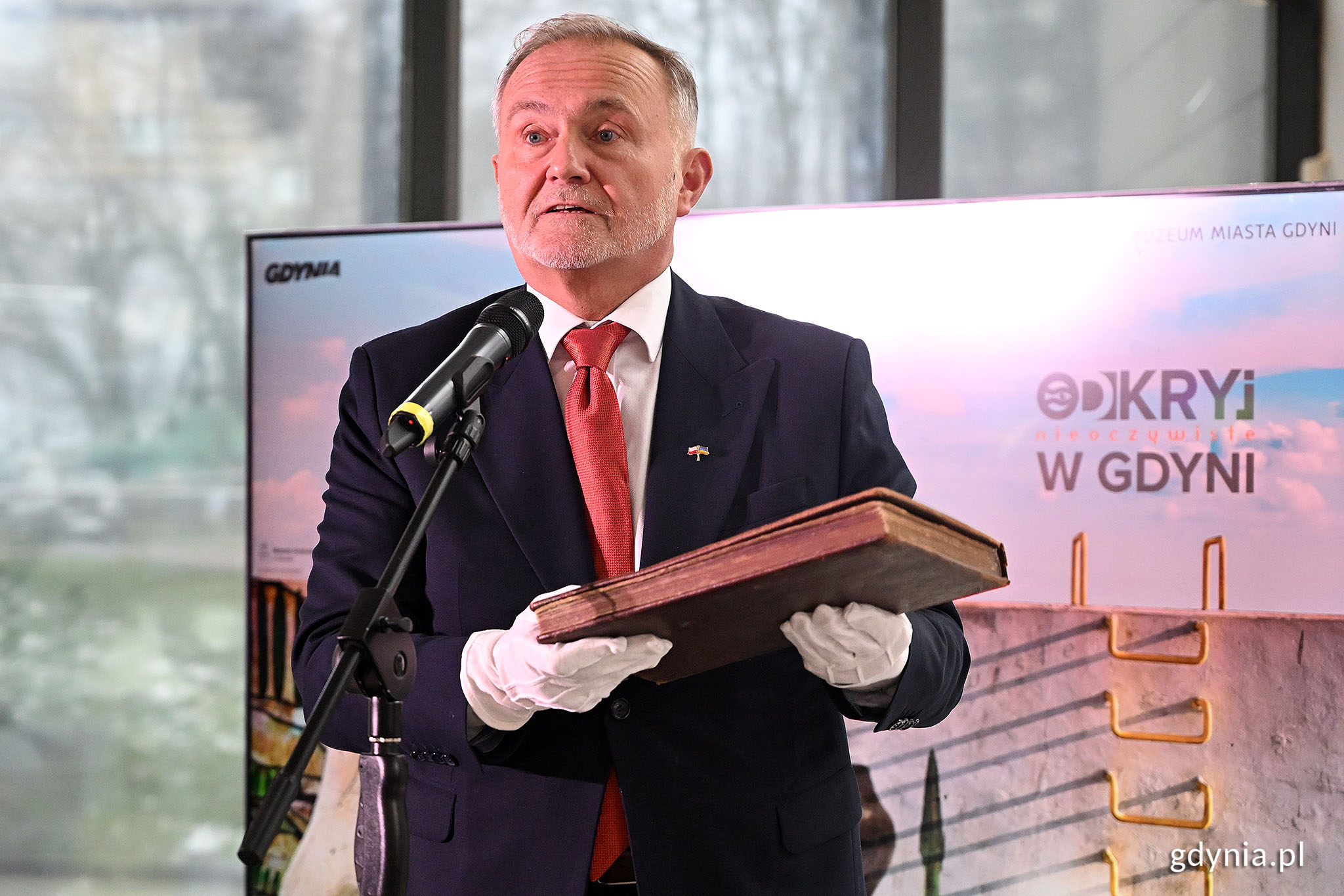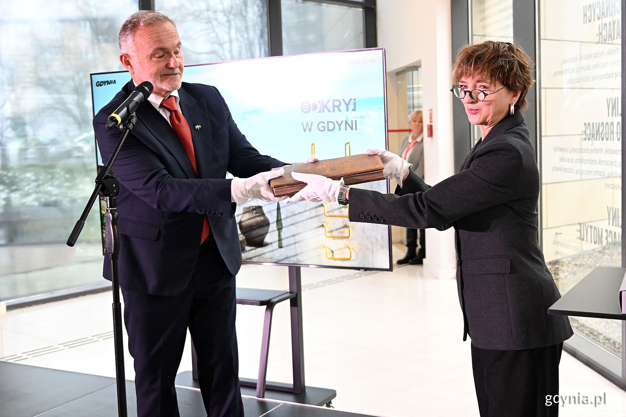 Niecodzienny przebieg miało otwarcie wystawy „Odkryj w Gdyni nieoczywiste. Pradzieje”. Podczas wernisażu Muzeum Miasta Gdyni wzbogaciło się bowiem o bezceny eksponat, przekazany przez prezydenta Wojciecha Szczurka; eksponat spinający klamrą dzieje pradawnej i współczesnej Gdyni. Przed tysiącami lat teren, który zajmuje obecnie Gdynia, nie przypominał miasta, w którym dziś mieszkamy. Mimo to tętniło tu życie i to na długo przed nastaniem naszej ery. O tym opowiada otwarta dziś w Muzeum Miasta Gdyni niezwykła wystawa „Odkryj w Gdyni nieoczywiste. Pradzieje”, przygotowana i zrealizowana własnym sumptem przez pracowników Referatu Promocji i PR Urzędu Miasta Gdyni: Aleksandrę Fijałkowską, Martę Toczek - która prywatnie przygotowała imponującą oprawę graficzną wystawy - oraz Pawła Lewinowicza. Wystawa „Odkryj w Gdyni nieoczywiste. Pradzieje.” Fot. Michał Puszczewicz - W dniu naszego święta wszystkim gdynianom, wszystkim naszym przyjaciołom chciałem złożyć najserdeczniejsze życzenia, żeby miłość do naszego miasta towarzyszyła nam każdego dnia, żebyśmy poprzez poznanie historii Gdyni, jej współczesności, pielęgnowali w sobie to poczucie bycia częścią wspólnoty niezwykłej, unikatowej – mówił na otwarciu wystawy prezydent Gdyni Wojciech Szczurek. - Wydawałoby się, że o Gdyni wiemy wszystko, natomiast pani dyrektor Karin Moder wraz z zespołem za tę pracę ukazania historii miasta w taki niezwykły sposób bardzo dziękuję – podkreślił Wojciech Szczurek. Wystawa „Odkryj w Gdyni nieoczywiste. Pradzieje.” Na zdj. m.in. prezydent Gdyni, Wojciech Szczurek oraz radny Zenon Roda. Fot. Michał Puszczewicz Podróż tysiące lat wstecz Wystawa „Odkryj w Gdyni nieoczywiste. Pradzieje.”, otwarta w Muzeum Miasta Gdyni w sobotę, 10 lutego, czyli w 98. rocznicę urodzin miasta, to podróż tysiące lat wstecz do najdawniejszych dziejów miejsca, które dziś znamy jako Gdynię. Stanowi wyjątkową okazję, aby poznać pochodzące z późnej epoki brązu i wczesnej epoki żelaza zabytki archeologiczne. Odkryte na terenie dzielnic Gdyni popielnice twarzowe i relikty kultury pomorskiej takie jak ozdoby, urny i broń sprzed około 2,5 tysiąca lat, są teraz dostępne niemal na wyciągnięcie ręki. To niepowtarzalna szansa zrozumienia przeszłości i życia tych, którzy mieszkali tu przed nami. Wystawa „Odkryj w Gdyni nieoczywiste. Pradzieje.” Fot. Michał Puszczewicz Sobotniemu wernisażowi towarzyszyła publikacja „Niepoznana. Gdynia i okolice do XII wieku.”, która opowiada o intrygującej, tajemniczej i fascynującej przeszłości jednego z najmłodszych polskich miast. Co zaskakujące - miasta, którego korzenie sięgają jednak aż do zamierzchłych czasów. Wystawa „Odkryj w Gdyni nieoczywiste. Pradzieje.” Na zdj. Karin Moder, dyrektorka Muzeum Miasta Gdyni. Fot. Michał Puszczewicz - Przygotowaliśmy dla państwa rzecz szczególną, wystawę „Pradzieje”, realizowaną w ramach kampanii „Odkryj w Gdyni nieoczywiste”. Wyraz „nieoczywiste” ma tutaj ogromne znaczenie, musicie sami bowiem przyznać, że Gdynia z archeologią nie idą w parze zbyt często – mówiła na otwarciu wystawy Karin Moder, dyrektorka Muzeum Miasta Gdyni. - Wydaliśmy niedawno przy wsparciu miasta książkę o archeologii Gdyni, a dziś otwieramy wystawę, która jest jej uzupełnieniem. W Gdyni istniało ponad 300 stanowisk archeologicznych, to jest absolutnie nieoczywiste – podkreśliła dyrektorka gdyńskiego muzeum. Niespodzianka od prezydenta Gdyni Ogromną niespodzianką podczas uroczystego wernisażu było przekazanie placówce Księgi Pamiątkowej Miasta Gdyni z 1928 roku, do której wpisali się m.in. marszałek Józef Piłsudski czy słynny śpiewak, Jan Kiepura. To zaskakujący i szczególny prezent od prezydenta Gdyni, Wojciecha Szczurka. Wojciech Szczurek z niezwykłym prezentem dla muzeum - Księgą Pamiątkową Miasta Gdyni. Fot. Michał Puszczewicz - Zanim zaczniemy przyglądać się pradziejom Gdyni, to chciałbym korzystając z okazji wręczyć na ręce pani dyrektorki elementy historii naszego miasta, takiego świadka historii Gdyni, który przez ostatnie ponad 20 lat był w moim gabinecie, ale myślę, że to jest taki właściwy moment, święto naszego miasta, żeby trafił w ręce muzealników – powiedział Wojciech Szczurek pokazując księgę pamiątkową miasta sprzed ponad 90 lat. Księga Pamiątkowa Miasta Gdyni towarzyszyła Gdyni od momentu, gdy Gdynia otrzymała prawa miejskie. Znajdują się tu wpisy wszystkich wybitnych gości, którzy odwiedzali miasto, m.in. prezydenta Ignacego Mościckiego, marszałka Józefa Piłsudskiego, burmistrza Augustyna Krauze, Eugeniusza Kwiatkowskiego, Tadeusza Wendy i wielu innych postaci, które budowały potencjał Gdyni. Prezydent Gdyni przekazuje prezent na ręce dyrekorki Muzeum Miasta Gdyni, Karin Moder. Fot. Michał Puszczewicz Jak zaznaczył włodarz Gdyni, księga ma swoją historię. Zaginęła w okresie II Wojny Światowej, po czym została przez przypadek odnaleziona i zdeponowana do przełomu lat 80 i 90-tych XX wieku. Następnie, poprzez Fundusz Daru Narodowego trafiła do Gdyni. - Towarzyszyła Gdyni w uroczystościach związanych z obchodami 75. rocznicy nadania praw miejskich, potem została zdeponowana i leżała u mnie w sejfie. Od dzisiaj przekazuje ją do Muzeum Miasta Gdyni z takim głębokim przekonaniem, że tak księga powinna żyć. Zbliżają się setne urodziny miasta, ja mam taką nadzieje i przekonanie, że pani dyrektor zadba o to, aby kolejne wpisy na tych stronach towarzyszyły historii naszego miasta; żeby ta księga towarzyszyła Gdyni przez kolejne dziesięciolecia. Pani dyrektor, przekazuję księgę na pani ręce – mówiąc to prezydent Gdyni przekazał księgę na ręce Karin Moder, która podziękowała za ten fantastyczny dar dla placówki. Karin Moder z Księgą Pamiątkową Miasta Gdyni. Fot. Michał Puszczewi