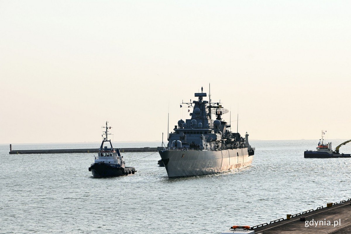 Do Gdyni przypłynęło pięć okrętów, które tworzą obecnie Stały Zespół Sił Morskich NATO – SNMG-1. To fregaty FGS „Mecklenburg-Vorpommern”, NRP „Bartolomeu Dias”, HNLMS „Van Amstel”, ORP „Gen. T. Kościuszko” oraz ESPS „Alvaro De Bazan”. Z tej okazji przedstawiciele sił morskich NATO zawitają również do gdyńskiego magistratu z kurtuazyjną wizytą i spotkali się z wiceprezydent Katarzyną Gruszecką-Spychałą. W piątek, 26 maja do gdyńskiego portu wpłynęły okręty NATO. Wizyta ma charakter roboczy. Jednostki pozostaną w naszym mieście do wtorku, 30 maja. Okręty nie zostaną udostępnione do zwiedzania.Okręty sojuszniczego zespołu zacumowały przy nabrzeżu Francuskim i Stanów Zjednoczonych, a także w porcie Wojennym. FGS „Mecklenburg-Vorpommern” to niemiecka fregata klasy Brandenburg. Okręt ma 139 metrów długości i ponad 16 metrów szerokości. To jednostka flagowa zespołu.NRP „Bartolomeu Dias” to portugalska fregata typu Bartolomeu Dias. Ma 122 metry długości i 14 metrów szerokości.HNLMS „Van Amstel” to wielozadaniowy okręt klasy Karel Doorman należący do Królewskiej Marynarki Wojennej Holandii. Ma 122 metry długości oraz 14 metrów szerokości.ESPS „Alvaro De Bazan” to hiszpańska fregata rakietowa typu Álvaro de Bazán. Ma 147 metrów długości i 18 metrów szerokości.ORP „Gen. T. Kościuszko” to polska fregata rakietowa. Ma 136 metrów długości i 14 metrów szerokości. Jednostka przeznaczona głównie do osłony transportu morskiego, monitoringu żeglugi, operacji wymuszania pokoju, działań stabilizacyjnych i bojowych. Posiada uzbrojenie przeciw okrętom podwodnym opierające się na systemach wykrywania i jednych z najnowocześniejszych na świecie torped typu MU-90. Jego system obrony przeciwlotniczej opiera się na rakietach typu Standard SM-1. Operujące z pokładu fregaty śmigłowiec SH-2G znacznie poszerza możliwości w zakresie walki z okrętami podwodnymi, a także w patrolowaniu akwenów morskich, walce z piractwem, terroryzmem oraz nielegalnym przemytem. Okręt posiada także możliwości rażenia celów nawodnych i prowadzenia działań walki radioelektronicznej.Obecność okrętów na Bałtyku stanowi demonstrację siły i solidarności członków sojuszu, a także tworzy atmosferę bezpieczeństwa na morzu konieczną dla niezakłóconego rozwoju transportu i handlu morskiego. Wiceprezydent Gdyni Katarzyna Gruszecka-Spychała podczas spotkania z delegacją Stałego Zespołu Sił Morskich NATO – SNMG-1, na której czele stał kadm. Thorsten Marx, dowódca SNMG-1 (pierwszy z prawej) // fot. Magdalena Czernek Z wizytą w urzędzie W ramach kurtuazyjnej wizyty przedstawiciele Stałego Zespołu Sił Morskich NATO – SNMG-1 odwiedzili Urząd Miasta Gdyni. Z wiceprezydent Katarzyną Gruszecką-Spychałą spotkała się delegacja z kadm. Thorstenem Marxem, dowódcą SNMG-1, na czele.Wiceprezydent Gdyni i goście rozmawiali o naszym mieście, zadaniach Stałego Zespołu Sił Morskich NATO SNMG-1 oraz o bieżącej sytuacji politycznej i uchodźcach z Ukrainy. Przy okazji wizyty w Gdyni na pokładzie niderlandzkiej fregaty HNLMS „Van Amstel” odbyło się spotkanie okolicznościowe, w którym wziął udział wiceprezydent Marek Łucyk.Na zdj. wiceprezydent Marek Łucyk wręcza kapitanowi HNLMS „Van Amstel” pamiątkowy medal z Gdyni, fot. Mateusz Dietrich O Stałym Zespole Sił Morskich NATO – SNMG-1 SNMG-1 (Standing NATO Maritime Group One) to jeden z dwóch stałych zespołów okrętowych Sojuszu Północnoatlantyckiego, w których skład wchodzą wyselekcjonowane niszczyciele i fregaty państw członkowskich. Jego trzon stanowią jednostki z USA, Kanady, Wielkiej Brytanii, Niemiec i Holandii. Do nich cyklicznie dołączają okręty z Belgii, Danii, Portugalii, Hiszpanii i Polski. Wielonarodowy elitarny zespół jest utrzymywany w najwyższym stopniu gotowości bojowej. Może natychmiast reagować w sytuacjach kryzysowych, operacjach pokojowych i w wypadku wojny. Galeria zdjęć Pobierz galerię Wiceprezydent Katarzyna Gruszecka-Spychała i Joanna Leman – kierownik Samodzielnego Referatu Współpracy z Zagranicą Urzędu Miasta Gdyni podczas spotkania z delegacją zespołu okrętów NATO, które odbyło się w Urzędzie Miasta Gdyni // fot. Magdalena Czernek Pobierz zdjęcie Delegacja Stałego Zespołu Sił Morskich NATO – SNMG-1 z kadm. Thorstenem Marxem, dowódcą SNMG-1, na czele podczas spotkania w Urzędzie Miasta Gdyni // fot. Magdalena Czernek Pobierz zdjęcie Wiceprezydent Gdyni Katarzyna Gruszecka-Spychała oraz kadm. Thorsten Marx, dowódca SNMG-1, podczas spotkania w Urzędzie Miasta Gdyni // fot. Magdalena Czernek Pobierz zdjęcie Niemiecka fregata FGS „Mecklenburg-Vorpommern” wpływająca do gdyńskiego portu // fot. Magdalena Czernek Pobierz zdjęcie Fragment pokładu niemieckiej fregaty FGS „Mecklenburg-Vorpommern” cumującej w gdyńskim porcie // fot. Magdalena Czernek Pobierz zdjęcie Portugalska fregata NRP „Bartolomeu Dias” wpływająca do Gdyńskiego portu // fot. Magdalena Czernek Pobierz zdjęcie Portugalska fregata NRP „Bartolomeu Dias” cumująca przy nabrzeżu Francuskim w gdyńskim porcie // fot. Magdalena Czernek Pobierz zdjęcie Niemiecka fregata FGS „Mecklenburg-Vorpommern” (z prawej) , (z lewej) portugalska fregata NRP „Bartolomeu Dias” przy nabrzeżu Francuskim w gdyńskim porcie // fot. Magdalena Czernek Pobierz zdjęcie Niderlandzka fregata rakietowa HNLMS „Van Amstel” wpływająca do gdyńskiego portu // fot. Magdalena Czernek Pobierz zdjęcie Niderlandzka fregata rakietowa HNLMS „Van Amstel” wpływająca do gdyńskiego portu // fot. Magdalena Czernek Pobierz zdjęcie Polska fregata rakietowa ORP „Gen. T. Kościuszko” wpływająca do gdyńskiego portu // fot. Magdalena Czernek Pobierz zdjęcie Polska fregata rakietowa ORP „Gen. T. Kościuszko” wpływająca do gdyńskiego portu // fot. Magdalena Czer
