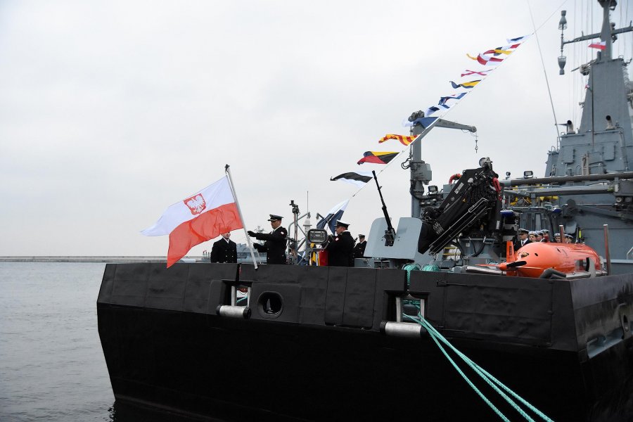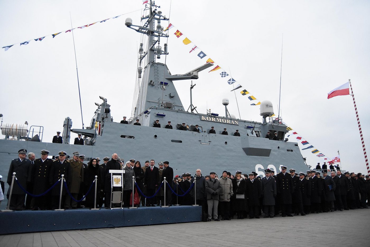 Od dziś Marynarka Wojenna poszczycić się może najnowocześniejszym niszczycielem min. Przy Nabrzeżu Pomorskim odbyła się uroczystość podniesienia bandery na okręcie ORP Kormoran. Dowódcą tej wyjątkowej jednostki został kmdr ppor. Michał Dziugan. W uroczystości wzięli udział Minister Obrony Narodowej, parlamentarzyści, przedstawiciele kadry dowódczej Sił Zbrojnych RP, władz samorządowych oraz przemysłu stoczniowego.Dziś przypada 99. rocznica utworzenia nowożytnej Marynarki Wojennej w Polsce, na mocy dekretu wydanego przez Józefa Piłsudskiego. To również 390. rocznica zwycięskiej bitwy pod Oliwą będącej największym osiągnięciem floty z czasów I Rzeczypospolitej. Data uroczystości podniesienia bandery na pierwszym od 23 lat nowym okręcie zbudowanym w polskiej stoczni nie była więc przypadkowa. Umowę na budowę jednostki podpisano pod koniec 2013 roku. W 2015 zakończyła się jej budowa, a od połowy 2016 roku ORP Kormoran przechodził wszechstronne próby. Dziś oficjalnie został wcielony do służby.W tym szczególnym dniu dla Marynarki Wojennej padły również bardzo ważne i długo wyczekiwane słowa:– Marynarka Wojenna zostanie przywrócona morzu i Gdyni. Decyzje zostały podjęte – powiedział podczas uroczystości Antoni Macierewicz, Minister Obrony Narodowej. ORP „Kormoran” jest pierwszym z serii trzech nowoczesnych niszczycieli min, które mają trafić do 13. Dywizjonu Trałowców wchodzącego w skład 8. Flotylli Obrony Wybrzeża. Wybudowany został przez Konsorcjum, którego trzon tworzą: gdańska stocznia Remontowa Shipbuilding S.A. (lider) oraz gdyński Ośrodek Badawczo-Rozwojowy Centrum Techniki Morskiej S.A. Okręt będzie mógł pływać po wodach Bałtyku i Morza Północnego oraz w ramach działalności operacyjnej prowadzonej w składzie zespołów zadaniowych NATO, w każdym rejonie świata. Do jego głównych zadań należeć będą poszukiwanie, klasyfikacja, identyfikacja i zwalczanie min morskich, rozpoznanie torów wodnych, przeprowadzanie jednostek przez akweny zagrożenia minowego, stawianie min oraz zdalne sterowanie samobieżnymi platformami przeciwminowymi.– ORP Kormoran jest powodem do dumy. Jest to wyspecjalizowana jednostka, której można nam zazdrościć. Zanim jednak okręt osiągnie gotowość bojową musi zostać spełnionych kilka czynników. Przede wszystkim musimy okręt postawić. Na razie mamy platformę, która jest sprawdzona podczas badań kwalifikacyjnych. Mamy załogę, która jest po elementarnym szkoleniu u producentów poszczególnych systemów bojowych. Teraz należy zgrać te elementy w czasie i przestrzeni. Musimy poznać się jako załoga, poznać możliwości okrętu, dowiedzieć się, co możemy zrobić, w jakim czasie i jak efektywnie. Wówczas przyjdzie czas na pierwszą działalność bojową – mówi dowódca jednostki został kmdr ppor. Michał Dziugan. I dodaje:– Mamy szereg zobowiązań międzynarodowych i sojuszniczych. Jesteśmy pełni entuzjazmu i zapału do pracy. Załoga aż rwie się do tego, aby wiedzę, która posiadła podczas szkoleń, móc wykorzystać w praktyce. A okręt ma kolosalne możliwości. Mamy ambicje, aby jeszcze w tym roku wziąć udział w dużym szkoleniu międzynarodowym w ramach Sojuszu Północnoatlantyckiego i móc przetestować jednostkę jako integralny element systemu wielonarodowych sił zadaniowych. Okręt ma długość 58,5 metra, szerokość przekraczającą 10 metrów i wyporność 830 ton. Kadłub wykonany jest z austenitycznej stali nierdzewnej, zapewniającej zmniejszenie wykrywalności pól fizycznych okrętu. Jego uzbrojenie stanowi 23-milimetrowa armata Wróbel II, a także trzy wielkokalibrowe karabiny maszynowe 12,7 mm oraz wyrzutnie rakiet Grom. Jednostka została wyposażona w system zarządzania walką SCOT-M, sonary oraz cztery typy pojazdów podwodnych: Saab Double Eagle Mark III, Kongsberg Hugin, Morświn oraz Głuptaki w dwóch wersjach – inspekcyjnej (służą do identyfikacji niebezpiecznych znalezisk) oraz bojowej (w razie potrzeby mogą same zdetonować minę). Napęd okrętu stanowią dwa pędniki cykloidalne Voith-Schneider’a napędzane przez dwa silniki wysokoprężne MTU o mocy 1000 kW – 1360 KM. Dzięki zastosowaniu tego typu napędu oraz wyposażeniu w dziobowy ster strumieniowy Schottel okręt posiada doskonałe zdolności manewrowe.– Mamy XXI wiek i jesteśmy szczęśliwi, że otrzymaliśmy takie nowoczesne narzędzie jakim jest ORP Kormoran. Od roku 2002 wysyłając okręty do Stałych Zespołów Sił Obrony Przeciwminowej NATO zdobyliśmy ogromną innowacyjną wiedzę. Nasze jednostki jednak były bardzo wysłużone. Dziś nie mamy powodów do wstydu. Posiadamy jeden z największych okrętów na świecie, a na pewno najnowocześniejszy, którego możliwości, na obecną chwilę, są nieograniczone. Liczymy na to, że niedługo zostanie podpisana umowa na dwie kolejne jednostki, z możliwością budowy kolejnych – mówi kmdr por. Piotr Sikora, dowódca 13. Dywizjonu Trałowców im. admirała floty Andrzeja Karwety. I dodaje:– Nowe niszczyciele min zastąpią obecne. ORP Kormoran jest nastepcą ORP Mewa, okrętu bardzo zasłużonego, z 50-letnią historią. Kolejne nowe jednostki ORP Mewa i ORP Albatros zastąpią wysłużone ORP Czajka i ORP Flaming. Załoga jednostki ORP Kormoran liczy 45 osób. Dowódcą okrętu jest kmdr ppor. Michał Dziugan. Matką Chrzestną okrętu została Maria Jolanta Karweta, wdowa po admirale floty Andrzeju Karwecie. Po podniesieniu bandery Marynarki Wojennej okręt wszedł w skład 13. Dywizjonu Trałowców im. admirała floty Andrzeja Karwety, będący oddziałem taktycznym 8. Flotylli Obrony Wybrzeża w Świnoujściu. Okręty dywizjonu stacjonują w Porcie Wojennym w Gdyni i właśnie tam na co dzień będzie można zobaczyć naszego nowoczesnego niszczyciela min. Galeria zdjęć Pobierz galerię 28 listopada przy Nabrzeżu Pomorskim odbyła się uroczystość
