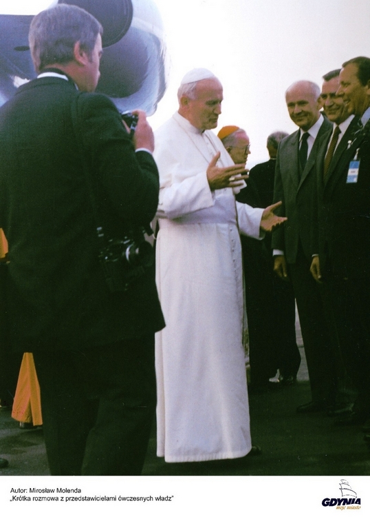 11 czerwca 1987 roku Jan Paweł II w swojej trzeciej pielgrzymce do Polski odwiedził Gdynię, gdzie spotkał się z setkami tysięcy wiernych. Było to jedno z najważniejszych wydarzeń w historii miasta, a także w historii okrętu ORP Mewa, na pokładzie którego Ojciec Święty udał się w dalszą apostolską podróż. Z okazji tego wydarzenia w weekend ORP Mewa zostanie udostępniony zwiedzającym. 30 lat temu Jan Paweł II na skwerze Kościuszki wygłosił specjalną homilię do ludzi morza. To wówczas padły tak ważne słowa: - Jako pierwszą pozdrawiam Gdynię. Chociaż rosłem na ziemi polskiej daleko stąd, to jednak mogę powiedzieć, że rosłem równolegle z tym miastem, które stało się poniekąd symbolem naszej drugiej niepodległości. Wraz z całym moim narodem nie przestaję żywić wdzięczności dla tych, którzy to miasto, ten port bałtycki, tworzyli tutaj od podstaw, poniekąd z niczego. Mam na myśli zwłaszcza wielkiego Polaka, inżyniera Eugeniusza Kwiatkowskiego, a wraz z nim wszystkich jego współpracowników. Byli oni przedstawicielami tego pokolenia, które po wiekach na nowo zrozumiało, że dostęp do morza jest elementem konstytutywnym niepodległości Polski. Jednym z elementów bardzo doniosłych. Gdynia stała się więc wyrazem nowej woli życia narodu. Wyrazem przekonywającym i skutecznym. Do Gdyni Ojciec Święty przyleciał samolotem, który wylądował na wojskowym lotnisku w Babich Dołach. Jednak w dalszą podróż, na spotkanie z młodzieżą na Westerplatte udał się drogą morską, na pokładzie okrętu ORP Mewa 13. Dywizjonu Trałowców. - Jest jeszcze, dla mnie osobiście, dodatkowy motyw radości, że tutaj mogliśmy się spotkać, że tu jestem: no cóż, ja nie jestem człowiekiem morza, ja z rodu jestem człowiekiem gór, z drugiej strony Polski. Jeżeli w te strony kierowały się moje kroki, to raczej ku jeziorom niż ku morzu. Dzisiaj wreszcie przychodzę nad morze, wyznaję to moje zaniedbanie, że tu mało chodziłem i pragnę to odkupić. Właśnie dlatego, żeby to odkupić, to moje zaniedbanie życiowe — mam teraz morzem pojechać do Gdańska. Tak ustanowili. Niech będzie pochwalony Jezus Chrystus! Obecność tak znamienitej osoby na pokładzie wymagała odpowiedniego przygotowania okrętu. Wybór ORP Mewy (numer burtowy „623”) nie był przypadkowy. Trałowiec ten był dostatecznie duży i bezpieczny, a do tego zwrotny na tyle, aby bez problemu przepłynąć przez wąski kanał Motławy przy Zielonej Bramie. Jednocześnie okręt dowodzony był przez najbardziej doświadczonego dowódcę kmdr. por. Dariusza Przedpełskiego, posiadał dobrze wyszkoloną załogę i wielokrotnie zdobywał miano najlepszego okrętu w współzawodnictwie. Równolegle jednak przygotowywany był rezerwowy bliźniaczy trałowiec Albatros („618”), którego dowódcą był kpt. mar. Sławomir Tkaczyk. Na czas wizyty Ojca Świętego, z okrętu będącego okrętem bojowym zdemontowano całe uzbrojenie, wszystko, co mogło stwarzać potencjalne zagrożenie. W zamian, w części dziobowej okrętu, wystawiono specjalny podest, na którym stanęły fotele typu lotniczego zdemontowane z wodolotów, w tym jeden podwójny dla papieża. Dla potrzeb Jana Pawła II została również udostępniona kabina dowódcy okrętu. Dla załogi okrętu goszczenie na pokładzie głowy Kościoła była wyjątkowym i niezapomnianym przeżyciem. Szczególną chwilą było powitanie Jana Pawła II. To wtedy po raz pierwszy w historii Marynarki Wojennej przesunięto zachód słońca. - Przedłużająca się msza dla ludzi morza wymusiła „ponowne wstrzymanie słońca” , jak to ujął dowódca okrętu. Zgodnie z ceremoniałem morskim w momencie zachodu słońca powinna zostać spuszczona bandera Marynarki Wojennej, proporzec Marynarki Wojennej oraz wielka gala banderowa. Okręt pozostałby zatem bez elementów, które miały uhonorować przybycie tak znamienitego gościa i podkreślić doniosłość tego wydarzenia. Decyzją wyższych przełożonych wszystko zostało przesunięte do momentu przybycia papieża na pokład okrętu, a stało się to już po zachodzie – wspomina ostatni z listy „papieskiej załogi” wciąż w służbie kmdr Waldemar Modzelewski, ówczesny zastępca dowódcy okrętu ORP Mewa. Okręt zacumowany był za rufą jednostki ORP Błyskawica i czekał w pełnej gotowości.- Już szarzało, byliśmy w alarmie manewrowym, gdy po godzinie 20.00, Ojciec Święty wraz z towarzyszącymi osobami przybył pieszo na okręt. Miał na sobie, jak pamiętam, czerwoną pelerynę. Widać go było z daleka, jak szedł w otoczeniu kardynałów. Stojąc przy trapie, podanym wyjątkowo na dziobie, byłem bardzo wzruszony, czułem się jakbym miał za chwilę zemdleć. Na burcie stało sześciu ubranych na galowo trapowych, przewidzianych zgodnie z ceremoniałem do powitania głowy państwa. Powitałem Ojca słowami: "Witam Waszą Świątobliwość i zapraszam na miejsce na dziobie okrętu". Pamiętam, że tuż za papieżem wchodził na okręt kard. Macharski, który, podając mi rękę, powiedział: "Jestem Macharski z Krakowa". Chwilę później udałem się na główne stanowisko dowodzenia i odpłynęliśmy do Sopotu. Zacumowaliśmy przy molo skąd Ojciec Święty udał się na nocleg do Kurii Metropolitarnej w Gdańsku-Oliwie – mówił były dowódca okrętu ORP Mewa 13. Dywizjonu Trałowców kmdr por. rez. Dariusz Przedpełski na łamach dwutygodnika „Helska Bliza” z 2005 roku. Następnego dnia, 12 czerwca około godz.7:00 okręt ORP Mewa z Ojcem Świętym na pokładzie wypłynął z Sopotu w kierunku Westerplatte. Oba rejsy nie trwały długo, ok. 30.minut. Mimo to nie zabrakło momentów, które szczególnie zapadły w pamięć załodze. W trakcie pobytu papieża i innych duchownych na okręcie nakazano załodze unikać korytarzy, po których mogli poruszać się goście. - Ale wiadomo jak to w życiu bywa, szczególnie gdy to załoga odpowiada