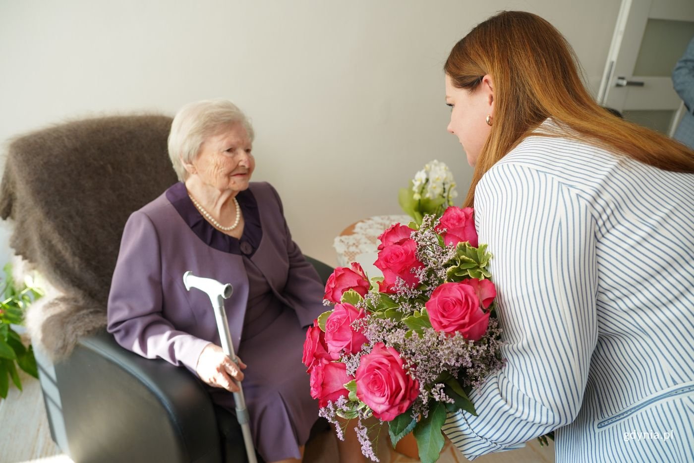 Pani Barbara Świtalska dołączyła do grona gdyńskich stulatek. W dniu urodzin jubilatkę odwiedziła prezydent Gdyni Aleksandra Kosiorek, która złożyła najserdeczniejsze życzenia, wręczyła kwiaty oraz upominek. Prezydent Gdyni Aleksandra Kosiorek odwiedziła panią Barbarę Świtalską z okazji 100. urodzin. Złożyła najserdeczniejsze życzenia, a także wręczyła bukiet kwiatów i drobny upominek. W imieniu wszystkich gdynian pragnę złożyć najserdeczniejsze życzenia z okazji urodzin. Serdecznie gratuluję wyjątkowego jubileuszu. Widzę, że jest pani w fantastycznym zdrowiu, bardzo się cieszę i w imieniu prezydenta miasta, a także wszystkich urzędników i mieszkańców składamy najserdeczniejsze życzenia i życzymy następnych 100 lat w zdrowiu – mówi Aleksandra Kosiorek, prezydent Gdyni. Wideo i montaż: Sławomir OkońJubilatka urodziła się 7 listopada 1925 roku w Puszkarni na terenie ówczesnego Związku Socjalistycznych Republik Radzieckich. Podczas II wojny światowej 16-letnia pani Barbara trafiła na roboty do Niemiec, gdzie w Bohum pracowała w fabryce i przytułku prowadzonym przez katolickie siostry zakonne. Ze względu na bombardowania w 1943 r. uciekła z robót. W wyniku szeregu zdarzeń trafiła na przymusowe roboty w gospodarstwie rolnym w Prusach Wschodnich. To właśnie tam poznała Jana Mrozewskiego, przyszłego męża. Na przełomie lat 1944/1945 wspólnie uciekli. Niestety, po drodze rozdzielili się i pani Barbara, na podstawie informacji uzyskanych od Jana, samodzielnie dotarła w okolice Lipusza, gdzie została przyjęta przez kaszubską rodzinę przyszłego męża. Po jakimś czasie przybył też Jan. W 1945 r. wzięli ślub. Po zawarciu małżeństwa przenieśli się do Gdyni. W jednopokojowym mieszkaniu na Demptowie wychowywali czworo dzieci. Pani Barbara zajmowała się potomstwem, przydomową hodowlą i warzywniakiem, a mąż pracował jako zdolny krawiec. W latach sześćdziesiątych przeprowadzili się do Chyloni. Gdy pani Barbara została wdową, samotnie wychowywała dzieci. Zatrudniła się w kiosku „Ruchu" na terenie Dalmoru. Po kilku latach poznała Tadeusza i ponownie wyszła za mąż. Wspólnie zamieszkali na Chyloni, gdzie pani Barbara mieszka do dziś. Po przejściu na emeryturę, przez kilka lat pracowała w Szkole Morskiej w Gdyni. Jednak z czasem postanowiła całkowicie zrezygnować z pracy i spędzać czas z rodziną. Doczekała się 8 dzieci, 16 wnucząt, 28 prawnucząt i 5 praprawnucząt.Pani Barbarze serdecznie gratulujemy wyjątkowego jubileuszu i życzymy wielu pięknych chwil w zdrowiu. Galeria zdjęć Pobierz galerię Na zdjęciu: prezydent Gdyni Aleksandra Kosiorek, kierowniczka Urzędu Cywilnego Inocenta Nycz, krewni jubilatki (fot. Magdalena Starnawska) Pobierz zdjęcie Prezydent Gdyni Aleksandra Kosiorek złożyła życzenia oraz wręczyła jubilatce kwiaty i drobny upominek (fot. Magdalena Starnawska) Pobierz zdjęcie Warunki pobierania Wszelkie prawa do zdjęć lub grafik prezentowanych w ramach portalu, należą do Prowadzącego portal lub do podmiotów z nim współpracujących i podlegają ochronie prawnej. Prowadzący portal zezwala na kopiowanie i przedstawianie utworów jedynie w celach niekomercyjnych oraz pod warunkiem zachowania go w oryginalnej postaci i zachowaniem kontekstu tematu, do którego zostało wykorzystaneprzez redakcję gdynia.pl. Opublikowane materiały powinny zawsze zawierać źródło, czyli adres strony www.gdynia.pl. Na publikowanie utworów w innych celach wymagana jest zgoda właściciela strony czyli Prowadzącego portal. Opublikowano: 07.11.2025 15:17 Autor: Magdalena Starnawska (magdalena.starnawska@gdynia.pl) Zmodyfikowano: 07.11.2025 15:56 Zmodyfikował: Aleksandra Dylejko