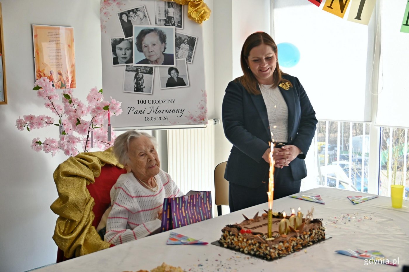 Pani Marianna Grabowska dołączyła do grona gdyńskich stulatków. W tym szczególnym dniu jubilatkę odwiedziła prezydent Aleksandra Kosiorek. Sto lat to piękny wiek. Do osób, które mogą się nim poszczycić, dołączyła kolejna Gdynianka. W środę, 18 marca świętowała Marianna Grabowska. Jubilatkę odwiedziła prezydent Gdyni Aleksandra Kosiorek, która życzyła jej zdrowia i wszystkiego najlepszego, a także wręczyła kwiaty i drobny upominek. W imieniu wszystkich mieszkańców Gdyni przyszłam Pani złożyć życzenia. Zdrowia przez następne 100 lat, tak dobrego jak dzisiaj, widzę, Pani ma – powiedziała Aleksandra Kosiorek, prezydent Gdyni.Dziękuję bardzo, że o takiej sprzedawczyni sklepu Pani Prezydent pamiętała i mnie odwiedziła. To dla mnie wielki zaszczyt – mówiła Marianna Grabowska, jubilatka. Wideo i montaż: Przemysław Dopke Podczas spotkania jubilatka zdradziła swoją receptę na długowieczność. Według niej należy dbać o zdrowie i prowadzić spokojny tryb życia. Trzeba dobrze się odżywiać, przesypiać noce, nie bawić się zbyt dużo na różnych imprezach, dbać o zdrowie, o higienę. I to wystarczy. Spokojny tryb życia prowadzić, a nie hulaszcze życie. I wtedy się dożyje długich lat – podkreśla pani Marianna. Stulatka Marianna Grabowska podczas przyjęcia urodzinowego (fot. Magdalena Czernek) Pani Marianna Grabowska urodziła się 18 marca 1926 roku. Mieszkała w Mirotkach na Kociewiu, jednak zawsze miała poczucie, że urodziła się, by żyć w mieście. Do Gdyni przyjechała w 1949 roku i już tutaj została, bo zakochała się w naszym mieście. Przyjechałam Gdynię odwiedzić, zwiedzić, bo miałam koleżankę, z którą byłam bardzo zaprzyjaźniona. Tak mi się spodobało, że zostałam na stałe. Morze, zatoka i w ogóle samo miasto. Wtedy to było nowe miasto. Akurat Gdynia powstała wtedy, kiedy ja się urodziłam. W ogóle podobało mi się, jak zwiedziłam, obeszłam ulice i dawniej jak ja przyjechałam, to jeszcze Gdynia była mała. Później to się wszystko zmieniło. Gdynia się bardzo zmieniła przez te lata. Jest nie do poznania – opowiada Marianna Grabowska. W latach 1949-1952 pracowała w Powszechnym Domu Towarowym na Pl. Kaszubskim jako ekspedientka. Następnie zatrudniono ją w porcie, w oddziale zaopatrzenia pracowniczego jako bufetową. Później przez 25 lat pracowała w Społem, m.in. jako kierowniczka w sklepie przy ul. Świętojańskiej.Pani Marianna dostała mieszkanie z przydziału na Witominie, gdzie spędziła większość swojego gdyńskiego życia. Na emeryturze dorabiała, pracując w ochronie mienia.Chodziła do teatru, regularnie odwiedzała trzy gdyńskie kina. Miała dużo znajomych i przyjaciół. A dziś ma poczucie, że dobrze przeżyła swoje życie. Dała się poznać jako osoba ciepła, pogodna, radosna. Zawsze chętna, by porozmawiać, dostrzegająca dobre momenty i okoliczności. Ciesząca się z małych rzeczy.Obecnie jest podopieczną Zakładu Opiekuńczo-Leczniczego „Senectus” w Centrum Medycznym Smoluchowskiego w Gdańsku, gdzie odbyła się uroczystość urodzinowa. Galeria zdjęć Pobierz galerię Tablica z kolażem zdjęć pani Marianny na przyjęciu urodzinowym (fot. Magdalena Czernek) Pobierz zdjęcie Prezydent Gdyni Aleksandra Kosiorek podczas przyjęcia urodzinowego stulatki pani Marianny (fot. Magdalena Czernek) Pobierz zdjęcie Prezydent Gdyni Aleksandra Kosiorek, Innocenta Nycz - kierowniczka Urzędu Stanu Cywilnego w Gdyni oraz przedstawiciel Szpitali Pomorskich podczas przyjęcia urodzinowego pani Marianny (fot. Magdalena Czernek) Pobierz zdjęcie Prezydent Gdyni Aleksandra Kosiorek oraz jubilatka wraz z synem podczas spotkania urodzinowego (fot. Magdalena Czernek) Pobierz zdjęcie Prezydent Gdyni Aleksandra Kosiorek, Innocenta Nycz - kierowniczka Urzędu Stanu Cywilnego w Gdyni oraz przedstawiciel Szpitali Pomorskich podczas przyjęcia urodzinowego pani Marianny (fot. Magdalena Czernek) Pobierz zdjęcie Prezydent Gdyni Aleksandra Kosiorek podczas rozmowy z panią Marianną Grabowską (fot. Magdalena Czernek) Pobierz zdjęcie Warunki pobierania Wszelkie prawa do zdjęć lub grafik prezentowanych w ramach portalu, należą do Prowadzącego portal lub do podmiotów z nim współpracujących i podlegają ochronie prawnej. Prowadzący portal zezwala na kopiowanie i przedstawianie utworów jedynie w celach niekomercyjnych oraz pod warunkiem zachowania go w oryginalnej postaci i zachowaniem kontekstu tematu, do którego zostało wykorzystaneprzez redakcję gdynia.pl. Opublikowane materiały powinny zawsze zawierać źródło, czyli adres strony www.gdynia.pl. Na publikowanie utworów w innych celach wymagana jest zgoda właściciela strony czyli Prowadzącego portal. Opublikowano: 18.03.2026 16:20 Autor: Magdalena Czernek (magdalena.czernek@gdynia.pl) Zmodyfikowano: 18.03.2026 16:24 Zmodyfikował: Magdalena Czernek