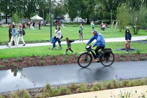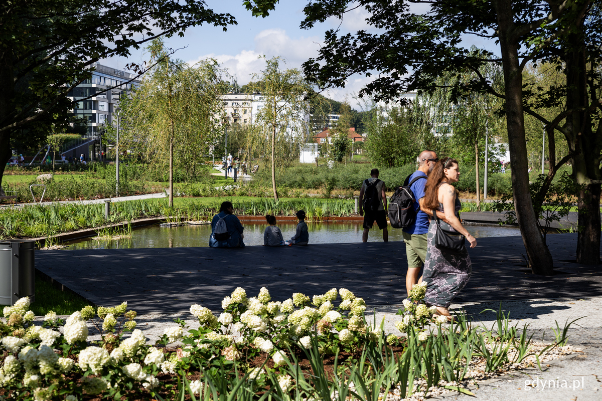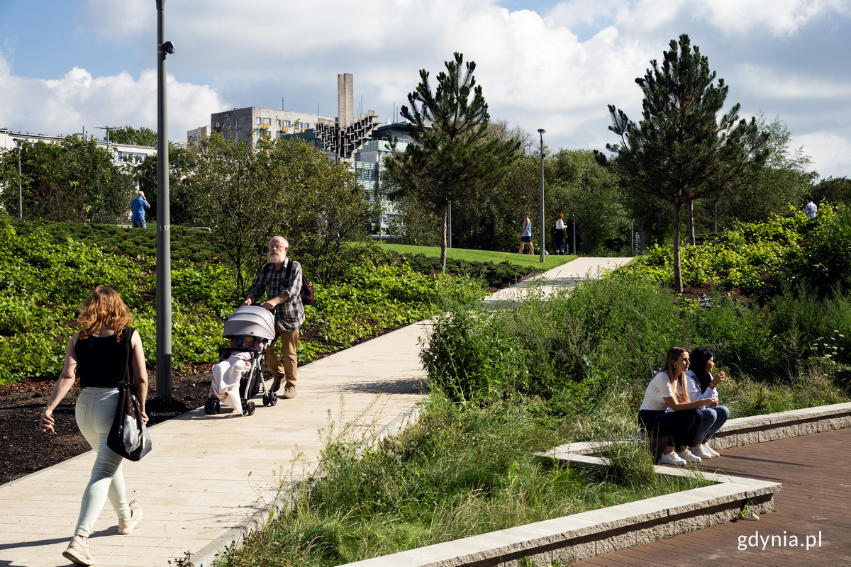 Tutaj będzie można odpoczywać, spędzać czas z bliskimi i przyjaciółmi oraz podziwiać przyrodę o każdej porze roku – Park Centralny jest już projektem kompletnym. We wtorek, 29 sierpnia oficjalnie oddano do użytku ostatni, trzeci etap inwestycji i tym samym zakończono wszystkie prace. Centrum Gdyni zyskało nie tylko nową, zieloną przestrzeń z różnymi strefami aktywności. Pod ziemią zaparkuje także 270 samochodów. Nowe, zielone płuca Gdyni oddychają już w pełni! Domykamy jedną z największych inwestycji ostatnich lat w Gdyni, Park Centralny – miejsce rekreacji, odpoczynku i aktywności na świeżym powietrzu w samym centrum miasta, rzut beretem od najważniejszych usług i nadmorskiego bulwaru.We wtorek, 29 sierpnia oficjalne otwarcie trzeciego etapu zwieńczyło kilkuletni proces powstawania parku. Przypomnijmy, że pierwsze koncepcje i konsultacje społeczne, w których gdynianie wskazywali na oczekiwane funkcje i wyposażenie odbyły się jeszcze w 2017 roku; w 2019 do użytku oddano etap pierwszy, a rok później – etap drugi. Najbardziej kosztowna i wyczekiwania, główne ze względu na dodatkowe funkcje była właśnie część trzecia, która teraz jest już do dyspozycji gdynian.Teren, na którym powstał trzeci, ostatni etap Parku Centralnego w Gdyni, fot. Konrad Maćkowiak Idea, która powstała dzięki gdynianom Mieszkańców, którzy pomimo niesprzyjającej pogody pojawili się w Parku Centralnym powitał i zaprosił do świętowania prezydent Gdyni, Wojciech Szczurek. Prezydent Gdyni, Wojciech Szczurek (na zdjęciu, przy mikrofonie) powitał mieszkańców i zaprosił ich do aktywności na terenie ostatniego etapu Parku Centralnego, fot. Kamil ZłochNa znak premiery ostatniego etapu na sadzawkę, która zimą zamieni się w miejską ślizgawkę wypłynęły małe łódki z rąk najmłodszych gdynian, a w tle – woda trysnęła po raz pierwszy w nowej fontannie. - Właśnie w rozmowie z mieszkańcami, właśnie słuchając tego, o czym marzą gdynianie zrodziła się idea, aby w centrum miasta powstał jeden z największych tego typu parków. (…) Jeszcze nie tak dawno, parę lat temu, w planach zagospodarowania przestrzennego miało tu powstać wielkie centrum handlowe, nowa siedziba urzędu miasta i wielki plac miejski, rynek, ale świat się zmienia. W rozmowach z mieszkańcami o tym, jak ukształtować tę przestrzeń zrodziła się idea powstania parku. (…) To, że ten park powstawał w konsultacji sprawia, że przestrzeń parku, funkcje, one odpowiadają na potrzeby różnych grup. To bardzo ważne w życiu miasta, żebyśmy patrzyli zarówno na osoby młode, które chcą aktywnie spędzać czas, stąd ścieżka do biegania, ścieżka dla osób, które chcą jeździć na rolkach, ale także strefy seniorów, strefy dedykowane osobom z niepełnosprawnościami, dostępność tego obiektu – mówił podczas otwarcia Wojciech Szczurek, prezydent Gdyni. Po symbolicznej inauguracji jednych z wielu atrakcji trzeciej – ostatniej – części Parku Centralnego przyszła pora na spacer. Tłum mieszkańców przemierzał nowe alejki i ścieżki, aby przyglądać się kolejnym strefom i infrastrukturze, która tworzy parkową przestrzeń. Jest w czym wybierać, dla osób w każdym wieku i o każdym poziomie sprawności ruchowej – w myśl zasad uniwersalnego projektowania.Trzeci etap Parku Centralnego, fot. Przemysław Kozłowski Sprawdź parkowe strefy i wybierz aktywność dla siebie Co znajdziemy na terenie rozciągającym się od skrzyżowania ulicy Świętojańskiej i alei Piłsudskiego aż do rozbudowanego skateparku, czyli w ramach trzeciego etapu? To mnogość zieleni, miejsc do wypoczynku i wydzielonych stref, w których znajdziemy propozycje konkretnych aktywności.Trzeci etap Parku Centralnego w Gdyni z lotu ptaka, fot. Konrad MaćkowiakKażdą z nich przedstawili przy okazji otwarcia reprezentanci miasta, którzy w roli gospodarzy oprowadzili gości po terenie inwestycji: wiceprezydenci Katarzyna Gruszecka-Spychała, Michał Guć, Marek Łucyk i Bartosz Bartoszewicz, sekretarz i dyrektor Urzędu Miasta Gdyni Rafał Klajnert, przewodnicząca Rady Miasta Gdyni Joanna Zielińska i Ogrodnik Miasta Gdyni, Tadeusz Schenk.Mieszkańcy przeszli się po Parku Centralnym w towarzystwie przedstawicieli miasta - na zdjęciu o zieleni w parku opowiada Tadeusz Schenk, Ogrodnik Miasta Gdyni, fot. Kamil ZłochTo elementy, które złożyły się na trzeci etap Parku Centralnego w Gdyni: polana piknikowa; siedziska terenowe; staw biologiczny; zimowa ślizgawka, w którą będzie można przekształcić wodną sadzawkę (wraz z m.in. wypożyczalnią łyżew); fontanna; tor wrotkarski/rolkarski i trasa biegowa (domknięcie pętli z drugim etapem); pawilon gastronomiczny; parking podziemny dla 270 aut z kilkoma wejściami/wyjściami; pomieszczenia techniczne parku. Parking, czyli rozwiązanie komunikacyjnych wyzwań Jednym z kluczowych elementów, które odpowiadają nie tylko potrzebom mieszkańców oczekujących nowej, zielonej przestrzeni, ale i tych, którzy chcą odwiedzić Śródmieście w celu załatwienia spraw czy skorzystania z lokalnych usług jest wspomniany podziemny parking.Parking podziemny na 270 samochodów pod Parkiem Centralnym, fot. Kamil ZłochPod „frontową” częścią parku, na terenie dawnego skweru Plymouth poniżej nowych nasadzeń skrył się duży, podziemny obiekt, który zawiera aż 270 miejsc parkingowych dla aut. Mieszkańcy (i wszyscy, który będą mieć taką potrzebę) będą mogli zaparkować tutaj taniej, niż w Śródmiejskiej Strefie Płatnego Parkowania, a estetyka otoczenia oczyści się z zaparkowanych przy ulicach pojazdów. Co ważne, z okazji zakończenia prac i otwarcia trzeciego etapu najbliższe dni postoju będą darmowe. - Parking dzisiaj, i do niedzieli włącznie, będzie dla mieszkańców naszego miasta bezpłatny – zapowiedział podczas otwarcia Marek Łucyk, wiceprezydent Gdyni ds. rozwoju. Zie