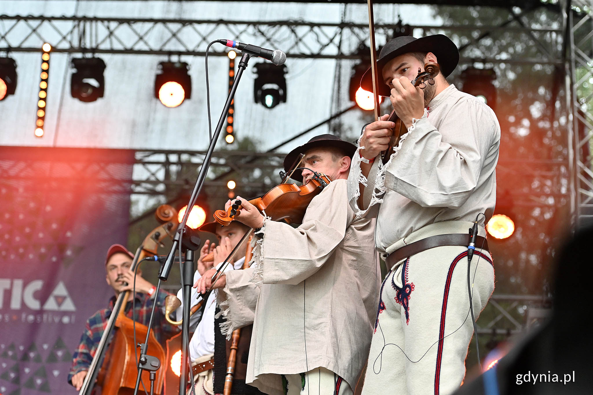 Co tam rzęsisty deszcz i pochmurna aura, gdy na scenie gorące rytmy? Piątek, drugi dzień 18. edycji festiwalu Globaltica, był wyjątkowo udany. Gości festiwalu nie przegoniła pogoda, a dobra energia i świetne rytmy płynące ze sceny do późnego wieczora udowodniły, że za sukcesem festiwalu stoi nie tylko znakomity dobór artystów, ale i samo jego DNA, odnoszące się do wielokulturowości, szacunku dla przyrodniczego dziedzictwa, otwartości i tolerancji. Nie ma w Gdyni lata bez festiwalu Globaltica – i to od kilkunastu lat! Te festiwal kultur świata, na który uczestnicy czekają cały rok z niecierpliwością, już na stałe wpisał się w kalendarz letnich, gdyńskich imprez kulturalnych. W 2023 roku festiwalowi stuknęła przysłowiowa „osiemnastka”. Globaltica promująca wielokulturowość zaznajamia uczestników z tradycjami i religiami z różnych zakątków świata. To świetna okazja, by poznać inne kultury, wzbogacić swoją muzyczną bibliotekę o nowe pozycje, otworzyć się na to, co nowe i inne, wziąć udział w ciekawych warsztatach, a przede wszystkim – cudownie spędzić czas, bawiąc się w rytm muzyki, mającej nie tylko etniczne korzenie. To również świetna okazja to integracji i spotkania znajomych, bo na festiwal ściągnęli nie tylko mieszkańcy Trójmiasta. 18. edycja Globaltiki potrwa w tym roku od 20 do 22 lipca. Koncerty odbywają się w parku Kolibki i Gdyńskim Centrum Filmowym. Właśnie do parku Kolibki zawitaliśmy w piątek, 21 lipca. Zgodnie z programem tego wieczoru zagrali Piotr Damasiewicz i Into the Roots, Sahra Halgan, Ivo Papasov oraz Septeto Santiaguero. Globaltica, 2. dzień festiwalu. Co tam niepogoda, gdy muzyka taka dobra! Fot. Michał Puszczewicz Warsztaty tańca na początek Już od 16:00 na polanie przed Wozownią rozpoczęły się warsztaty gruzińskiego tańca, prowadzone przez członków zespołu Lela Nakeuri & Caucasus. Wzięło w nich udział około 20 osób. Warto podkreślić, że Lela Nakeuri & Caucasus to również artyści tegorocznej Globaltiki, prezentujący piękno gruzińskich polifonii z regionu Pszawi. Lela to młoda wokalistka z górskiego regionu Pszawi we wschodniej Gruzji. Od dzieciństwa wykonuje tradycyjne pieśni. Ukończyła Uniwersytet Teatru i Kina Shota Rustaveli, posiada również dyplom w dziedzinie kapelmistrzostwa. Jest członkinią rodzinnego zespołu Nakeuri, a od 2018 roku główną wokalistką projektu muzycznego Caucasus stworzonego wspólnie z kilkoma z najważniejszych muzyków współczesnej Gruzji. Grają m.in. na tradycyjnych instrumentach, takich jak panduri czy chonguri (instrumenty strunowe), a także doli (rodzaj bębna). Połączyła ich chęć kultywowania tradycji przodków i miłość do lokalnej muzyki. W swoim bogatym repertuarze wykorzystują tradycyjne pieśni gruzińskie, a także własne kompozycje. Globaltica, 2. dzień festiwalu. To festiwal dla małych i dużych. Fot. Michał Puszczewicz Etniczny wstęp Piątkowe koncerty rozpoczęły się od występu Piotra Damasiewicza i Into the Roots. Piotr Damasiewicz to wybitny polski trębacze jazzowy. Jego samego oraz jego trio Into the Roots wspomogli uznani muzycy z Beskidów. Zespół operował na scenie zarówno zasłyszanymi liniami melodycznymi etnicznych pieśni, jak i autorskimi kompozycjami inspirowanymi muzyką korzenną. Charakterystyka gry oscyluje pomiędzy otwartą improwizacją osadzoną w jazzie i free jazzie a mocnym groovem. Ważnym elementem są też motywy transowe, które podkreślają etniczny charakter ich twórczości. Globaltica, 2. dzień festiwalu. Piotr Damasiewicz i Into the Roots. Fot. Michał Puszczewicz Energia, która porwała do tańca Sahra Halgan, wokalistka i aktywistka kulturalna oraz światowa ambasadorka Somalilandu z miejsca skradła serca wszystkich, czekających na jej występ i przyciągnęła pod scenę prawdziwy tłum. Artystka z głosem o charakterystycznym vibrato, zaprezentowała energetyczną mieszankę oryginalnych kompozycji i tradycyjnych somalijskich piosenek wykonywanych przy akompaniamencie przesterowanych gitar, afrykańskich instrumentów perkusyjnych i klawiszy. Globaltica, 2. dzień festiwalu. Sahra Halgan porwała wszystkich energią swojej muzyki i osobowości. Fot. Michał Puszczewicz Po bałkańsku i kubańsku Występ Ivo Papasova był gratką dla miłośników klimatów bałkańskich. Jest to bowiem postać legendarna, wirtuoz klarnetu i twórca współczesnej muzyki bałkańskiej. Na żywo zaczął grać ze swoim ojcem w wieku 12 lat, a mając 16 lat występował w zespole weselnym. Wykonuje bułgarską muzykę weselną, którą rozwinął w unikalny, osobisty styl – z motywami tureckimi, greckimi, bałkańskimi i romskimi, a także jazzowymi, funkowymi i rockowymi. Papasov może poszczycić się długą i błyskotliwą karierą. Zachwycali się nim światowej sławy muzycy, tacy jak: David Sanborn, Steve Vai, a także Frank Zappa. Za swoją twórczość zdobył wiele nagród, m.in. BBC World Music Award czy WOMEX 22 Artist Award przyznawany najbardziej zasłużonym artystom świata. Globaltica, 2. dzień festiwalu. Ivo Papaso. Fot. Michał Puszczewicz Z kolei późnym wieczorem publiczność bawiła się w w duchu Buena Vista Social Clubu. Zagrali wtedy Septeto Santiaguero. To zespół grający klasyczną muzykę kubańską właśnie w tym ukochanym przez Polaków stylu. Artyści przywieźli do Gdyni swoje największe przeboje prosto z Santiago de Cuba. Ich repertuar to podróż przez różne style. Kładą też nacisk na tradycyjne podejście do wykonania. Grupa nawiązuje do przeszłości i składa hołd jednej z najważniejszych form muzycznych Kuby, pokazując z ogromną witalnością, że tradycja septeto jest wciąż świeża i żywa. Wydarzenia towarzyszące: wystawy, spotkania, warsztaty dla dzieci Oprócz wspomnianych wcześniej warsztatów z gruzińskiego tańca, goście festiwalu mogli obejrzeć wystawę „Universal Wisdom. Wieczyta M