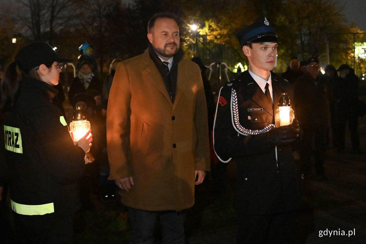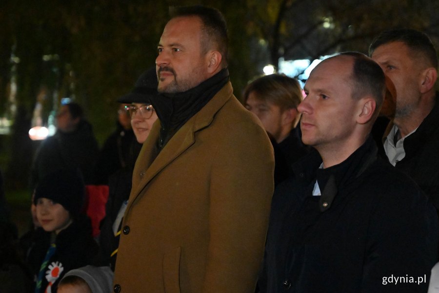 Piękna tradycja capstrzyku celebrowana była w piątek późnym popołudniem na Obłużu. Organizatorzy, przedstawiciele parlamentu, samorządu i różnych organizacji oraz mieszkańcy wspólnie oddali hołd pamięci wybitnym postaciom, walczącym o wolną i niepodległą Polskę. Historycznie capstrzyki organizowało się przed większością wojskowych i państwowych świąt. Takim wydarzeniem jest jutrzejsze Narodowe Święto Niepodległości. Stąd też w piątek, 10 listopada, o godz. 17:30, odbył się Capstrzyk Niepodległościowy przy tablicy płk. Stanisława Dąbka. Wzięli w nim udział m.in. przedstawiciele organizatorów, czyli Ochotniczej Straży Pożarnej i Młodzieżowej Drużyny Pożarniczej przy PKM w Gdyni, harcerze, członkowie Rady Dzielnicy Obłuże oraz mieszkańcy. Gdyński samorząd reprezentował wiceprezydent Gdyni ds. rozwoju Marek Łucyk. Na capstrzyku pojawił się także debiutujący w Sejmie X kadencji w roli posła Rafał Siemaszko, były piłkarz m.in. Arki Gdynia. - Capstrzyk to sygnał wieczornego apelu, ale też przemarszu oddziału wojska lub innej organizacji ulicami miasta. Odbywa się w przeddzień ważnych uroczystości, a jutro taką uroczystością, jednoczącą nasz naród, jest Narodowy Dzień Niepodległości. Ogromnie się cieszę, że mogę dziś być tutaj, na Obłużu, z mieszkańcami i przedstawicielami różnych organizacji, wspólnie złożyć hołd bohaterom, uczcić ich pamięć w tak uroczysty sposób. Jutro razem świętujemy Gdyńskie Urodziny Niepodległej, nie tylko na paradzie niepodległości, ale także sportowo. Kilka tysięcy osób jutro pobiegnie ulicami naszego miasta w Biegu Niepodległości. Zapraszam wszystkich do przyłączenia się do radosnego marszu, celebrującego naszą niepodległość – mówi Marek Łucyk, wiceprezydent Gdyni ds. rozwoju. Złożono znicze i oddano hołd przed 0tablicami płk. Stanisława Dąbka na skwerze im. I. Kwiatkowskiej, a także dh. Alfreda Dyducha przy ul. Unruga i adm. floty Józefa Unruga przy ul. Unruga 39. Warto przy tej okazji przypomnieć sylwetki tych wybitnych dla historii Polski i Gdyni osób. Stanisław Dąbek był pułkownikiem piechoty Wojska Polskiego; pośmiertnie awansowano go na stopień generała brygady. W przededniu wybuchu II wojny światowej został dowódcą Morskiej Brygady Obrony Narodowej i p.o. dowódcą Lądowej Obrony Wybrzeża. Aktywnie umocnił pozycje obronne, wzmocnił również uzbrojenie podległych mu jednostek. Dzięki jego staraniom stan liczebny polskich oddziałów w rejonie Gdyni wzrósł z 5 tys. do 15-18 tys. ludzi. Capstrzyk Niepodległościowy na Obłużu. Znicze przy tablicy płk. Stanisława Dąbka. Fot. Michał Puszczewicz Podczas kampanii wrześniowej dowodził całością sił lądowych zgromadzonych wokół Gdyni, organizując wypady zaczepne. Niestety wobec przewagi sił Wehrmachtu, a tym samym odcięcia polskiego wojska na Wybrzeżu od pozostałej części kraju, Dąbek ewakuował ok. 10 tys. żołnierzy na Kępę Oksywską. 19 września 1939 roku w rejonie Babich Dołów, w obliczu nieuchronnej klęski, odebrał sobie życie, nakazując swoim żołnierzom zaprzestanie walki po własnej śmierci. Alfred Dyduch w chwili śmierci miał tylko 14 lat. Ten gdyński harcerz i jednocześnie najmłodszy obrońca Kępy Oksywskiej zginął na Obłużu podczas kampanii wrześniowej, podczas prób nawiązania łączności z dowództwem. Do ostatnich chwil życia ściskał karabin, odważnie stawiając czoła śmierci, którą poniósł w wyniku odniesienia ciężkich ran. Capstrzyk Niepodległościowy na Obłużu. Młodzież z Młodzieżowej Drużyny Pożarniczej przy PKM w Gdyni oraz z Hufca ZHP Gdynia im. Bohaterów Gdyni przy tablicy upamiętniającej Alfreda Dyducha. Fot. Michał Puszczewicz Józef Unrug był niemiecko-polskim oficerem marynarki niemieckiej, a po odrodzeniu polskiej Marynarki Wojennej służył Polsce w stopniu oficera okrętów podwodnych. W czasie kampanii wrześniowej dowodził Obroną Wybrzeża. W październiku 1939 roku, w związku z zepchnięciem resztek odciętych sił polskich na Hel i brakiem sensu dalszej obrony, podjął decyzję o kapitulacji. Wraz z pozostałymi marynarzami trafił do niemieckiej niewoli, z której został uwolniony został w 1945 roku. Przebywając w niemieckich obozach odmówił wstąpienia do niemieckiej armii, a choć znał język niemiecki lepiej niż polski – urodził się bowiem w spolszczonej rodzinie o niemieckich korzeniach – odmawiał komunikacji w języku niemieckim. We wrześniu 2018 roku został pośmiertnie mianowany na stopień admirała floty. Capstrzyk Niepodległościowy na Obłużu. Uroczystości pod tablicą admirała Józefa Unruga. Fot. Michał Puszczewicz Po zakończeniu capstrzyku o godz. 18:30 rozpoczęły się „Zaduszki Żołnierskie” w kościele pw. św. Andrzeja Boboli (dolny kościół). Galeria zdjęć Pobierz galerię Capstrzyk Niepodległościowy na Obłużu. Na zdj. m.in. Rafał Siemaszko, były piłkarz m.in. Arki Gdynia, obecnie poseł na Sejm X kadencji. Fot. Michał Puszczewicz Pobierz zdjęcie Capstrzyk Niepodległościowy na Obłużu. Uroczystości pod tablicą płk Stanisława Dąbka. Fot. Michał Puszczewicz Pobierz zdjęcie Capstrzyk Niepodległościowy na Obłużu. Uroczystości pod tablicą płk Stanisława Dąbka. Na zdj. m.in. Marek Łucyk, wiceprezydent Gdyni ds. rozwoju i Rafał Siemaszko, były piłkarz m.in. Arki Gdynia, obecnie poseł na Sejm X kadencji wraz z asystentem. Fot. Michał Puszczewicz Pobierz zdjęcie Capstrzyk Niepodległościowy na Obłużu. Uroczystości pod tablicą płk Stanisława Dąbka. Na zdj. Marek Łucyk, wiceprezydent Gdyni ds. rozwoju. Fot. Michał Puszczewicz Pobierz zdjęcie Capstrzyk Niepodległościowy na Obłużu. Uroczystości pod tablicą płk Stanisława Dąbka. Na zdj. m.in. Marek Łucyk, wiceprezydent Gdyni ds. rozwoju i Rafał Siemaszko, były piłkarz m.in. Arki Gdynia, obecnie poseł na Sejm X kad