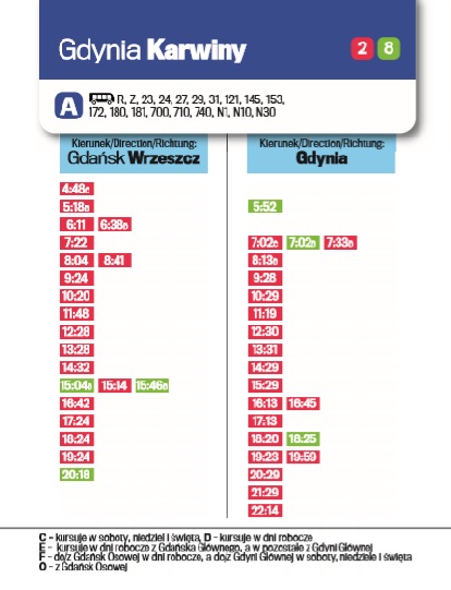 PKM Gdynia Stadion i Gdynia Karwiny ruszyły pełną parą. Wszyscy podróżni mogą już korzystać z tych dwóch nowych przystanków. Dziś zatrzymały się na nich pierwsze pociągi i pojawili się pierwsi pasażerowie. Z tej okazji, na obu gdyńskich stacjach, odbył się “Dzień otwarty nowych przystanków PKM”. Atrakcji nie brakowało.Gdynia Stadion i Gdynia Karwiny to dwa nowe przystanki Pomorskiej Kolei Metropolitalnej. Oficjalnie zostały one otwarte już w piątek, 8 grudnia. Jednak dopiero od dziś są w pełni dostępne i mogą z nich korzystać podróżni. Inwestycja usprawni komunikację nie tylko w mieście, ale też w całym regionie. Teraz z Gdyni można łatwo dojechać do Gdańska, na lotnisko, czy do Kościerzyny.10 grudnia, na obu stacjach, pojawili się pierwsi pasażerowie i mieszkańcy. Ci, którzy dotarli tam między godz. 10.00 a 13.00, mogli liczyć na atrakcje. Z okazji pierwszego dnia funkcjonowania tych stacji zorganizowano „Dzień Otwarty nowych przystanków PKM w Gdyni”. Pierwsi przybyli otrzymali wyjątkowe prezenty. PKM przygotowała na ten dzień 2,5 tysiąca pamiątkowych biletów. Zostały one zaprojektowane na wzór dawnych biletów kolejowych, jednak w nieco większym formacie. Wszystko po to, aby można je było wykorzystywać na co dzień, jako np. zakładkę do książki. Wprawdzie taki pamiątkowy bilet nie upoważniał do przejazdu pociągiem, ale ma inną moc. Jego posiadacze mogą odebrać bilet na mecz Arki Gdynia z Górnikiem Zabrze (12.12.2017 r., godz. 20.30) w promocyjnej cenie 1 zł, na trybunę GOSiR. Dodatkowo każdy otrzymywał lizaka, inspirowanego koleją, od miasta Gdynia.Ważnym wydarzeniem tego dnia było również odsłonięcie i poświęcenie pamiątkowej tablicy przy przystanku PKM Gdynia Karwiny (przy schodach prowadzących na peron 2, przy ul. Wielkopolskiej – od strony Wielkiego Kacka). Stanęła ona w pobliżu miejsca, w którym od 1947 roku stał przydrożny krzyż. Został on usunięty w związku z budową przystanku PKM Gdynia Karwiny. Uroczystość, organizowana wspólne z parafią św. Wawrzyńca, na terenie której stał ten krzyż, odbyła się o godz. 11.00. Wzięła w niej udział m.in. wiceprezydent Gdyni Katarzyna Gruszecka-Spychała. Przystanki Gdynia Stadion i Gdynia Karwiny mają dwa jednokrawędziowe perony o długości ponad 160 metrów. Obie stacje są utrzymane w jednakowym standardzie z zachowaniem charakterystycznej dla Pomorskiej Kolei Metropolitalnej czerwonej konstrukcji zadaszenia wejść zwanej „czerwoną wstążką”. Ich oprawa graficzna podkreśla jednak charakter gdyńskich stacji. Elementy zdobnicze na przystanku Gdynia Stadion nawiązują do dyscyplin sportowych uprawianych na obiektach Gdyńskiego Forum Sportu, sąsiadującego z koleją. W przypadku Karwin, grafika odnosi się do kolejowej tradycji i historii linii 201, przy której zbudowany jest przystanek PKM. Stąd wiatę zdobi wizerunek zabytkowej lokomotywy Ol 49, która kiedyś kursowała po tej trasie oraz szynobusu, jakim obecnie mieszkańcy podróżują z Gdyni do Gdańska i na Kaszuby. Koszt budowy obu przystanków wyniósł 25,5 mln złotych. W tym: 4,5 mln złotych przekazało miasto Gdynia, a 2,5 mln złotych to koszt budowy tzw. splotu torowego, finansowany przez PKP PLK.Więcej informacji o gdyńskich przystankach i zmianach, które wiążą się z ich uruchomieniem znajduje się tutaj.Poniżej zamieszczamy tabliczki z rozkładem jazdy z przystanków: Gdynia Główna, Gdynia Stadion, Gdynia Karwiny i Gdańsk Port Lotniczy.źródło: PKM Galeria zdjęć Pobierz galerię Nowe gdyńskie przystanki PKM ruszyły // fot. Karol Stańczak Pobierz zdjęcie Nowe gdyńskie przystanki PKM ruszyły // fot. Karol Stańczak Pobierz zdjęcie Nowe gdyńskie przystanki PKM ruszyły // fot. Karol Stańczak Pobierz zdjęcie Nowe gdyńskie przystanki PKM ruszyły // fot. Karol Stańczak Pobierz zdjęcie Nowe gdyńskie przystanki PKM ruszyły // fot. Karol Stańczak Pobierz zdjęcie Nowe gdyńskie przystanki PKM ruszyły // fot. Karol Stańczak Pobierz zdjęcie Nowe gdyńskie przystanki PKM ruszyły // fot. Karol Stańczak Pobierz zdjęcie Dzień Otwarty nowych gdyńskich przystanków PKM // fot. Karol Stańczak Pobierz zdjęcie Dzień Otwarty nowych gdyńskich przystanków PKM // fot. Karol Stańczak Pobierz zdjęcie Dzień Otwarty nowych gdyńskich przystanków PKM // fot. Karol Stańczak Pobierz zdjęcie Dzień Otwarty nowych gdyńskich przystanków PKM // fot. Karol Stańczak Pobierz zdjęcie Dzień Otwarty nowych gdyńskich przystanków PKM // fot. Karol Stańczak Pobierz zdjęcie Dzień Otwarty nowych gdyńskich przystanków PKM // fot. Karol Stańczak Pobierz zdjęcie Dzień Otwarty nowych gdyńskich przystanków PKM // fot. Karol Stańczak Pobierz zdjęcie Dzień Otwarty nowych gdyńskich przystanków PKM // fot. Karol Stańczak Pobierz zdjęcie Dzień Otwarty nowych gdyńskich przystanków PKM // fot. Karol Stańczak Pobierz zdjęcie Dzień Otwarty nowych gdyńskich przystanków PKM // fot. Karol Stańczak Pobierz zdjęcie Dzień Otwarty nowych gdyńskich przystanków PKM // fot. Karol Stańczak Pobierz zdjęcie Dzień Otwarty nowych gdyńskich przystanków PKM // fot. Karol Stańczak Pobierz zdjęcie Dzień Otwarty nowych gdyńskich przystanków PKM // fot. Karol Stańczak Pobierz zdjęcie Dzień Otwarty nowych gdyńskich przystanków PKM // fot. Karol Stańczak Pobierz zdjęcie Dzień Otwarty nowych gdyńskich przystanków PKM // fot. Karol Stańczak Pobierz zdjęcie Dzień Otwarty nowych gdyńskich przystanków PKM // fot. Karol Stańczak Pobierz zdjęcie Pierwsi pasażerowie już na nowych gdyńskich przystankach PKM // fot. Karol Stańczak Pobierz zdjęcie Pierwsi pasażerowie już na nowych gdyńskich przystankach PKM // fot. Karol Stańczak Pobierz zdjęcie Pierwsi pasażerowie już na nowych gdyńskich przystankach PKM // fot. Karol Stańczak Pobierz zdjęcie Pierwsi pasażerowie już na nowych gdyńskich przystankac