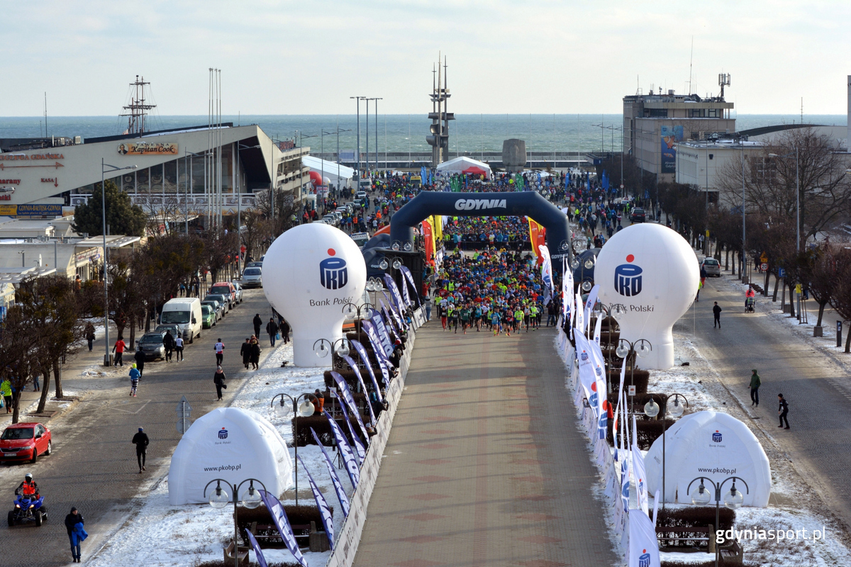 Tomasz Grycko zwyciężył w Biegu Urodzinowym z PKO Bankiem Polskim, który 12 lutego odbył się w Gdyni. Wśród kobiet najszybsza okazała się Monika Czapiewska. W biegu głównym na dystansie 10 kilometrów wystartowało 4199 uczestników. Kolejne 639 osób wzięło udział w sobotnich biegach młodzieżowych i marszach nordic walking. PKO Grand Prix Gdyni 2017 oficjalnie otwarte!Po raz pierwszy konkurencje wchodzące w skład Biegu Urodzinowego z PKO Bankiem Polskim zostały rozłożone na dwa dni. W sobotę na trasie pojawili się najmłodsi biegacze oraz miłośnicy nordic walking, z kolei niedziela zarezerwowana była dla uczestników biegu głównego.Na 10-kilometrowej trasie najszybszy był Tomasz Grycko z wynikiem 29:53. Biegacz z Władysławowa dominuje w PKO Grand Prix Gdyni od ponad dwóch lat, a dzisiejsza wygrana była dla niego szóstą z rzędu. Drugi był Arkadiusz Gardzielewski (30:31), a na najniższym stopniu podium stanął Marek Kowalski (30:45). Wśród kobiet zwyciężyła Monika Czapiewska (36:36). Jako druga linię mety przekroczyła Ewelina Paprocka (37:04), a trzecia była Kamila Pobłocka-Dobrowolska (37:27). Szczegółowe wyniki Biegu Urodzinowego z PKO Bankiem Polskim dostępne są na stronie www.gdyniasport.pl.Mróz nie zatrzymał biegaczyBieg Urodzinowy, zgodnie z tradycją, zainaugurował tegoroczne PKO Grand Prix Gdyni. - Po raz kolejny radośnie rozpoczęliśmy sezon biegowy i jednocześnie w sportowym stylu uczciliśmy kolejne urodziny Gdyni, już 91. Mimo że towarzyszyła nam ujemna temperatura, to atmosfera była bardzo gorąca! - powiedział wiceprezydent Gdyni Bartosz Bartoszewicz tuż po przekroczeniu linii mety.Tegoroczne hasło cyklu brzmi „Nie przestawaj biec". Zawodnicy wzięli te słowa do serca i dzielnie stawili czoła mrozowi. Ze śniegiem walczyć nie musieli, ponieważ trasa była doskonale przygotowana do zawodów.W tym roku, podczas Biegu Urodzinowego z PKO Bankiem Polskim, zawodnicy ruszyli w odwrotnym kierunku, niż w latach poprzednich. Ze Skweru Kościuszki pobiegli w stronę Bulwaru Nadmorskiego, czyli tam, gdzie zazwyczaj zaczynali myśleć o finiszu. - Mityczny podbieg ulicą Świętojańską, który zawsze był wielkim wyzwaniem, wreszcie prowadził z górki! Tym samym spełniło się jedno z moich marzeń - relacjonuje dyrektor Gdyńskiego Centrum Sportu Marek Łucyk, który także pokonał dzisiaj 10 km. Z kolejnymi wyzwaniami zawodnicy będą mierzyć się podczas trzech następnych biegów, z których każdy będzie prowadził inną trasą.Pierwsze medale wręczoneDo biegaczy trafiły pierwsze z zestawu czterech medali przygotowanych na tegoroczny cykl. „Krążki" nawiązują do nazw biegów oraz ich genezy. Na medalu Biegu Urodzinowego z PKO Bankiem Polskim widnieją ulice znajdujące się w samym centrum Gdyni, jednoznacznie kojarzące się z miastem, m.in. tereny portowe, które napędzały rozwój miasta i przyczyniły się do jego powstania.Przygotowano również wyjątkowe nagrody dla najmłodszych biegaczy. Na medalach, które trafiły do uczestników Biegu Malucha, główną rolę odgrywają przedstawione w biegu zwierzęta domowe.Imponująca lista nowościRozłożenie Biegu Urodzinowego na dwa dni, cztery wyjątkowe trasy i atrakcyjne medale to nie jedyne niespodzianki przygotowane dla uczestników PKO Grand Prix Gdyni 2017. Na długiej liście nowości znajdują się także m.in.: wprowadzenie pacemakerów, czy unikatowa koszulka zaprojektowana przez New Balance w ofercie. Dodatkowym smaczkiem jest fakt, że każdy z uczestników cyklu, bez względu na wynik, będzie miał szansę wygrać nowoczesny samochód osobowy: Opel Adam, ufundowany przez Opel Serwis Haller. Opublikowano: 13.02.2017 00:00 Autor: Michał Kowalski (2011)