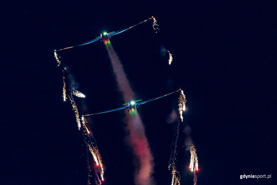 Świecące samoloty, widowiskowe ewolucje i roziskrzone fajerwerkami niebo. Weekend w Gdyni rozpoczął się bardzo efektownie. Najlepsi piloci na świecie zadbali o wyjątkowe show i atmosferę. Ich powietrzne popisy podziwiała publiczność zgromadzona na plaży Śródmieście oraz bulwarze Nadmorskim. Wszystko w ramach pokazów lotniczych Gdynia Aerobaltic 2018. W sobotę i w niedzielę kolejna dawka odlotowych wrażeń.Niebo nad Gdynią rozjaśniało w piątkowy wieczór od gwiazd lotnictwa. Były szybkie i super lekkie samoloty, efektowne akrobacje i niezwykłe efekty świetlne. 17 sierpnia rozpoczęły się międzynarodowe pokazy lotnicze Gdynia Aerobaltic 2018. To druga edycja tej imprezy w naszym mieście.– Rozpoczęliśmy od pokazów wieczorno-nocnych. To trzy godziny ewolucji nad plażą miejską. Piloci latają na samolotach wykorzystujących pirotechnikę. Stawiają tu przede wszystkim na aspekt wizualny – mówi Sebastian Golus, prezes zarządu firmy Aeropact, która organizuje air show.– Organizatorzy specjalnie tak przygotowali propozycje pokazu, by w większej części odbywała się po zachodzie słońca. Wykorzystanie nowoczesnych samolotów i pokazy efektów świetlnych sprawiają, że jest to wielkie widowisko. Bardzo się cieszę, że po raz kolejny ta wspaniała impreza odbywa się w Gdyni. To wyjątkowa okazja do tego, żeby podziwiać umiejętności najlepszych pilotów na świecie. Myślę, że ten wieczór na długo zapadnie w pamięci wszystkim tym, którzy są tu dziś z nami – mówi Wojciech Szczurek, prezydent Gdyni. W powietrzu naprawdę wiele się działo. Pokazy wystartowały o godz. 19.30. Zainaugurowała je grupa spadochronowa Skymagic S3WAT, która wykonała specjalny pokaz akrobatyczny. Spadochroniarze wyskoczyli z samolotu wyposażeni w kolorowe szarfy i flagi. Lecąc w dół zaprezentowali powietrzny spektakl swoich umiejętności. Takich widoków nigdy nie jest za wiele, dlatego grupa, po zmroku, wystąpiła ponownie. Tym razem w oświetlonych kombinezonach. Podniebne show wykonał też 3AT3 Formation Flying Team. Zespół pokazał jak lata się w szyku, korzystając z popularnego współczesnego polskiego samolotu turystycznego AT-3. Następnie grupa 57-my Team wprowadziła w ruch swoje wiatrakowce i zagrała na niebie powietrzną sztukę. Podczas pokazów swój lotniczy kunszt pokazał też Artur Kielak. Na swoim, jedynym takim w kraju, Sbachu XA-41 dał dynamiczne lotnicze show. Jego samolot można rozpoznać z daleka, a to dlatego, że malowanie nawiązuje do legendarnego Dywizjonu 303. Niezapomniane wrażenie zrobiła też Anakonda, czyli śmigłowiec z 43. Bazy Lotnictwa Morskiego. Jej załoga pokazała jak wygląda akcja ratownicza na wodzie. Nocną część pokazów rozpoczęli paralotniarze z Paraglider oraz grupa Warter Aviation i ich dwa Carbon Cuby. A potem niebo nad Gdynią było już tylko coraz bardziej rozświetlone. Do akcji wkroczyły bowiem samoloty wykorzystujące pirotechnikę i światła. Grupa Sydney Charles Display Team pokolorowała przestrzeń powietrzną nad plażą Śródmieście. Podobny wyczyn wykonał Johan Gustafsson. Rozświetlił on niebo lecąc świecącym samolotem. Pierwsza odsłona gdyńskiego air show zakończyła się o godz. 22.30. Pokazy zrobiły ogromne wrażenie na publiczności, która licznie zgromadziła się na plaży oraz na bulwarze Nadmorskim. – Jestem zachwycona atmosferą. Wszystko jest spektakularne. Wieczorno-nocny seans ze światłami i spadochroniarzami – niesamowite – mówi Ilona, uczestniczka pokazów.– Precyzja jest najatrakcyjniejsza, ale wszystko robi wrażenie. Bardzo ładny spektakl – dodają Adam i Jolanta, którzy oglądali pokaz.Kolejna dawka wieczorno-nocnych lotniczych wrażeń już dziś – w sobotę, 18 sierpnia – na plaży Śródmieście w godz. 19.30-22.30. Wstęp bezpłatny. To jednak tylko mała część tego, co będzie się działo. 18 sierpnia na lotnisku Gdynia-Kosakowo na Babich Dołach startuje dzienna odsłona lotniczego widowiska. To właśnie tam odbędą się najbardziej spektakularne pokazy. Będzie można je oglądać od godz. 10.00 do godz. 17.00, zarówno w sobotę, jak i w niedzielę, 19 sierpnia. Wstęp na tę część widowiska jest płatny.– Na lotnisku Babie Doły będzie główna część air show. Tam zobaczymy samoloty wojskowe i odrzutowe. Będzie też wystawa statyczna sprzętu oraz spotkania z pilotami. Tutaj zaprezentowana zostanie ta bardziej wyczynowa strona pokazów. Piloci wycisną z maszyn wszystko, co się da – podkreśla Golus. Na lotnisku będzie można przyjrzeć się z bliska samolotom i podziwiać moment startu i lądowania prezentujących się załóg. Dobrej zabawy i emocji na pewno nie zabraknie. A niebo opanują m.in.: Łukasz Czepiela, Maciej Pospieszyński, grupa Żelazny, Baltic Bees, P3 Flyers Acrobatic Team, Artur Kielak & Yak3.pl, Skymagic S3WAT, grupa Sydney Charles Display Team, 3AT3 Formation Flying Team, 57-my Team, Red Bull Flying Bulls, Patrouille Reva czy Royal Jordanian Falcons.Będzie też mnóstwo atrakcji dla całych rodzin w specjalnie stworzonych strefach: dla dzieci – z zabawami i animacjami dla najmłodszych, gaming - konsoli i gier, grup rekonstrukcyjnych czy gastronomicznej, gdzie będzie można dobrze zjeść. A w strefie chillout znajdzie się miejsce, w którym rodzice mogą przebrać i nakarmić swoje pociechy. Nie zabraknie też sklepu z gadżetami i wesołego miasteczka. Jednym z elementów będzie również Gdynia Aero Expo. To strefa wystawiennicza, gdzie swoje stanowiska i oferty będą przedstawiać m.in.: producenci, dystrybutorzy i importerzy ultralekkich samolotów i silników lotniczych, aerokluby, ośrodki szkolenia pilotów, szkoły lotnicze czy firmy zajmujące się dystrybucją dronów. Galeria zdjęć Pobierz galerię Gdynia Aerobaltic 2018, fot. Dawid Linkowski Pobierz zdjęcie Gdynia Aerobaltic 2018, fot. Dawid Linkowski Pobierz zdjęcie Gdynia Aerobaltic 2018, fot