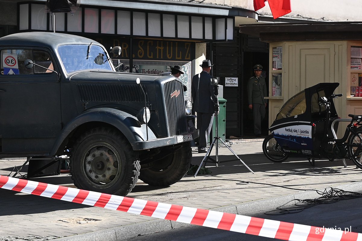 W Gdyni trwają zdjęcia do drugiego sezonu serialu „Zatoka Szpiegów”. Na przełomie września i października na potrzeby produkcji współczesne witryny zamieniły się w niemieckojęzyczne wystawy z czasów II wojny światowej, a nad ulicą 3 Maja powiewają flagi III Rzeszy. Jest to jednak tylko scenografia, która zniknie z miasta po zakończeniu nagrań. Kręcenie poszczególnych scen zaplanowano także na ul. Armii Krajowej oraz na molo w Orłowie i w jego okolicach.Ze zdjęciami wiążą się zmiany w ruchu w następujących terminach i lokalizacjach: 29 września – 1 października: zamknięcie ul. 3 Maja na odc. od ul. 10 Lutego do ul. Stefana Batorego; 30 września – 1 października: zamknięcie ul. Armii Krajowej od ul. Świętojańskiej do wjazdu na teren Hotelu Mercure; 1–2 października: zmiany w organizacji ruchu na ul. Orłowskiej, na odcinku między molo a rzeką Kaczą oraz na odcinku od Tawerny Orłowskiej do końca ulicy, w tym ograniczenie ruchu pieszego przy Molo w Orłowie oraz zajęcie części parkingu przy ul. Orłowskiej. Ulica 3 Maja w Gdyni nie tylko zmieniła swój wygląd na potrzeby serialu; w roli rekwizytów pojawiły się także pojazdy z epoki, m.in. szeroko wykorzystywana w armii III Rzeszy ciężarówka Opel Blitz (fot. Jakub Winiewski)„Zatoka Szpiegów” to wyświetlany w TVP serial opowiadający o Franzu Neumanie, granym przez Bartosza Gelnera – poruczniku Abwehry (niemiecki wywiad i kontrwywiad wojskowy w latach 1921-1944), który postanawia zostać szpiegiem i na potrzeby Aliantów zdobywać informacje o działaniach Kriegsmarine (marynarka wojenna III Rzeszy) podczas bitwy o Atlantyk. Druga odsłona serialu będzie kontynuować wątek Neumana. Na ekranie pojawią się m.in. znane z pierwszego sezonu Karolina Kominek, wcielająca się w Gretę i Maria Świłpa, odtwarzająca postać Anny. Dołączą do nich Sonia Mietielica w roli Evy Stromberg oraz Paweł Ławrynowicz w roli Bergmana, pragnącego zaprowadzić w mieście własne porządki. Jego postać zastąpi zmarłego komandora Kesslera, w którego wcielał się Mariusz Bonaszewski. W serialu wystąpią także Marcin Bosak, Jan Wieczorkowski, Mateusz Nędza i Marcin Korcz.Akcja serialu przeniesie widza w czasy II wojny światowej, kiedy tuż przed atakiem Niemiec na ZSRR w 1941 r. do szpiegowskich rozgrywek włączają się Sowieci. Reżyserem produkcji realizowanej na potrzeby TVP jest Łukasz Ostalski. Premiera zaplanowana jest na 2025 r. Galeria zdjęć Pobierz galerię Jednym z rekwizytów jest wykorzystywana przez Wehrmacht ciężarówka (fot. Jakub Winiewski) Pobierz zdjęcie Plan serialu „Zatoka Szpiegów” w Gdyni (fot. Jakub Winiewski) Pobierz zdjęcie Aktorzy na planie serialu „Zatoka Szpiegów” (fot. Marcin Idczak) Pobierz zdjęcie Aktorzy na planie serialu „Zatoka Szpiegów” (fot. Marcin Idczak) Pobierz zdjęcie Warunki pobierania Wszelkie prawa do zdjęć lub grafik prezentowanych w ramach portalu, należą do Prowadzącego portal lub do podmiotów z nim współpracujących i podlegają ochronie prawnej. Prowadzący portal zezwala na kopiowanie i przedstawianie utworów jedynie w celach niekomercyjnych oraz pod warunkiem zachowania go w oryginalnej postaci i zachowaniem kontekstu tematu, do którego zostało wykorzystaneprzez redakcję gdynia.pl. Opublikowane materiały powinny zawsze zawierać źródło, czyli adres strony www.gdynia.pl. Na publikowanie utworów w innych celach wymagana jest zgoda właściciela strony czyli Prowadzącego portal. Opublikowano: 30.09.2024 20:00 Autor: Jakub Winiewski (jakub.winiewski@gdynia.pl) Zmodyfikowano: 30.09.2024 20:11 Zmodyfikował: Małgorzata Omachel - Kwidzińska