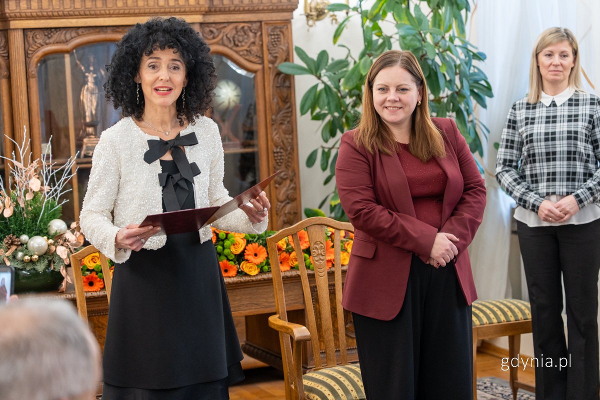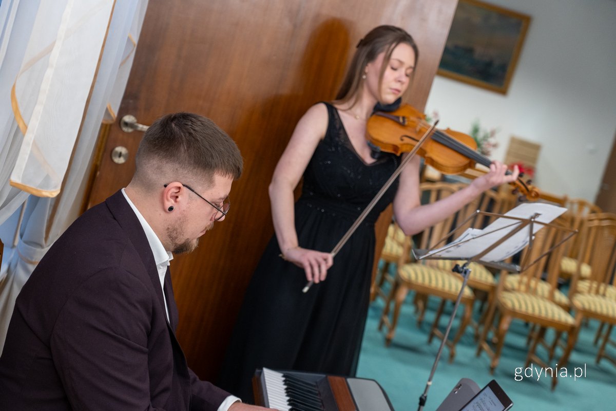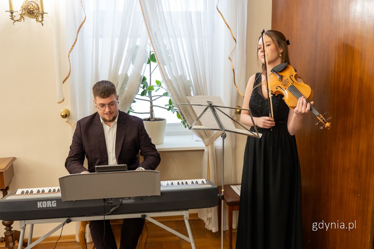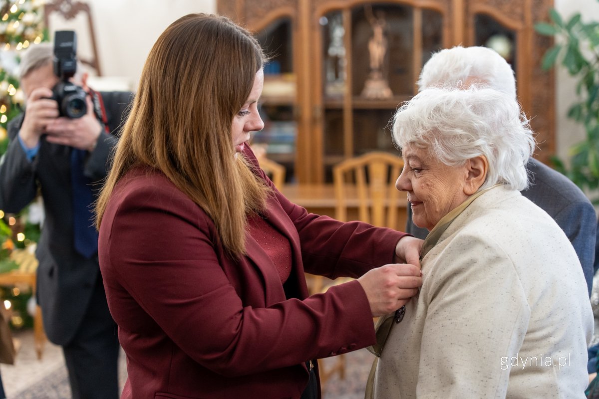 W sali ślubów Urzędu Stanu Cywilnego w Gdyni odbyła się dziś wyjątkowa uroczystość, podczas której 16 par świętowało złote gody: 50-lecie pożycia małżeńskiego. Aleksandra Kosiorek, prezydent Gdyni, uhonorowała małżonków Medalami za Długoletnie Pożycie Małżeńskie. Prezydent Gdyni Aleksandra Kosiorek wręczyła dziś, w imieniu Prezydenta RP Karola Nawrockiego, Medale za Dłogoletnie Pożycie Małżeńskie. Mówiła, że pary z tak imponującym stażem są nie tylko świadectwem trwałości małżeństwa, ale również inspiracją dla młodszych pokoleń, które dopiero uczą się, czym jest prawdziwe partnerstwo.Uroczystość miała ciepły, rodzinny charakter. Aby każdej parze poświęcić należytą uwagę, spotkania odbyły się w Urzędzie Stanu Cywilnego o godzinie 13:00, 14:00 oraz 15:00. W Sali Ślubów nie brakowało wzruszeń, uśmiechów i dumy, z jaką bliscy towarzyszyli jubilatom w tym szczególnym dniu.Prezydent Gdyni, przekazując medale, składała każdej parze osobiste gratulacje i życzenia kolejnych wspólnych lat w zdrowiu, spokoju i miłości. Jak zaznaczała, pół wieku razem to dowód na to, że wzajemny szacunek, cierpliwość i bliskość są wartościami, które nie tracą na znaczeniu.Jubilaci uhonorowani medalami przez prezydent Gdyni Aleksandrę Kosiorek (fot. Michał Sałata)O godz. 13:00 medale odebrali: Barbara i Zbigniew Bartykowscy, Janina i Eligiusz Cieślikowie, Ewa i Maciej Gajdowie, Maria i Bronisław Gomółkowie, Krystyna i Kazimierz Kiełbasowie, Janina i Marian Wołczowie. Jubilaci z godz. 13:00 z prezydent Gdyni Aleksandrą Kosiorek oraz Inocentą Nycz, kierownik USC w Urzędzie Miasta Gdyni (fot. Michał Sałata)O godz. 14:00 medale odebrali: Jolanta i Wiesław Kozakowie, Anna i Wiesław Krasoniowie, Elżbieta i Edwin Makowscy, Halina i Paweł Okrojowie, Zofia i Kazimierz Orpelowie, Józefa i Stanisław Pecynowie. Jubilaci z godz. 14:00 z prezydent Gdyni Aleksandrą Kosiorek oraz Inocentą Nycz, kierownik USC w Urzędzie Miasta Gdyni (fot. Michał Sałata)O godz. 15:00 medale odebrali: Jadwiga i Krzysztof Piórowie, Grażyna i Aleksander Pułowie, Grażyna i Cezary Staniszewscy, Hilaria i Marian Żurkowie. Jubilaci z godz. 15:00 z prezydent Gdyni Aleksandrą Kosiorek oraz Inocentą Nycz, kierownik USC w Urzędzie Miasta Gdyni (fot. Michał Sałata)Jubileuszową ceremonię uświetnił krótki koncert skrzypcowy w wykonaniu Angeliki Kwiek, uczennicy Szkoły Muzycznej w Gdyni, przy akompaniamencie Macieja Gałązki. Wszystkim jubilatom składamy serdeczne gratulacje i życzymy kolejnych lat wspólnej drogi – w zdrowiu, miłości i codziennej radości. Galeria zdjęć Pobierz galerię Złote gody gdyńskich par. Na zdjęciu prezydent Gdyni Aleksandra Kosiorek oraz Inocenta Nycz, kierownik USC (fot. Michał Sałata) Pobierz zdjęcie Złote gody gdyńskich par. Medale wręczała Aleksandra Kosiorek, prezydent Gdyni (fot. Michał Sałata) Pobierz zdjęcie Złote gody gdyńskich par. Medale wręczała Aleksandra Kosiorek, prezydent Gdyni (fot. Michał Sałata) Pobierz zdjęcie Złote gody gdyńskich par (fot. Michał Sałata) Pobierz zdjęcie Złote gody gdyńskich par (fot. Michał Sałata) Pobierz zdjęcie Złote gody gdyńskich par (fot. Michał Sałata) Pobierz zdjęcie Złote gody gdyńskich par (fot. Michał Sałata) Pobierz zdjęcie Złote gody gdyńskich par (fot. Michał Sałata) Pobierz zdjęcie Złote gody gdyńskich par. Na zdjęciu prezydent Gdyni Aleksandra Kosiorek oraz Inocenta Nycz, kierownik USC (fot. Michał Sałata) (fot. Michał Sałata) Pobierz zdjęcie Złote gody gdyńskich par (fot. Michał Sałata) Pobierz zdjęcie Złote gody gdyńskich par. Medale wręczała Aleksandra Kosiorek, prezydent Gdyni (fot. Michał Sałata) Pobierz zdjęcie Złote gody gdyńskich par. Medale wręczała Aleksandra Kosiorek, prezydent Gdyni (fot. Michał Sałata) Pobierz zdjęcie Złote gody gdyńskich par. Medale wręczała Aleksandra Kosiorek, prezydent Gdyni (fot. Michał Sałata) Pobierz zdjęcie Złote gody gdyńskich par (fot. Michał Sałata) Pobierz zdjęcie 12 stycznia 2026 roku w sali ślubów Urzędu Stanu Cywilnego w Gdyni odbyła się wyjątkowa uroczystość, podczas której 16 par świętowało złote gody, czyli 50-lecie pożycia małżeńskiego. Na zdjęciu prezydent Gdyni Aleksandra Kosiorek i Inocenta Nycz, kierownik Urzędu Stanu Cywilnego (fot. Michał Sałata) Pobierz zdjęcie Złote gody gdyńskich par. Medale wręczała Aleksandra Kosiorek, prezydent Gdyni (fot. Michał Sałata) Pobierz zdjęcie Złote gody gdyńskich par (fot. Michał Sałata) Pobierz zdjęcie Złote gody gdyńskich par (fot. Michał Sałata) Pobierz zdjęcie Warunki pobierania Wszelkie prawa do zdjęć lub grafik prezentowanych w ramach portalu, należą do Prowadzącego portal lub do podmiotów z nim współpracujących i podlegają ochronie prawnej. Prowadzący portal zezwala na kopiowanie i przedstawianie utworów jedynie w celach niekomercyjnych oraz pod warunkiem zachowania go w oryginalnej postaci i zachowaniem kontekstu tematu, do którego zostało wykorzystaneprzez redakcję gdynia.pl. Opublikowane materiały powinny zawsze zawierać źródło, czyli adres strony www.gdynia.pl. Na publikowanie utworów w innych celach wymagana jest zgoda właściciela strony czyli Prowadzącego portal. Opublikowano: 12.01.2026 16:30 Autor: Michał Sałata (michal.salata@gdynia.pl) Zmodyfikowano: 12.01.2026 16:40 Zmodyfikował: Aleksandra Dylejko