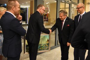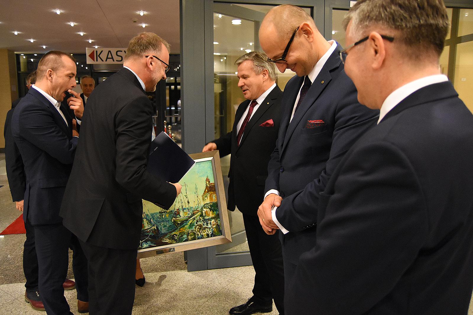 Z okazji dostojnej rocznicy 95-lecia powstania gdyńskiego portu, 16 października w Teatrze Muzycznym w Gdyni odbyła się uroczysta gala. Udział w niej wzięli znamienici goście – wśród nich przedstawiciele rządu, posłowie i posłanki, samorządowcy, ludzie biznesu. Wieczór uświetniły występy aktorów Teatru Muzycznego w specjalnie na tę okazję przygotowanym, morskim repertuarze.Na wieczornej uroczystości w Teatrze Muzycznym gościli m.in. Minister Gospodarki Morskiej i Żeglugi Śródlądowej Marek Gróbarczyk, posłowie na sejm – Dorota Arciszewska-Mielewczyk, Janusz Śniadek i Marcin Horała, Marszałek Województwa Pomorskiego Mieczysław Struk, Wojewoda Pomorski Dariusz Drelich i Wiceprezydent Gdyni ds. Innowacji Michał Guć. Gospodarzem wieczoru był prezes Zarządu Morskiego Portu Gdynia S.A. Adam Meller. Słowa uznania, gratulacje i życzenia dalszych sukcesów padały ze sceny wielokrotnie. – W imieniu młodszej siostry Gdyni, składam najlepsze życzenia dalszej współpracy na rzecz rozwoju gospodarczego Gdyni i Polski – komentował wiceprezydent Gdyni Michał Guć. 95 lat temu Sejm II Rzeczpospolitej podjął decyzję o budowie portu we wsi o nic nikomu nie mówiącej nazwie Gdynia, na którą jako miejsce „bardzo sposobne” do budowy portu wskazywano już królowi Władysławowi IV w XVII wieku. 23 września 1922 roku Sejm II RP zdecydował: „Upoważnia się Rząd do poczynienia wszelkich niezbędnych zarządzeń celem wykonania budowy portu morskiego przy Gdyni na Pomorzu jako portu użyteczności publicznej”. Decyzja, podjęta dziewięćdziesiąt pięć lat temu, u zarania narodzin II Rzeczypospolitej, stała się wielkim symbolem odrodzonego państwa polskiego. Gdyński port powstał jako żywa wizytówka ówczesnej Polski – jej potencjału ekonomicznego i myśli technicznej. W ciągu kilku lat stał się on największym portem na Bałtyku i jednym z większych portów Europy, wyprzedzając pod względem wielkości obrotów Kopenhagę, Bremę, Amsterdam, Genuę, Neapol i Triest. Od zawsze port – starszy o cztery lata od miasta – był i nadal jest istotą i dumą Gdyni oraz szansą na jej dalszy rozwój. To od niego wszystko się zaczęło. Bez portu nie byłoby tak szybkiego rozwoju miasta. Od samego początku też związki miasta i portu były bardzo silne, oba organizmy nawzajem się przenikały. Obecnie, kiedy gmina Gdynia stała się akcjonariuszem portu, te więzi są jeszcze silniejsze. I co najważniejsze – gdyński port to obecnie jeden z największych pracodawców w Gdyni – co piąty czynny zawodowo gdynian pracuje w porcie lub w działających na jego terenie spółkach. Port Gdynia permanentnie zmienia swoje oblicze. Jest to kontynuacja dzieła twórcy gdyńskiego portu, inżyniera Tadeusza Wendy. – W roku 95. urodzin Portu Gdynia rozpoczyna się realizacja jakże ważnych dla dalszego rozwoju portu zadań – podkreśla Adam Meller, prezes Zarządu Morskiego Portu Gdynia S.A. – Przede wszystkim rozpoczniemy budowę nowej portowej obrotnicy oraz prace związane z nowym publicznym terminalem promowym. Przed nami jeszcze pogłębienie portowych basenów oraz najnowszy temat – Port Zewnętrzny, który będzie w najbliższym dziesięcioleciu ogromną szansą na rozwój Portu Gdynia. Galeria zdjęć Pobierz galerię Gala z okazji 95-lecia Portu Gdynia, 16.10.2017 // fot. M. Puszczewicz Pobierz zdjęcie Gala z okazji 95-lecia Portu Gdynia, 16.10.2017 // fot. M. Puszczewicz Pobierz zdjęcie Gala z okazji 95-lecia Portu Gdynia, 16.10.2017 // fot. M. Puszczewicz Pobierz zdjęcie Gala z okazji 95-lecia Portu Gdynia, 16.10.2017 // fot. M. Puszczewicz Pobierz zdjęcie Gala z okazji 95-lecia Portu Gdynia, 16.10.2017 // fot. M. Puszczewicz Pobierz zdjęcie Gala z okazji 95-lecia Portu Gdynia, 16.10.2017 // fot. M. Puszczewicz Pobierz zdjęcie Gala z okazji 95-lecia Portu Gdynia, 16.10.2017 // fot. M. Puszczewicz Pobierz zdjęcie Gala z okazji 95-lecia Portu Gdynia, 16.10.2017 // fot. M. Puszczewicz Pobierz zdjęcie Gala z okazji 95-lecia Portu Gdynia, 16.10.2017 // fot. M. Puszczewicz Pobierz zdjęcie Gala z okazji 95-lecia Portu Gdynia, 16.10.2017 // fot. M. Puszczewicz Pobierz zdjęcie Gala z okazji 95-lecia Portu Gdynia, 16.10.2017 // fot. M. Puszczewicz Pobierz zdjęcie Gala z okazji 95-lecia Portu Gdynia, 16.10.2017 // fot. M. Puszczewicz Pobierz zdjęcie Gala z okazji 95-lecia Portu Gdynia, 16.10.2017 // fot. M. Puszczewicz Pobierz zdjęcie Gala z okazji 95-lecia Portu Gdynia, 16.10.2017 // fot. M. Puszczewicz Pobierz zdjęcie Gala z okazji 95-lecia Portu Gdynia, 16.10.2017 // fot. M. Puszczewicz Pobierz zdjęcie Gala z okazji 95-lecia Portu Gdynia, 16.10.2017 // fot. M. Puszczewicz Pobierz zdjęcie Gala z okazji 95-lecia Portu Gdynia, 16.10.2017 // fot. M. Puszczewicz Pobierz zdjęcie Gala z okazji 95-lecia Portu Gdynia, 16.10.2017 // fot. M. Puszczewicz Pobierz zdjęcie Gala z okazji 95-lecia Portu Gdynia, 16.10.2017 // fot. M. Puszczewicz Pobierz zdjęcie Gala z okazji 95-lecia Portu Gdynia, 16.10.2017 // fot. M. Puszczewicz Pobierz zdjęcie Gala z okazji 95-lecia Portu Gdynia, 16.10.2017 // fot. M. Puszczewicz Pobierz zdjęcie Gala z okazji 95-lecia Portu Gdynia, 16.10.2017 // fot. M. Puszczewicz Pobierz zdjęcie Gala z okazji 95-lecia Portu Gdynia, 16.10.2017 // fot. M. Puszczewicz Pobierz zdjęcie Gala z okazji 95-lecia Portu Gdynia, 16.10.2017 // fot. M. Puszczewicz Pobierz zdjęcie Gala z okazji 95-lecia Portu Gdynia, 16.10.2017 // fot. M. Puszczewicz Pobierz zdjęcie Gala z okazji 95-lecia Portu Gdynia, 16.10.2017 // fot. M. Puszczewicz Pobierz zdjęcie Gala z okazji 95-lecia Portu Gdynia, 16.10.2017 // fot. M. Puszczewicz Pobierz zdjęcie Gala z okazji 95-lecia Portu Gdynia, 16.10.2017 // fot. M. Puszczewicz Pobierz zdjęcie Gala z okazji 95-lecia Portu Gdynia, 16.10.2017 // fot. M. Puszczewicz Pobierz zdjęcie Gala z okazji 95-lecia Portu Gdynia, 16.10.2017 // fot. M. Puszczewicz Pobierz zdjęcie Gala z okazji 9