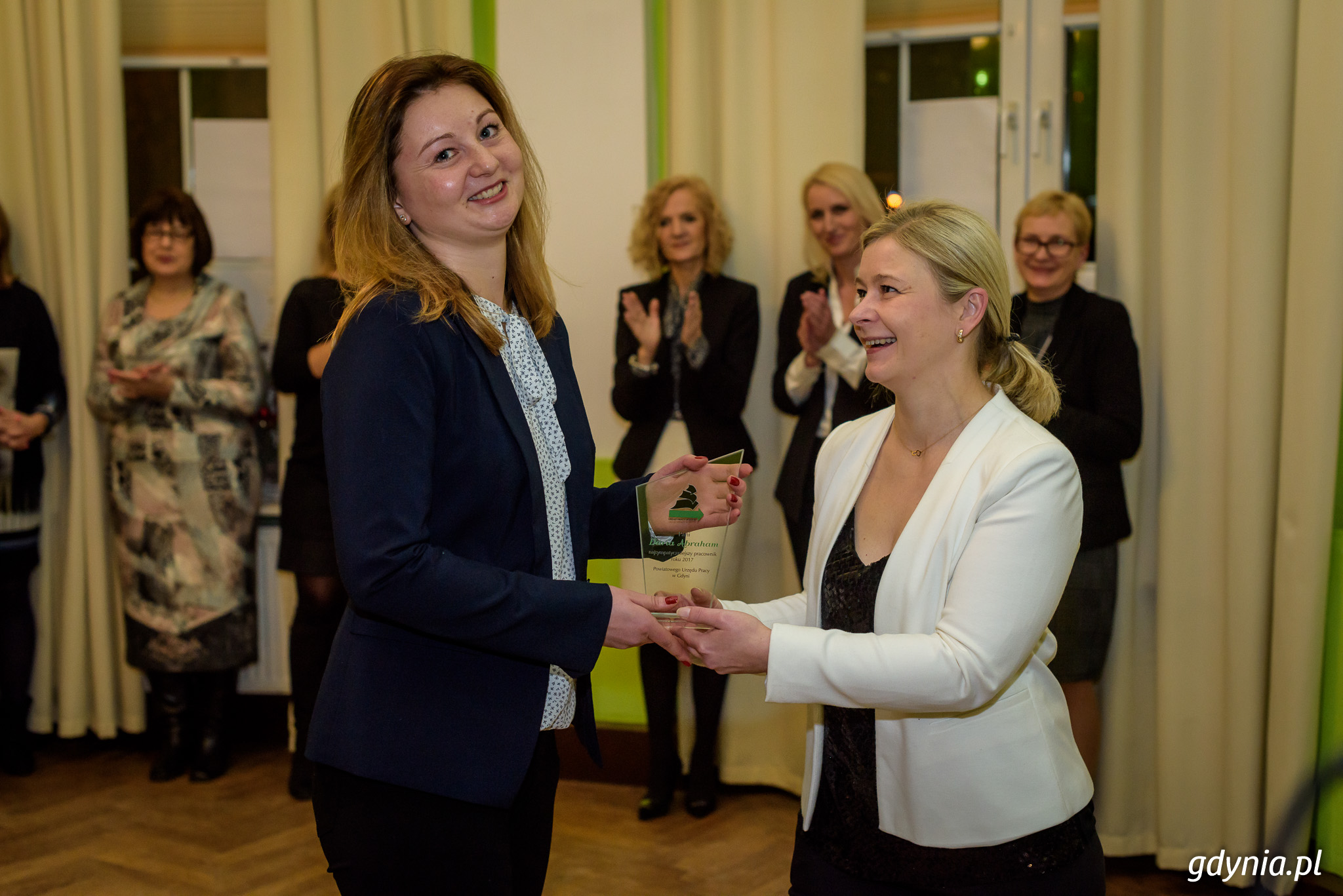 Z okazji Dnia Pracownika Publicznych Służb Zatrudnienia nagrodzono najlepszych pracowników Powiatowego Urzędu Pracy. Podczas uroczystej gali wręczono dwa wyróżnienia: Nagrodę Prezydenta Miasta Gdyni oraz Nagrodę „Najsympatyczniejszy Pracownik”. Uroczystość odbyła się w Klubie Marynarki Wojennej „Riwiera”. Święto to okazja do szczególnego wyróżnienia i uhonorowania tych, którzy swoim zaangażowaniem wyróżnili się w swojej codziennej pracy. Nagrodę prezydenta Gdyni otrzymała Milena Piotrowicz-Miksa za tworzenie modelowych rozwiązań w zakresie zatrudniania cudzoziemców. oraz pani Beata Sparzak za wprowadzanie innowacyjnych rozwiązań informatycznych.Wyróżnienia wręczyła wiceprezydent Gdyni Katarzyna Gruszecka-Spychała: - Gdynia od lat ma rekordowo niski wskaźnik bezrobocia. Ten problem w naszym mieście aktualnie praktycznie nie występuje. Obie nagrodzone dziś Panie wyróżniły się poszukiwaniem bardzo nowoczesnych rozwiązań, odmiennych od tradycyjnych wyobrażeń o urzędzie pracy, za to idealnie dostosowanych do gospodarczych potrzeb Gdyni. Nagroda Prezydenta Miasta Gdyni przyznawana jest od 2014 roku za wybitne i nowatorskie osiągnięcia w dziedzinie promocji zatrudnienia, łagodzenia skutków bezrobocia oraz aktywizacji zawodowej w kategoriach: najlepszy pracownik w pionie rynku pracy, oraz najlepszy pracownik w pionie ewidencji i świadczeń. Warto podkreślić, że Powiatowy Urząd Pracy w Gdyni jest wysoko oceniany za swoją skuteczną działalność na rzecz zwiększania zatrudnienia i często wymieniany jako przykład bardzo dobrej współpracy z pracodawcami, organizacjami społecznymi i biznesowymi.Drugą nagrodą wręczoną podczas gali było wyróżnienie przyznawane przez samych pracowników PUP w Gdyni. Tytuł najsympatyczniejszego członka zespołu wręczyli swojej koleżance Darii Abraham. Nagroda „Najsympatyczniejszy pracownik” przyznawana jest od 2013 roku, jej laureaci wybierani są przez pracowników w drodze tajnego głosowania. Galeria zdjęć Pobierz galerię Najlepsi pracownicy Powiatowego Urzędu Pracy w Gdyni zostali nagrodzeni. Fot. Dawid Linkowski Pobierz zdjęcie Gala wręczenia Nagrody Prezydenta Miasta Gdyni. Fot. Dawid Linkowski Pobierz zdjęcie Gala wręczenia Nagrody Prezydenta Miasta Gdyni. Fot. Dawid Linkowski Pobierz zdjęcie Gala wręczenia Nagrody Prezydenta Miasta Gdyni. Fot. Dawid Linkowski Pobierz zdjęcie Gala wręczenia Nagrody Prezydenta Miasta Gdyni. Fot. Dawid Linkowski Pobierz zdjęcie Gala wręczenia Nagrody Prezydenta Miasta Gdyni. Fot. Dawid Linkowski Pobierz zdjęcie Gala wręczenia Nagrody Prezydenta Miasta Gdyni. Fot. Dawid Linkowski Pobierz zdjęcie Gala wręczenia Nagrody Prezydenta Miasta Gdyni. Fot. Dawid Linkowski Pobierz zdjęcie Gala wręczenia Nagrody Prezydenta Miasta Gdyni. Fot. Dawid Linkowski Pobierz zdjęcie Gala wręczenia Nagrody Prezydenta Miasta Gdyni. Fot. Dawid Linkowski Pobierz zdjęcie Gala wręczenia Nagrody Prezydenta Miasta Gdyni. Fot. Dawid Linkowski Pobierz zdjęcie Gala wręczenia Nagrody Prezydenta Miasta Gdyni. Fot. Dawid Linkowski Pobierz zdjęcie Gala wręczenia Nagrody Prezydenta Miasta Gdyni. Fot. Dawid Linkowski Pobierz zdjęcie Warunki pobierania Wszelkie prawa do zdjęć lub grafik prezentowanych w ramach portalu, należą do Prowadzącego portal lub do podmiotów z nim współpracujących i podlegają ochronie prawnej. Prowadzący portal zezwala na kopiowanie i przedstawianie utworów jedynie w celach niekomercyjnych oraz pod warunkiem zachowania go w oryginalnej postaci i zachowaniem kontekstu tematu, do którego zostało wykorzystaneprzez redakcję gdynia.pl. Opublikowane materiały powinny zawsze zawierać źródło, czyli adres strony www.gdynia.pl. Na publikowanie utworów w innych celach wymagana jest zgoda właściciela strony czyli Prowadzącego portal. Opublikowano: 12.01.2018 19:40 Autor: Arleta _Bolda-Górna (a.bolda-gorna@gdynia.pl) Zmodyfikowano: 09.02.2018 15:58 Zmodyfikował: Agnieszka Janowicz