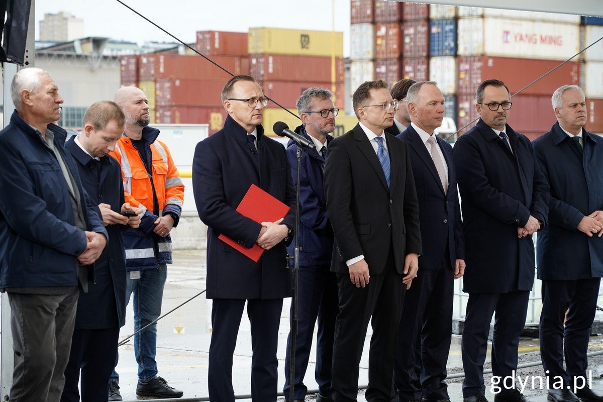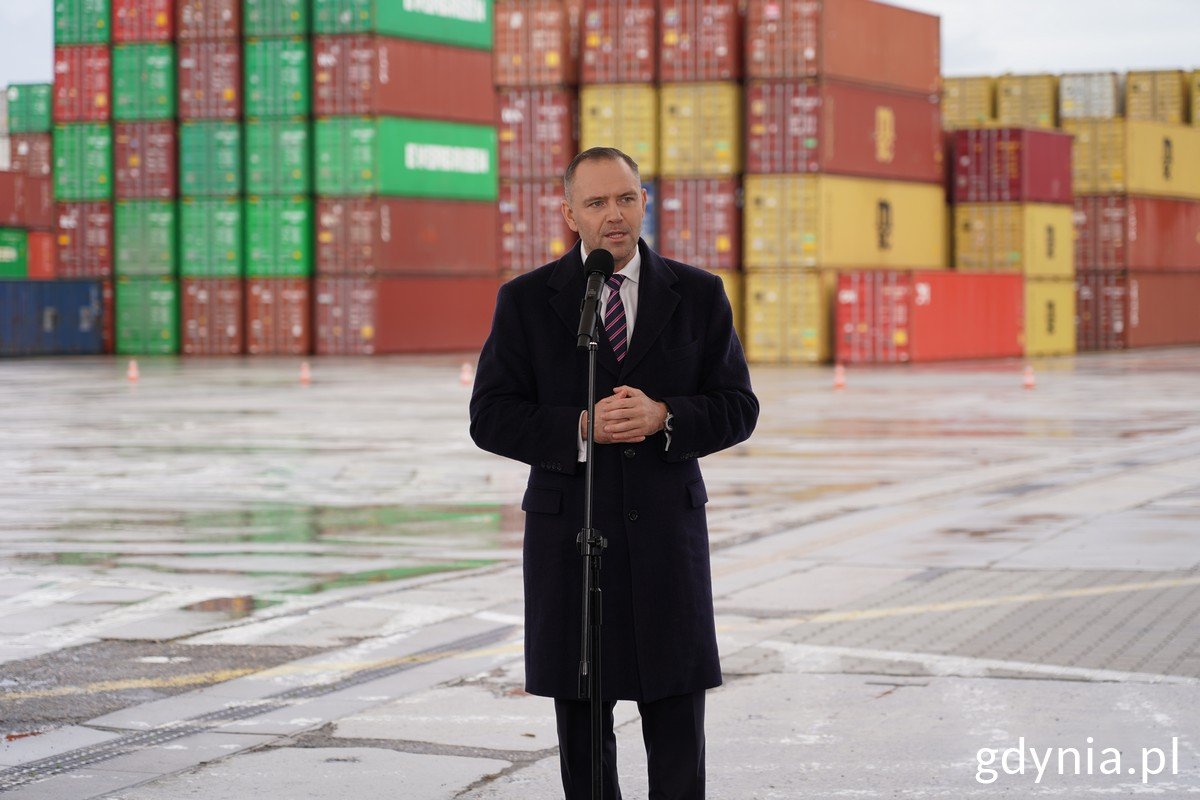 W piątek, 17 października prezydent Karol Nawrocki podpisał w Gdyni inicjatywę ustawodawczą „Tak! Dla Polskich Portów”. To projekt, który zobowiązuje rząd do szeregu inwestycji w celu zabezpieczenia interesów gospodarczych i strategicznych Polski. Z kolei dla Gdyni to dwa istotne przedsięwzięcia: budowa Portu Zewnętrznego i Droga Czerwona. Podczas piątkowej (17.10) wizyty w Bałtyckim Terminalu Kontenerowym w Gdyni Prezydent RP Karol Nawrocki podpisał projekt ustawy „Tak! Dla Polskich Portów”. I jak mówił: warto mieć świadomość, że zasadnicza część handlu międzynarodowego odbywa się właśnie za sprawą polskich portów. Wideo i montaż: Sławomir Okoń Morze Bałtyckie jest wielkim potencjałem państwa polskiego – gospodarczym, militarnym, wojskowym. Choć jest także wielkim wyzwaniem w zakresie bezpieczeństwa państwa polskiego – mówił prezydent Karol Nawrocki. Jak podkreślił prezydent, polskie porty generują 230 tys. miejsc pracy i dają 60 mld zł wpływów do budżetu państwa. Projekt ustawy W podpisanym projekcie prezydenckim uwzględniono m.in. dwa istotne dla Gdyni przedsięwzięcia: budowę Portu Zewnętrznego oraz Drogi Czerwonej.Z kolei pozostałe założenia obejmują: budowę głębokowodnego terminalu w Świnoujściu, modernizację Odrzańskiej Drogi Wodnej, uruchomienie terminalu zbożowego w Gdańsku i budowę nowego terminalu zbożowego (agroportu) w Szczecinie, budowę terminalu FSRU na Zatoce Gdańskiej, budowę głębokowodnego stanowiska przeładunku paliw płynnych w porcie w Gdańsku, budowę terminalu instalacyjnego T5 w Gdańsku, budowę alternatywnego dojazdu kolejowego do portu w Gdańsku wraz z nowym mostem przez Martwą Wisłę. Teraz kolejnym krokiem jest przekazanie ustawy do parlamentu.Podczas pobytu w Gdyni prezydent spotkał się również z żołnierzami z 598. Brygady Transportowej US Army. Galeria zdjęć Pobierz galerię W wydarzeniu wzięli udział m.in.: podsekretarz stanu w Kancelarii Prezydenta Karol Rabenda, poseł Marcin Horała, Hans Ole Madsen, wiceprezes i dyrektor regionalny na Europę, Bliski Wschód i Afrykę w ICTSI Global Corporate oraz Wojciech Szymulewicz, prezes BCT Gdynia (fot. Magda Śliżewska) Pobierz zdjęcie Prezydent Karol Nawrocki w BCT (fot. Magda Śliżewska) Pobierz zdjęcie Żołnierze z 598. Brygady Transportowej US Army (fot. Magda Śliżewska) Pobierz zdjęcie Prezydent RP Karol Nawrocki w towarzystwie żołnierzy z 598. Brygady Transportowej US Army (fot. Magda Śliżewska) Pobierz zdjęcie Żołnierze z 598. Brygady Transportowej US Army (fot. Magda Śliżewska) Pobierz zdjęcie Żołnierze z 598. Brygady Transportowej US Army (fot. Magda Śliżewska) Pobierz zdjęcie Żołnierze z 598. Brygady Transportowej US Army (fot. Magda Śliżewska) Pobierz zdjęcie Warunki pobierania Wszelkie prawa do zdjęć lub grafik prezentowanych w ramach portalu, należą do Prowadzącego portal lub do podmiotów z nim współpracujących i podlegają ochronie prawnej. Prowadzący portal zezwala na kopiowanie i przedstawianie utworów jedynie w celach niekomercyjnych oraz pod warunkiem zachowania go w oryginalnej postaci i zachowaniem kontekstu tematu, do którego zostało wykorzystaneprzez redakcję gdynia.pl. Opublikowane materiały powinny zawsze zawierać źródło, czyli adres strony www.gdynia.pl. Na publikowanie utworów w innych celach wymagana jest zgoda właściciela strony czyli Prowadzącego portal. Opublikowano: 17.10.2025 17:45 Autor: Magdalena Śliżewska (magdalena.slizewska@gdynia.pl)