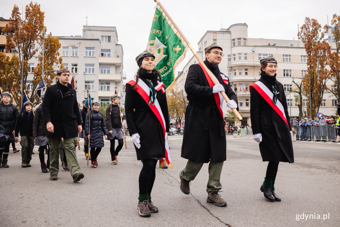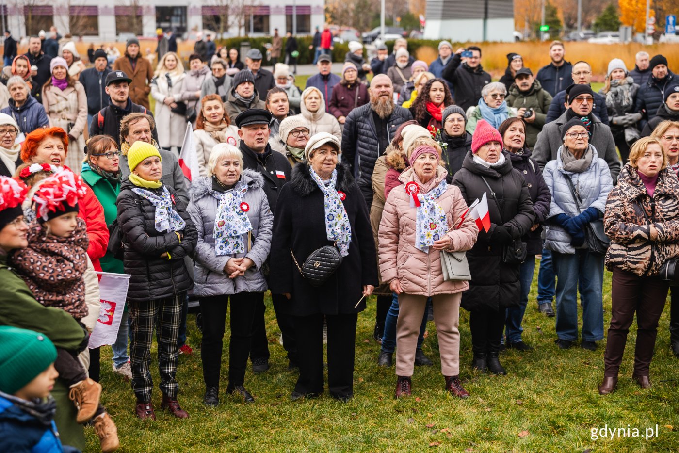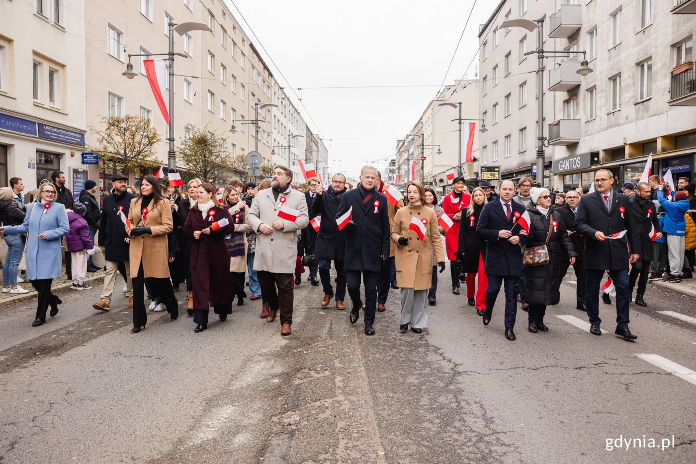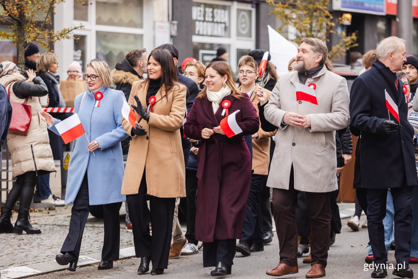 Narodowe Święto Niepodległości to czas solidarności i budowania wspólnoty. 11 listopada, w samo południe, sprzed Urzędu Miasta wyruszyła barwna Gdyńska Parada Niepodległości, w której jak co roku mieszkanki i mieszkańcy wzięli liczny udział. Nie zabrakło również zabytkowych pojazdów, wspólnego śpiewania pieśni patriotycznych i specjalnych wydarzeń towarzyszących. Złożono kwiaty pod pomnikami: Marszałka Józefa Piłsudskiego oraz Polski Morskiej. 107. Gdyńskie Urodziny Niepodległej rozpoczęły się z samego rana od złożenia kwiatów pod pomnikiem Marszałka Józefa Piłsudskiego. Następnie o godz. 10:00 w kościele pw. Najświętszej Maryi Panny Królowej Polski (ul. Armii Krajowej 26) odbyła się uroczysta msza święta. W Gdyni możemy nie tylko oddać cześć Marszałkowi Piłsudskiemu, który jest ojcem naszej niepodległości, ale również wziąć udział w pięknej paradzie – mówi Emil Rojek, wicewojewoda pomorski. – Święto Niepodległości to czas, kiedy powinniśmy pamiętać o tym, że należy nieustannie zabiegać i dbać o naszą wolność. O godz. 12:00 sprzed Urzędu Miasta wyruszyła barwna Gdyńska Parada Niepodległości. Jak co roku cieszyła się dużym zainteresowaniem wśród mieszkanek i mieszkańców Gdyni. Gdyńska Parada Niepodległości (fot. Karol Stańczak) Jej uczestnicy przeszli ul. Świętojańską oraz skwerem Kościuszki pod Pomnik Polski Morskiej. To właśnie tam złożono kwiaty i oddano hołd bohaterom, którzy walczyli o wolność ojczyzny. Odegrano również hymn państwowy i odczytano apel pamięci. Nie zabrakło również salutu świątecznego, w postaci symbolicznych 21 wystrzałów z pokładu ORP „Błyskawicy” oraz defilady. Od samego rana świętowałam Święto Niepodległości. Zaczęliśmy od gdyńskich biegów, gdzie miałam przyjemność wspierać mieszkańców na starcie, a na mecie wręczałam medale – mówi Aleksandra Kosiorek, prezydent Gdyni. – Następnie przemieściłam się na Gdyńską Paradę Niepodległości, gdzie razem z mieszkańcami przeszliśmy ulicą Świętojańską, a pod pomnikiem Polski Morskiej złożyliśmy kwiaty. Można powiedzieć, że były to tradycyjne obchody, ale w tym roku mieliśmy rekordową frekwencję. To bardzo cieszy, bo chcemy świętować i spędzać ten czas wspólnie. Liczna frekwencja podczas Gdyńskich Urodzin Niepodległej jest najlepszym dowodem na to, że mieszkanki i mieszkańcy dbają o wolność odzyskaną 107 lat temu. 11 listopada to dzień, w którym wspólnie świętujemy odzyskanie niepodległości. To jest bez wątpienia najważniejsze święto i cieszę się z tak licznej obecności, szczególnie w Gdyni – mówi Tadeusz Szemiot, przewodniczący Rady Miasta. – Historia naszego miasta jest ściśle związana z tym, że Polska 107 lat temu stała się niepodległą i później podejmowała szereg decyzji, dzięki którym powstała Gdynia.Gdyńskie Urodziny Niepodległej rozpoczęliśmy od złożenia kwiatów pod pomnikiem Józefa Piłsudskiego. To obowiązkowy punkt każdego 11 listopada w Gdyni. Natomiast o godz. 12:00 wraz ze wszystkimi mieszkankami i mieszkańcami spotykaliśmy się na paradzie. Myślę, że w tym roku była wyjątkowo barwna i cieszyła się jeszcze większym zainteresowaniem niż w poprzednich latach – dodaje Tomasz Augustyniak, wiceprezydent Gdyni. Pokazy, warsztaty i spacery Święto Niepodległości to nie tylko oficjalne uroczystości i parada, to również moc atrakcji przygotowanych przez miejskie instytucje, np. przez Muzeum Miasta Gdyni. Można tu było zwiedzać ekspozycję stałą (wstęp wolny) oraz wziąć udział w kolejnej edycji akcji „Rosnąca Niepodległość”, podczas której można było odbierać sadzonki drzew. Do pierwszych 107 bezpłatnych biletów został dołączony prezent – nasiona świerku srebrnego wraz z instrukcją ich wysiania. Na bezpłatne zwiedzanie zaprosili też Muzeum Marynarki Wojennej i Muzeum Emigracji. Nie zabrakło również atrakcji dla fanów motoryzacji. Na ul. K. Olgierda Borchardta można było zwiedzać zabytkowe pojazdy.I wreszcie, „Śpiewem dla Niepodległej” – pod takim hasłem odbyło się wspólne śpiewanie pieśni patriotycznych na placu Grunwaldzkim. Galeria zdjęć Pobierz galerię Złożono kwiaty pod pomnikiem Marszałka Józefa Piłsudskiego (fot. Karol Stańczak) Pobierz zdjęcie Uczestnicy parady ruszyli sprzed Urzędu Miasta Gdyni (fot. Karol Stańczak) Pobierz zdjęcie Uczestnicy parady (fot. Karol Stańczak) Pobierz zdjęcie Członkowie Związku Piłsudczyków RP (fot. Karol Stańczak) Pobierz zdjęcie Na zdjęciu (od lewej): wiceprzewodnicząca Rady Miasta Mariola Śrubarczyk-Cichowska, radna Teresa Bysewska, prezydent Gdyni Aleksandra Kosiorek, dyrektor zarządzający ds. kultury i aktywności mieszkańców Mariusz Bzdęga, przewodniczący Rady Miasta Tadeusz Szemiot, senator Sławomir Rybicki (fot. Karol Stańczak) Pobierz zdjęcie Orkiestra Reprezentacyjna Marynarki Wojennej RP (fot. Karol Stańczak) Pobierz zdjęcie Na zdjęciu m.in.: senator Sławomir Rybicki, wicewojewoda pomorski Emil Rojek, posłanka Henryka Krzywonos-Strycharska, poseł Rafał Siemaszko, prezydent Gdyni Aleksandra Kosiorek, przewodniczący Rady Miasta Tadeusz Szemiot, wiceprezydent Gdyni Tomasz Augustyniak, wiceprezydent Gdyni Rafał Geremek, wiceprezydent Gdyni Maciej Zielonka, dyrektor zarządzający ds. kultury i aktywności mieszkańców Mariusz Bzdęga, dyrektor zarządzający ds. inwestycji Tomasz Gałązka, radna Larysa Kramin, radna Agnieszka Tokarska, radna Anna Salomon, radna Teresa Bysewska, radna Emilia Rogała, radny Łukasz Piesiewicz, radny Norbert Anisowicz, radny Marcus da Silva de Oliveira, radny Łukasz Strzałkowski, radna Monika Strzałkowska, radny Dawid Biernacik, radny Dominik Aziewicz, radny Norbert Anisowicz (fot. Karol Stańczak) Pobierz zdjęcie Prezydent Gdyni Aleksandra Kosiorek wręczała mieszkańcom biało-czerwone flagi (fot.