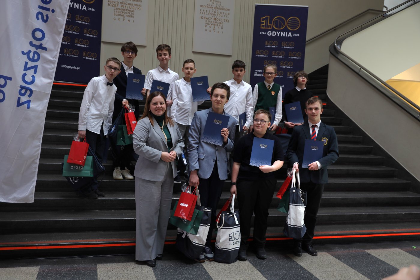 Przestrzenie Muzeum Emigracji w Gdyni stały się miejscem zaciętej walki Finału Konkursu Wiedzy o Gdyni. W ostatecznych rozgrywkach wzięło udział 20 uczestników w dwóch kategoriach wiekowych – 10 uczniów szkół podstawowych i 10 uczennic i uczniów szkół ponadpodstawowych. Najwyższe stopnie podium zajęli: Filip Jaworski z SP 34 i Roch Sobczyński z III LO. Finał Konkursu Wiedzy o Gdyni, który odbywa się w Muzeum Emigracji, to przede wszystkim szansa dla 20 młodych Gdynian na sprawdzenie swojej wiedzy i walkę o główne nagrody. Trzeba jednak przyznać, że poziom pytań jest w tym roku bardzo wysoki i wymagający. Tym bardziej imponuje wiedza uczestników. Cieszy mnie, że zarówno wśród uczniów szkół podstawowych, jak i ponadpodstawowych nie słabnie zainteresowanie naszym miastem – jego historią, kulturą i wszystkimi ciekawostkami. To pokazuje, że młodzi Gdynianie są prawdziwymi pasjonatami naszego miasta – podkreśla prezydent Gdyni Aleksandra Kosiorek. Wideo i montaż: Dominika NyczWśród pytań Komitetu Naukowego (który łączenie przygotował ich 400, ale do ścisłego finału wybrano po 30 pytań dla uczniów szkół podstawowych i 30 dla ponadpodstawowych), znalazły się między innymi: Ile wynosi różnica poziomów na ulicy Świętojańskiej? Jakie żaglowce są związane z Gdynią? Jaki jest najkrótszy odcinek między stacjami kolejki SKM Trójmiasto? Te i podobne zagadnienia z kategorii: historia, topografia, ciekawostki i osoby związane z Gdynią, zaproponował komitet w składzie: dr inż. Kpt. Ż.w. Piotr Kopacz z Uniwersytetu Morskiego w Gdyni dr Mariusz Kardas z Wydziału Nauk Humanistycznych i Społecznych Akademii Marynarki Wojennej prof. dr hab. Tadeusz Palmowski - Instytut Oceanografii i Geografii Uniwersytetu Gdańskiego dr Maja Głuchowska-Wójcicka, dziekan Wydziału Prawa i Administracji Uniwersytetu WSB Merito dr Michał Graban – adiunkt w Katedrze Logistyki WSAiB im. E. Kwiatkowskiego w Gdyni Arkadiusz Brzęczek – miłośnik i pasjonat Gdyni Do pierwszego etapu zaproszono uczniów szkół ponadpodstawowych, którzy dzielnie mierzyli się podczas trzech rund finału, poprowadzonego przez Komitet Naukowy w formie teleturnieju. Ostatecznie spośród dziesięciu uczestników, wybrano cztery osoby, które zmierzyły się w głównych rozgrywkach, polegających na prezentacji – „Za co kocham Gdynię”. Podobnie sytuacja wyglądała w przypadku najmłodszych uczestników – tu również w ostatecznym etapie zmierzyło się czterech uczniów. Finałowe wystąpienia miały wyrównany poziom i prezentowały różne formy wyrazu. Były to prezentacje historyczne, urodzinowe, wiersz, czy opowieści o miłości do miasta.Wśród finalistów szkół podstawowych znaleźli się: Tadeusz Burda, Julian Błaszczuk, Piotr Dobke, Adam Frydlewicz, Ostap Grynishak, Filip Jaworski, Marcin Kuliński, Stanisław Ołtarzewski, Szymon Paczkowski, Mikołaj Rossa.Ostatecznie najwyższe miejsca podium zajęli: III miejsce – Stanisław Ołtarzewski, ZSK im. JP II II miejsce – Julian Błaszczuk, SP 26 I miejsce – Filip Jaworski, SP 34 Gdynia to miasto, z którym czuję silną więź – mam poczucie, że jestem częścią tej społeczności i chciałem to pokazać, nie tylko wiedzą, ale też zaangażowaniem. Do konkursu przygotowywałem się, korzystając z książek, ale też spacerując po mieście i odkrywając jego ciekawostki. Pytania w finale były wymagające, ale dobrze wyważone. Dla mnie to jednak coś więcej niż rywalizacja – zachęcam wszystkich, szczególnie młodych, by poznawali Gdynię, bo to nasze miasto i warto odkrywać jego historię. To właśnie taki lokalny patriotyzm – podkreśla finalista konkursu Filip Jaworski. Wśród finalistów szkół ponadpodstawowych znaleźli się: Igor Cybulski, Paula Dylewska, Aleks Koliński, Antonina Krzyżak, Radosław Revel, Roch Sobczyński, Artur Studniarz, Kacper Tiszer, Zosia Winkowska i Hubert Wróblewski.A najwyższe miejsca podium należą do: III miejsce – Kacper Tiszer, VII LO II miejsce – Paula Dylewska, II LO I miejsce – Roch Sobczyński, III LO Konkurs jest bardzo trudny, przygotowania są naprawdę mozolne, trwają długo, ale opłaca się. Nagrody są pierwszorzędne, ale to jest też prestiżowy konkurs w Gdyni. Bardzo polecam wziąć udział każdemu chętnemu. Gdynia od zawsze mnie interesowała. Jej architektura, historia, geografia – to są moje pasje. A jak dowiedziałem się, że w finale można stworzyć prezentację, to od razu wiedziałem o czym. O mojej dzielnicy Chwarzno-Wiczlino, z która jestem bardzo związany. A nie wszyscy nawet wiedzą, gdzie dokładnie leży, więc chciałem przybliżyć ludziom wiedzę na jej temat. I udało się. Finał zakończył się dla mnie pierwszym miejscem. Szczególnie, że jestem w klasie maturalnej, więc to dla mnie doskonały prezent – mówił ciesząc się z wygranej Roch Sobczyński. Jak podkreśla prof. Tadeusz Palmowski, stała popularność Konkursu Wiedzy o Gdyni bardzo cieszy. Konkurs cieszy się niesłabnącym zainteresowaniem młodych Gdynian – zarówno uczniów szkół podstawowych, jak i średnich. Widać, że chętnie angażują się w poznawanie historii i tradycji miasta, a ich udział pokazuje, że ta pasja nie słabnie. To bardzo dobry sygnał na przyszłość, bo świadczy o tym, że kolejne pokolenia identyfikują się z Gdynią i chcą ją lepiej poznawać – podkreśla członek Komitetu Naukowego konkursu prof. Palmowski. Uczestnicy konkursu, otrzymali między innymi nagrody rzeczowe od sponsorów, vouchery na zakupy, a także indeks gdyńskiej uczelni.W załączniku znajdują się pytania, ktore uczestnicy usłyszeli podczas finału w Muzeum Emigracji. Galeria zdjęć Pobierz galerię Publiczność finału Konkursu Wiedzy o Gdyni (Fot. Dorota Patzer) Pobierz zdjęcie Finał Konkursu Wiedzy o Gdyni (Fot. Dorota Patzer) Pobierz zdjęcie Finał Konkursu Wiedzy o Gdyni. Finaliści 